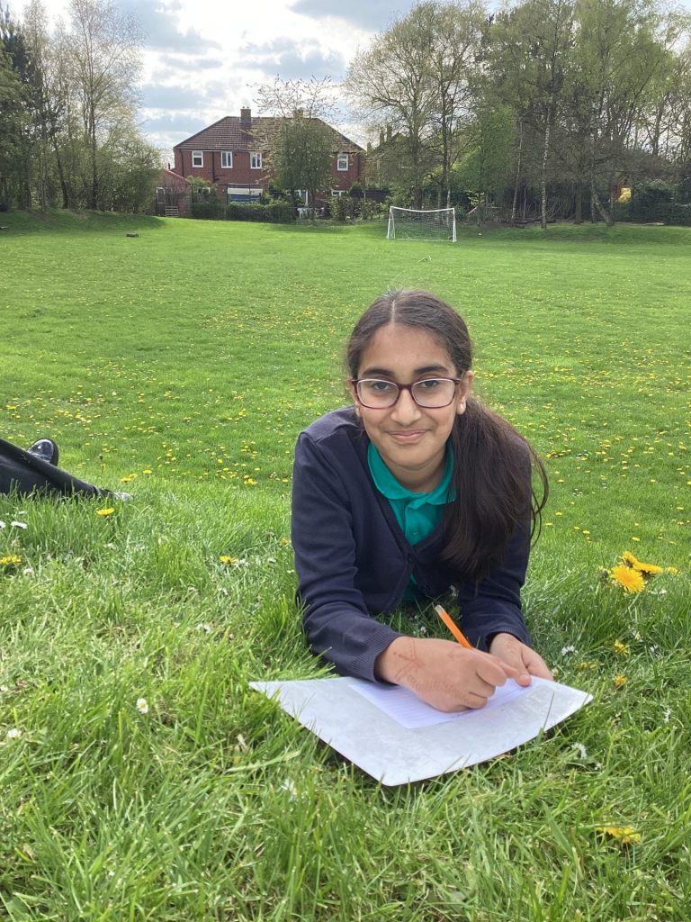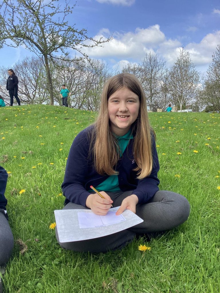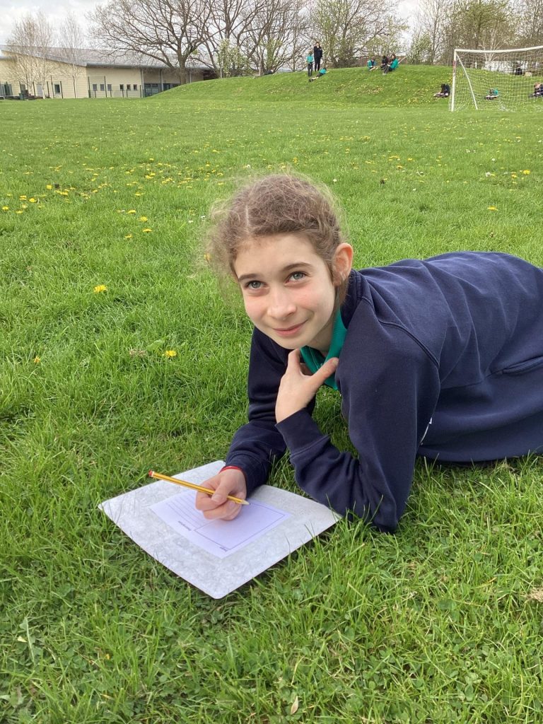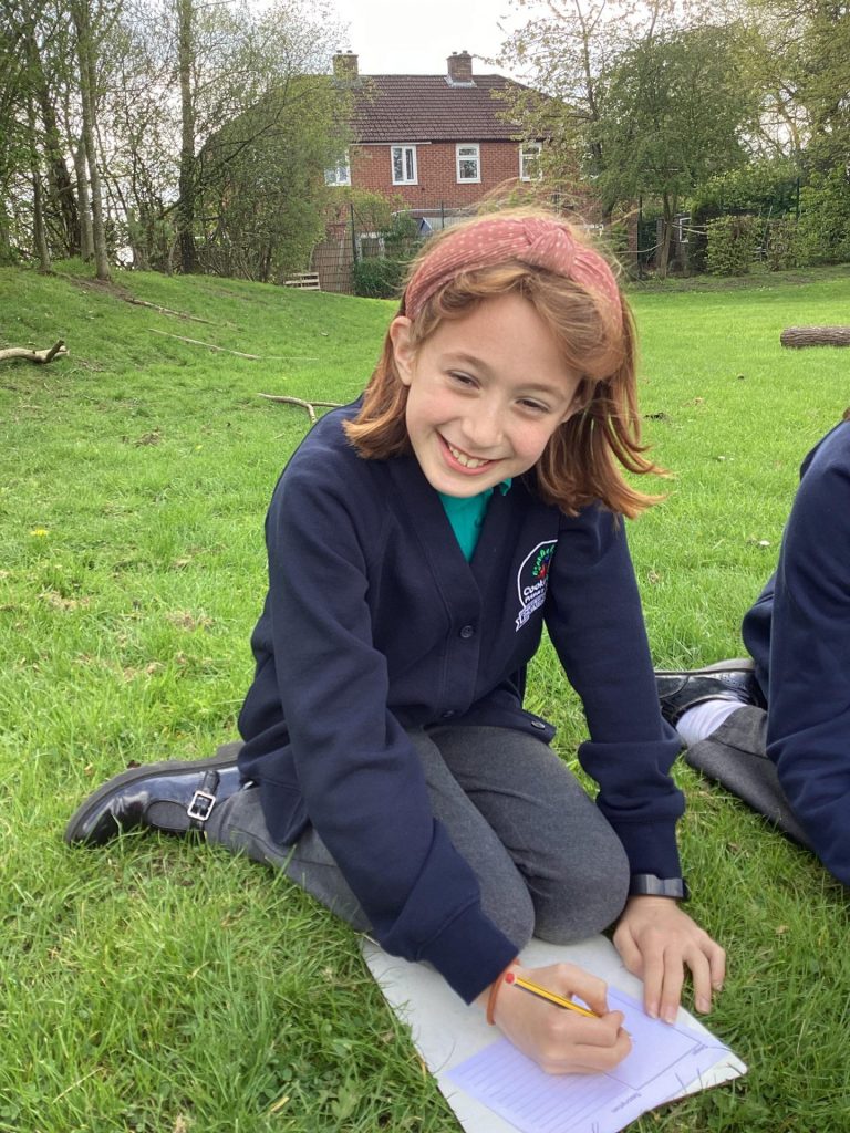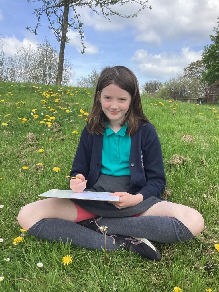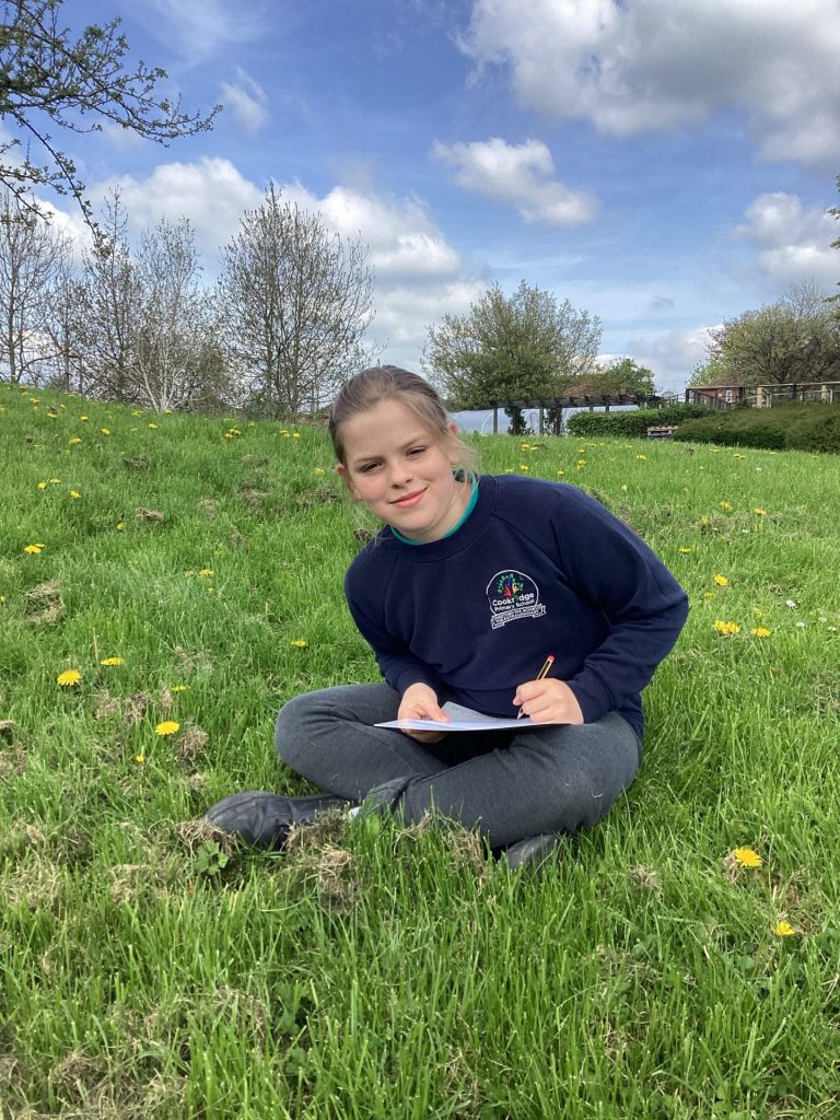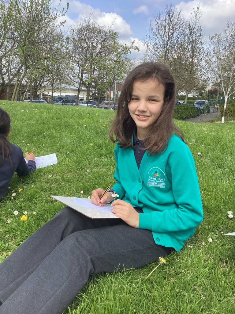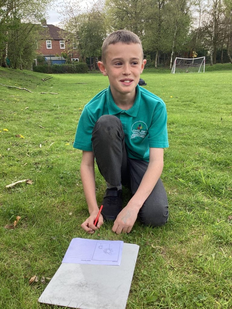 After having looked at her intricate illustrations of plant and life cycles, the children went outside to draw their own observations of plants and describe their artwork using their knowledge about life cycles.