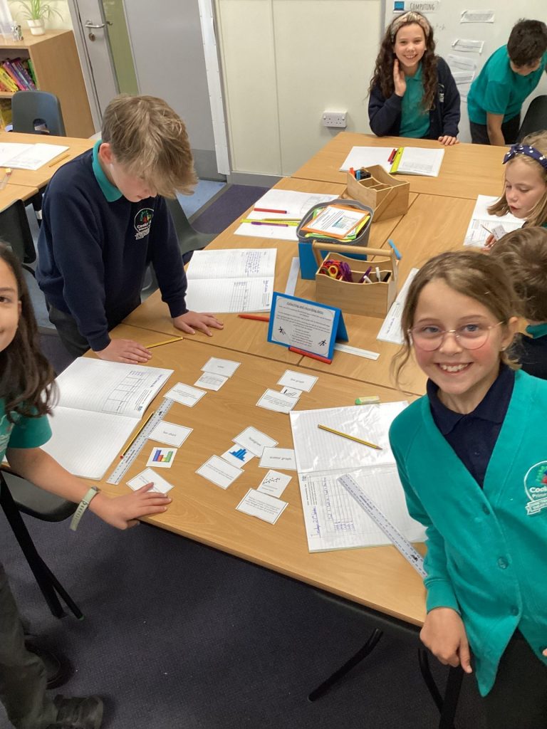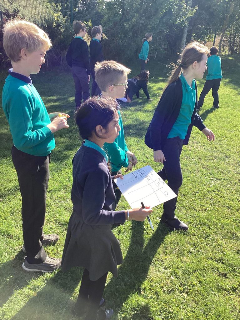 Yesterday in science, Class 8 and 9 were investigating the different ways to represent data. They completed an activity matching a definition with the graph type and an example, then they were challenged to create their own experiment. Each group was given the task to write their own experiment that found out which child could move across the field the fastest. After they had collected their data, they wrote it into their own tables. Next lesson, the children will decide how to represent their data in a graph.