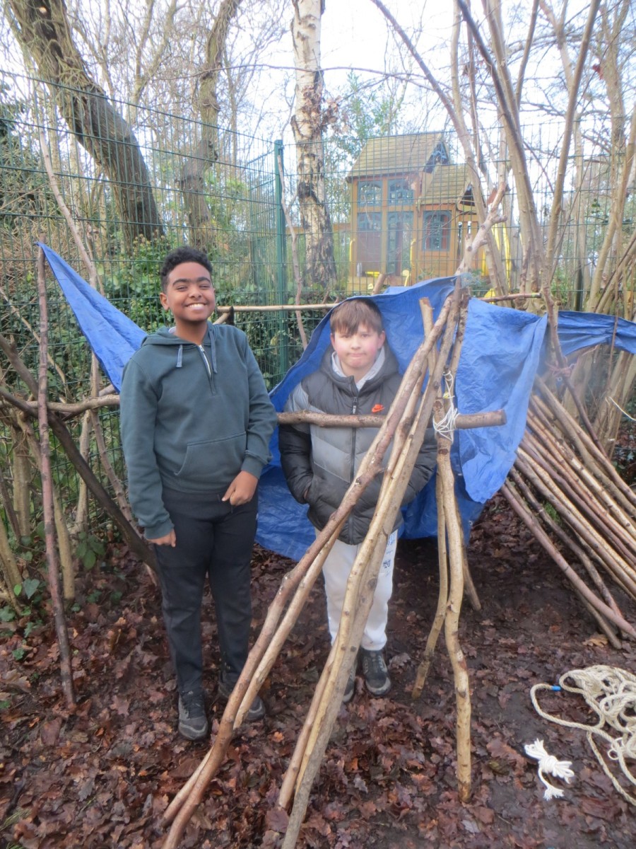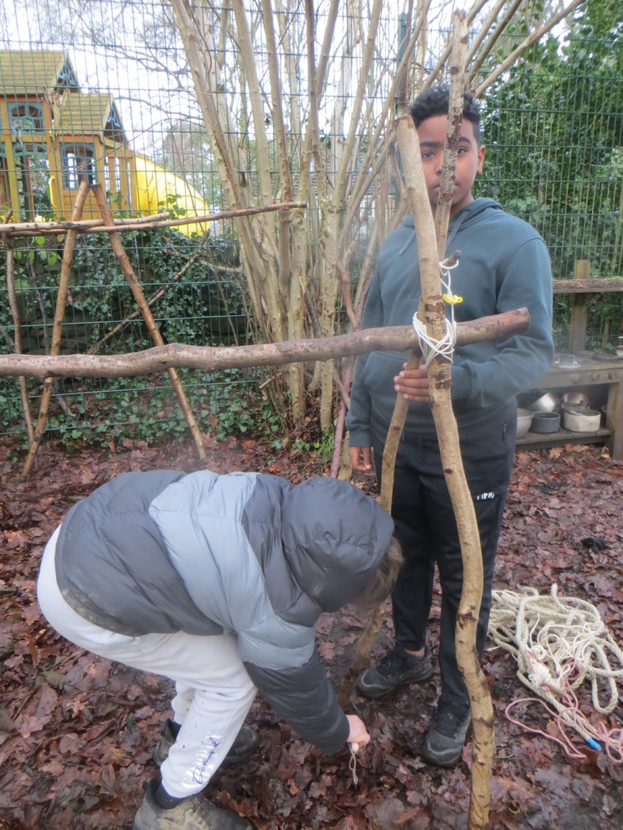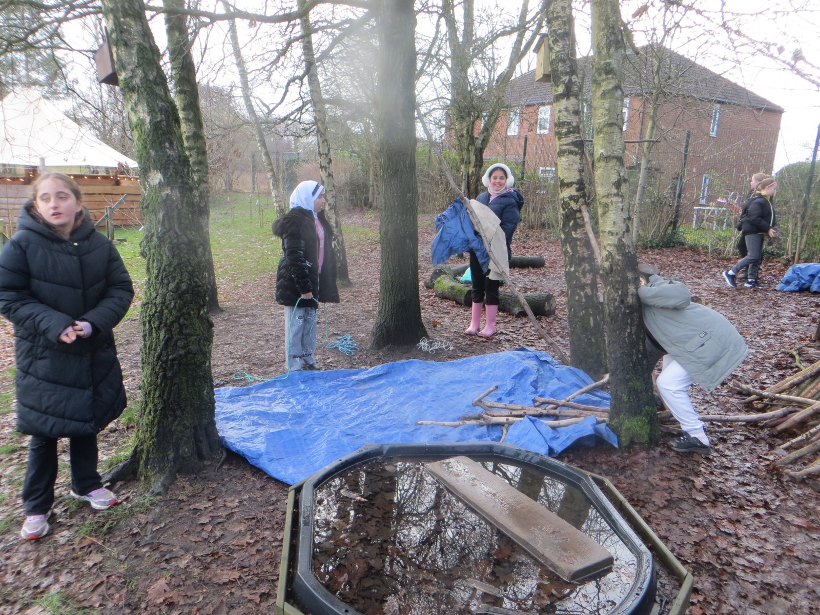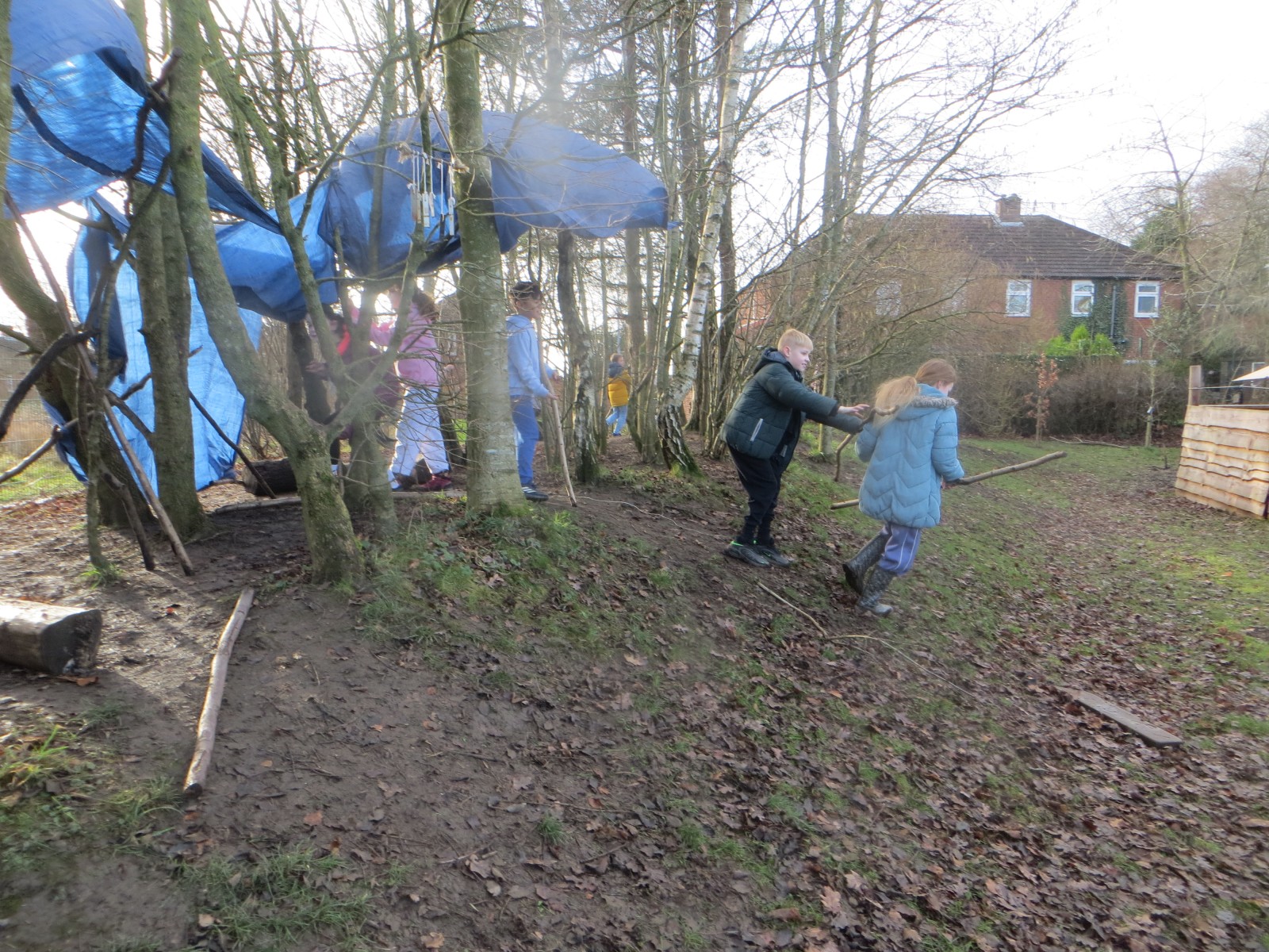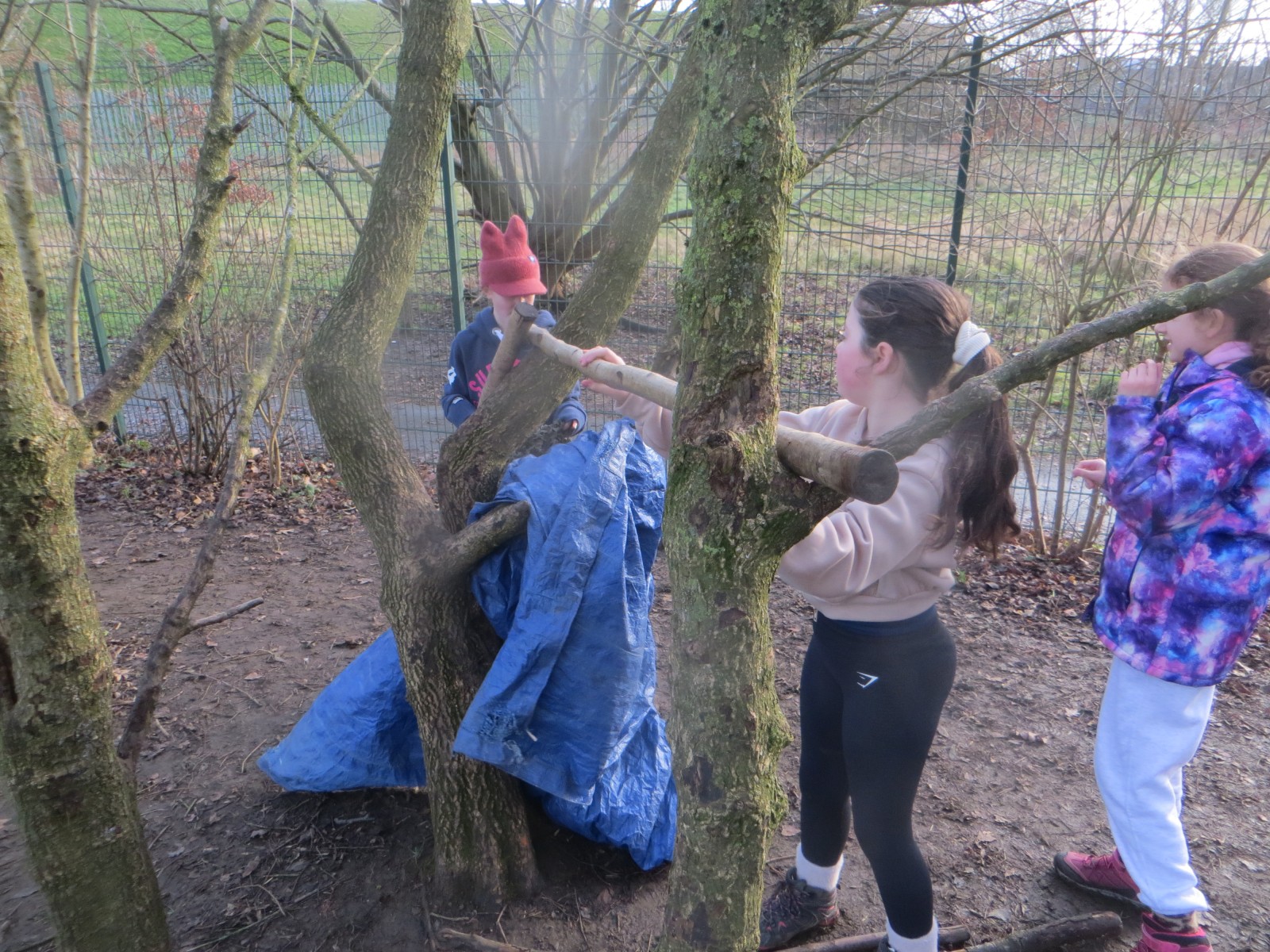 Pupils in UKS2 started their Forest School session by discussing New Year Resolutions. They talked about why they are made, who makes them, what they are and how hard it can be to stick to them, especially with last Friday (the second Friday in January)  being known as ‘Quitter’s Day’ – the day most people give up on resolution they made only days ago. They were astonished to discover that by February, 80% of people who made New Year Resolutions will have quit them. Pupils then helped Mr Gamble achieve one of his New Year Resolutions which is to plan more creative play sessions for the older pupils to develop intrinsic skill sets. Children had the rest of the session to work on some of the key skills of Forest School – resilience, creativity, trying new things and respect. Pupils could use tools, play in the sandpit and mud kitchen, build dens and swings, craft using string, scissors and loose parts and generally just be kids and play. At the end, we discussed the importance of being imaginative for life in high school and as an adult and how play is a fantastic way to learn! Well done UKS2!