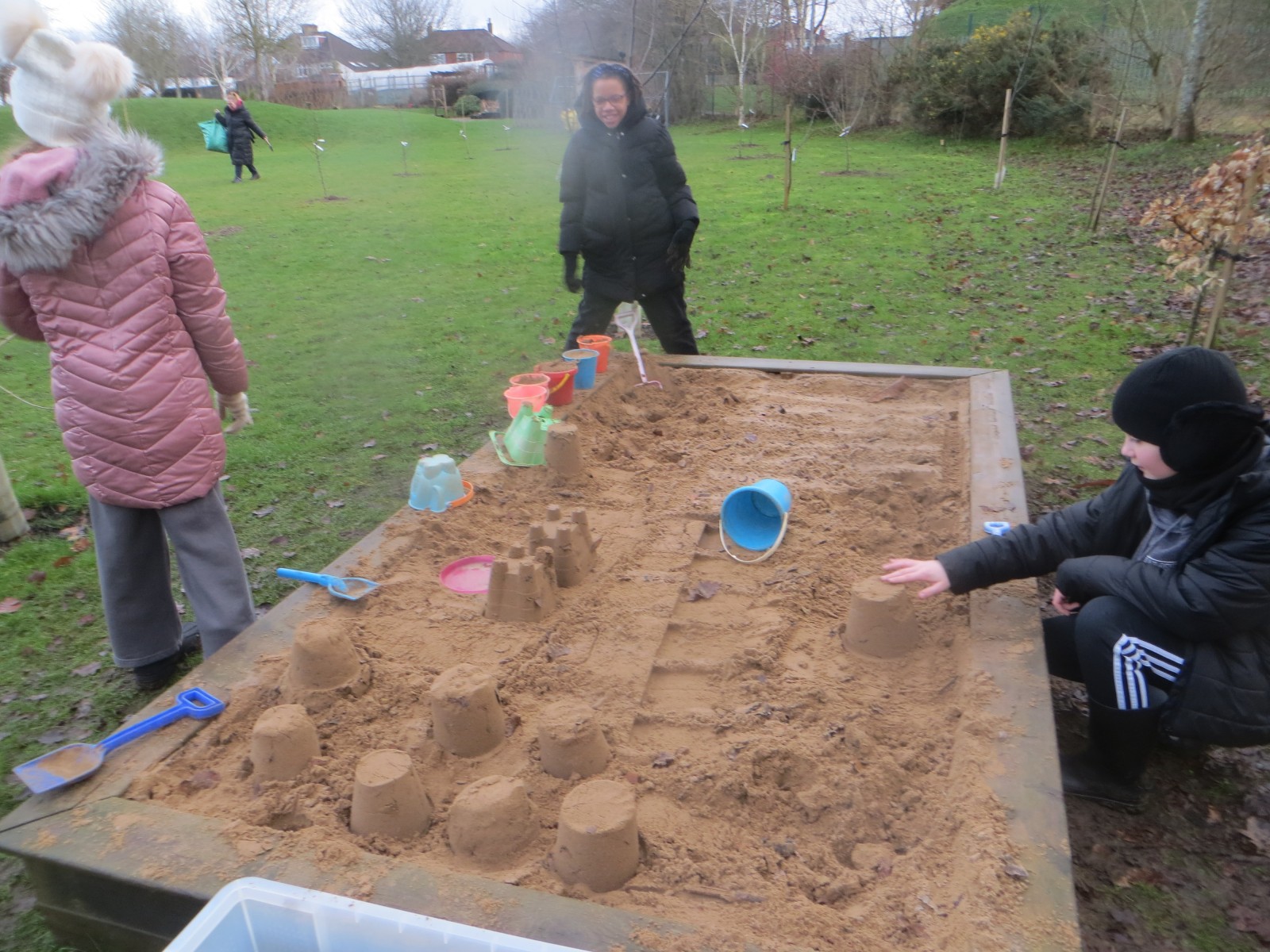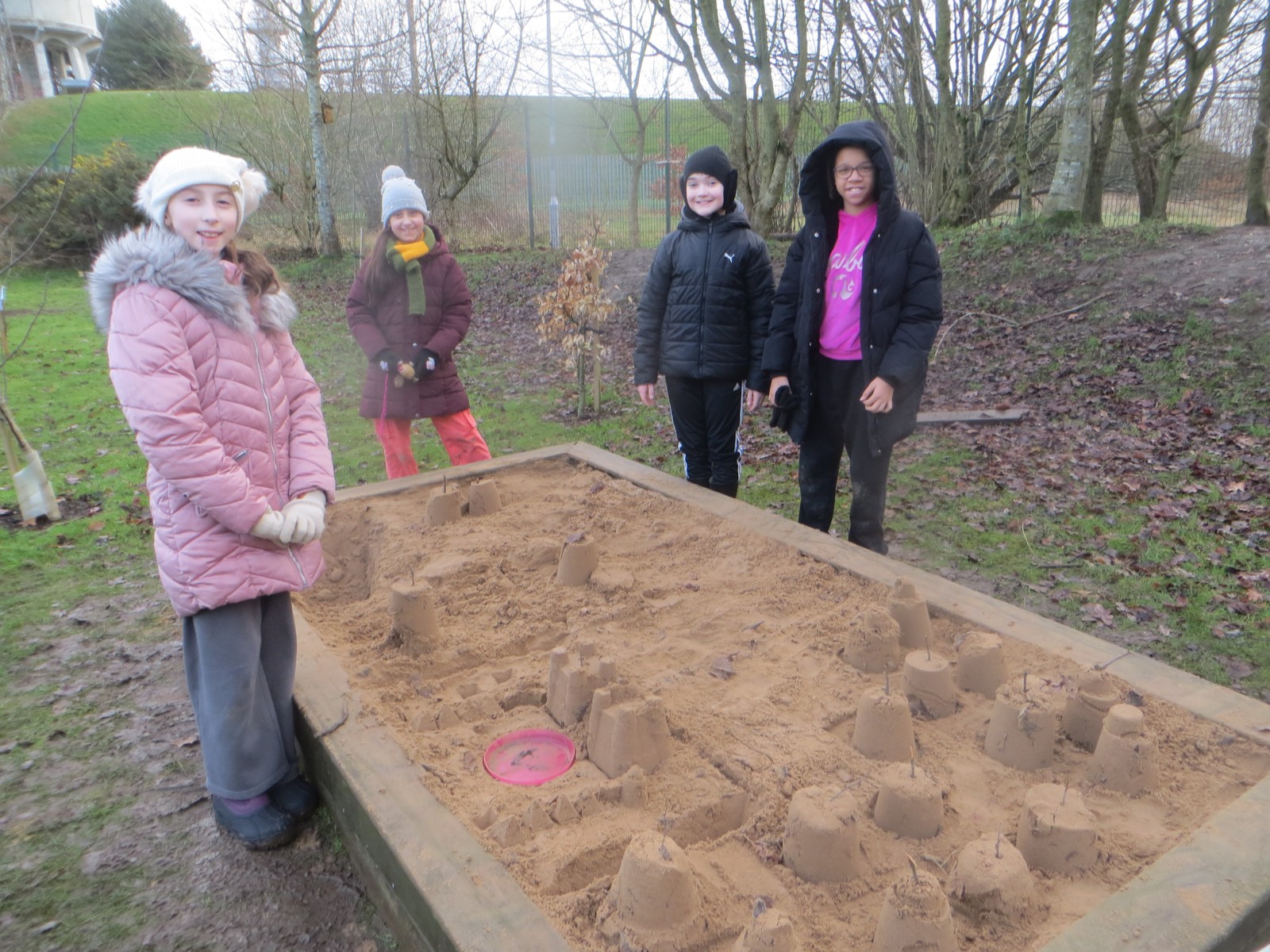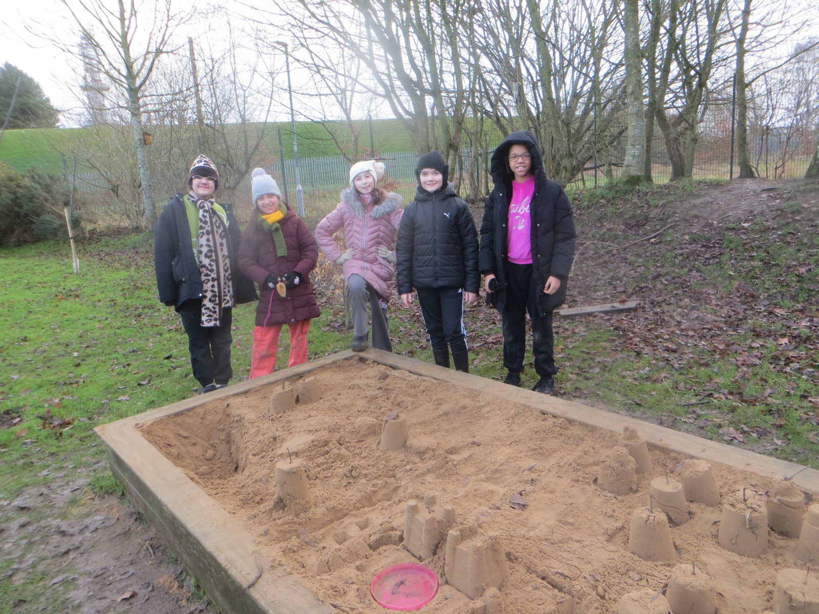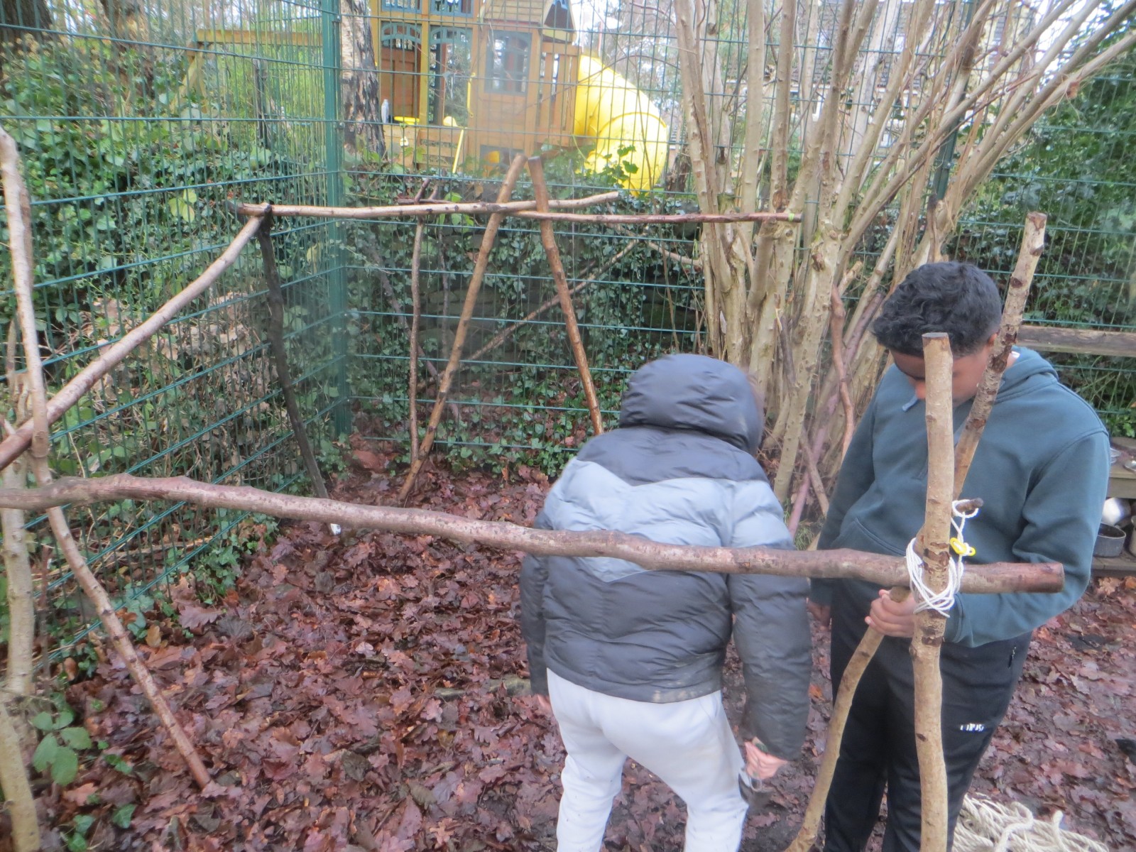 Pupils in UKS2 started their Forest School session by discussing New Year Resolutions. They talked about why they are made, who makes them, what they are and how hard it can be to stick to them, especially with last Friday (the second Friday in January)  being known as ‘Quitter’s Day’ – the day most people give up on resolution they made only days ago. They were astonished to discover that by February, 80% of people who made New Year Resolutions will have quit them. Pupils then helped Mr Gamble achieve one of his New Year Resolutions which is to plan more creative play sessions for the older pupils to develop intrinsic skill sets. Children had the rest of the session to work on some of the key skills of Forest School – resilience, creativity, trying new things and respect. Pupils could use tools, play in the sandpit and mud kitchen, build dens and swings, craft using string, scissors and loose parts and generally just be kids and play. At the end, we discussed the importance of being imaginative for life in high school and as an adult and how play is a fantastic way to learn! Well done UKS2!