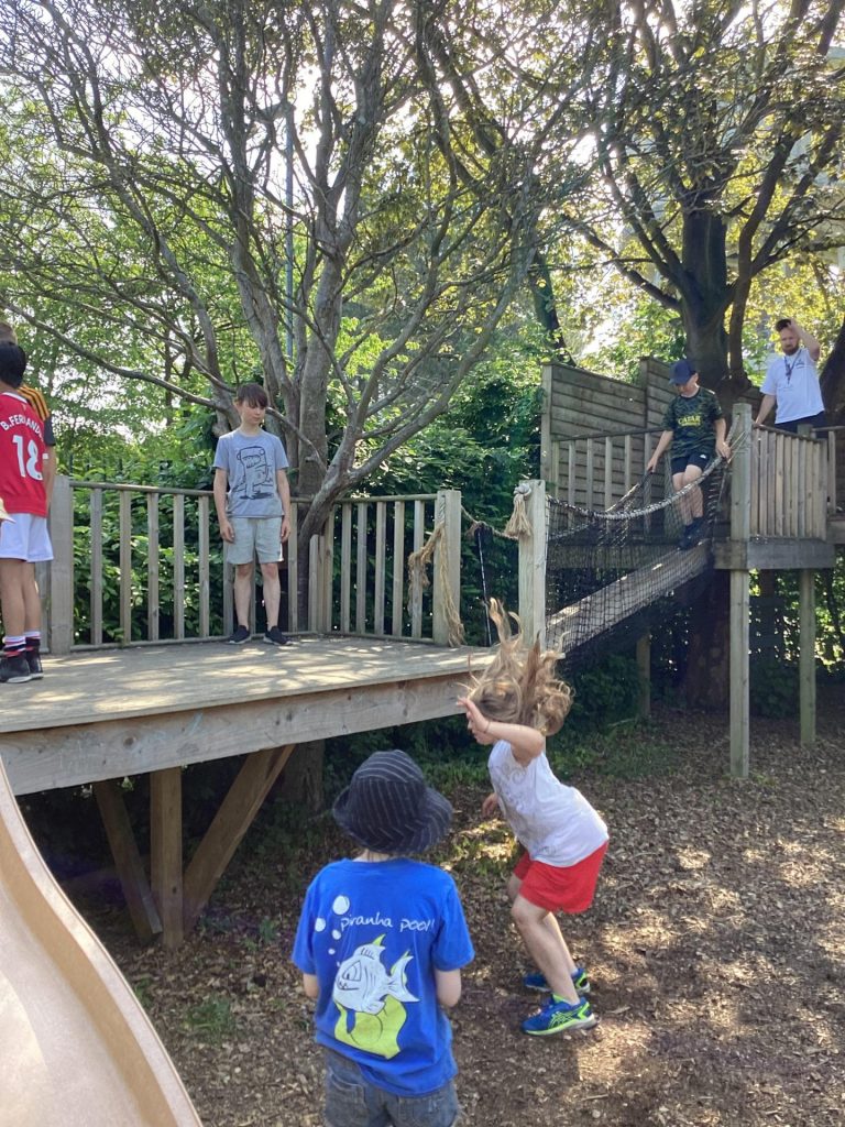In Forest School, the children enjoyed a carousel of activities. This included: Forest School games, song, rhymes, use of the treehouse and the slack ropes.