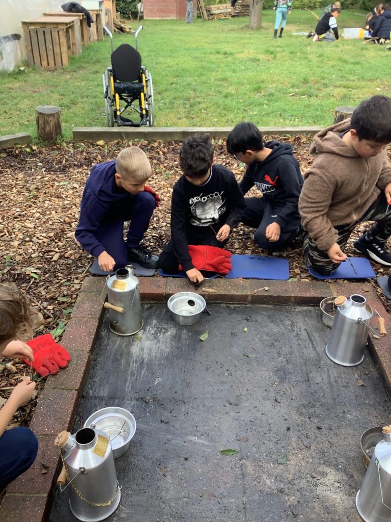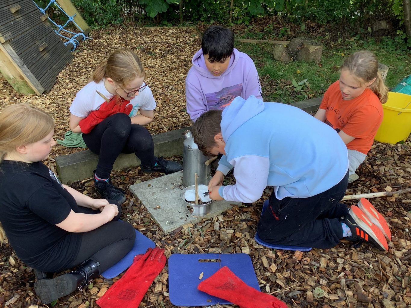Today UKS2 had their National Forest School day session. The children were split into cohorts (Year 5 and 6) and took turns completing a Forest School session in the garden and completing some geography tasks inside. Outside, the children had the option to practise their fire making skills in the kelly kettles, whittle Greek Hoplite spears, complete some Forest School art, do some knot tying or complete ‘The Egg Challenge’. The resilience, perseverance and communication was fantastic, with the children engaging politely, collegially and enthusiastically in their tasks. We cannot wait for Forest Schools on Monday!