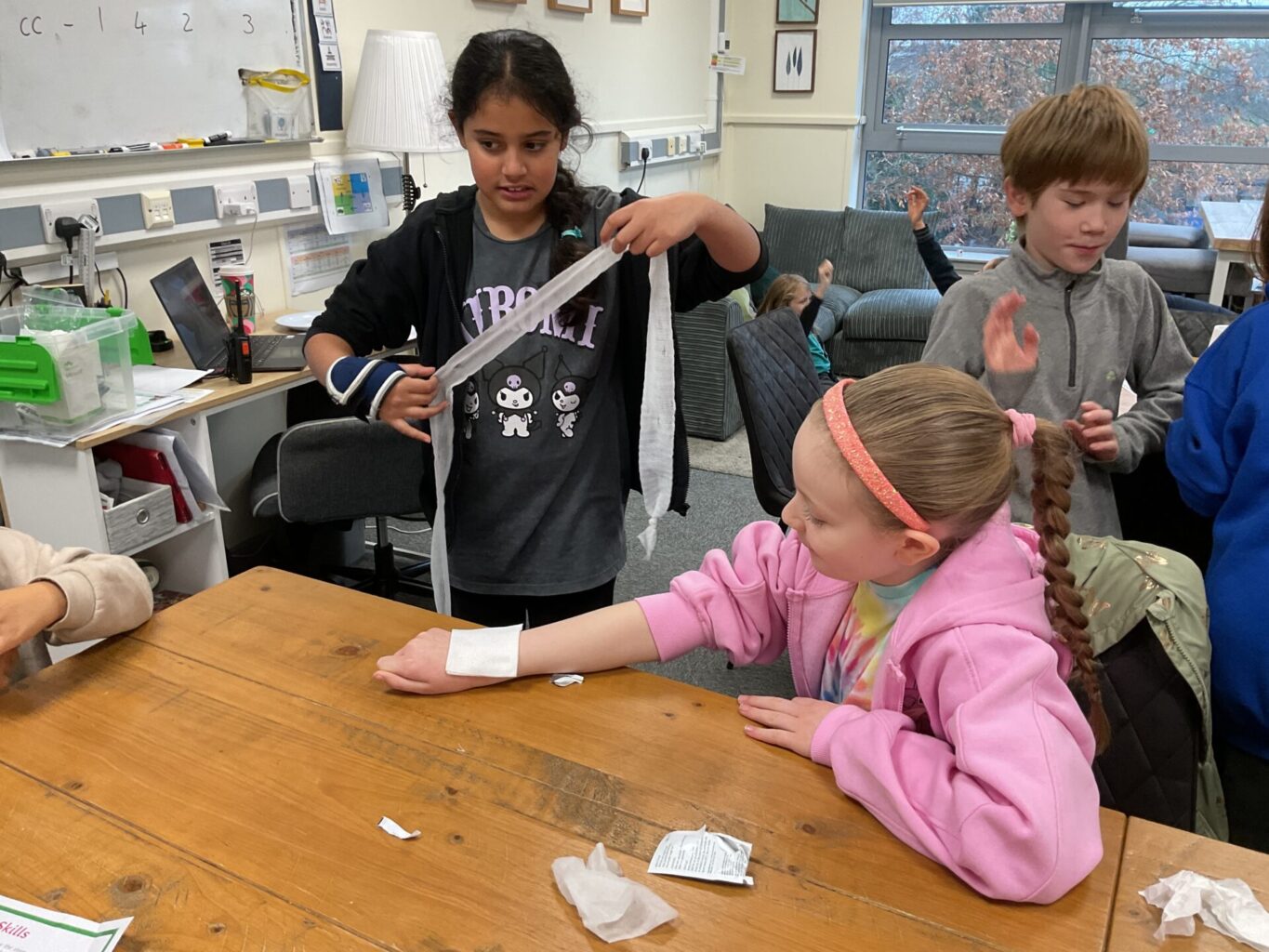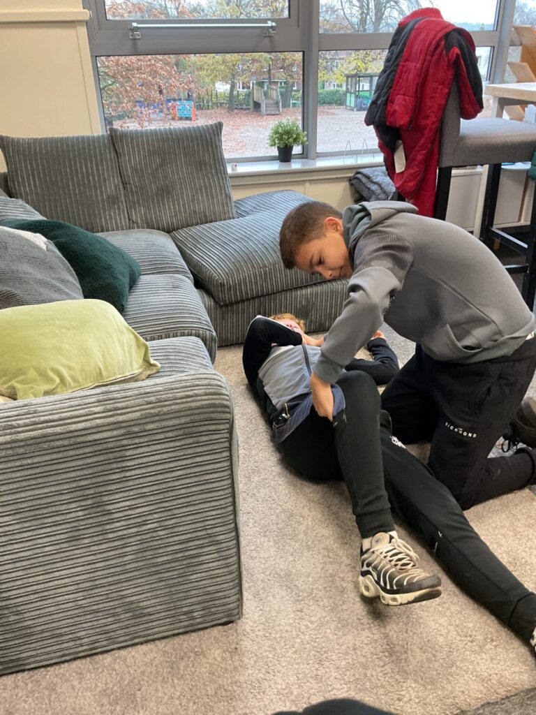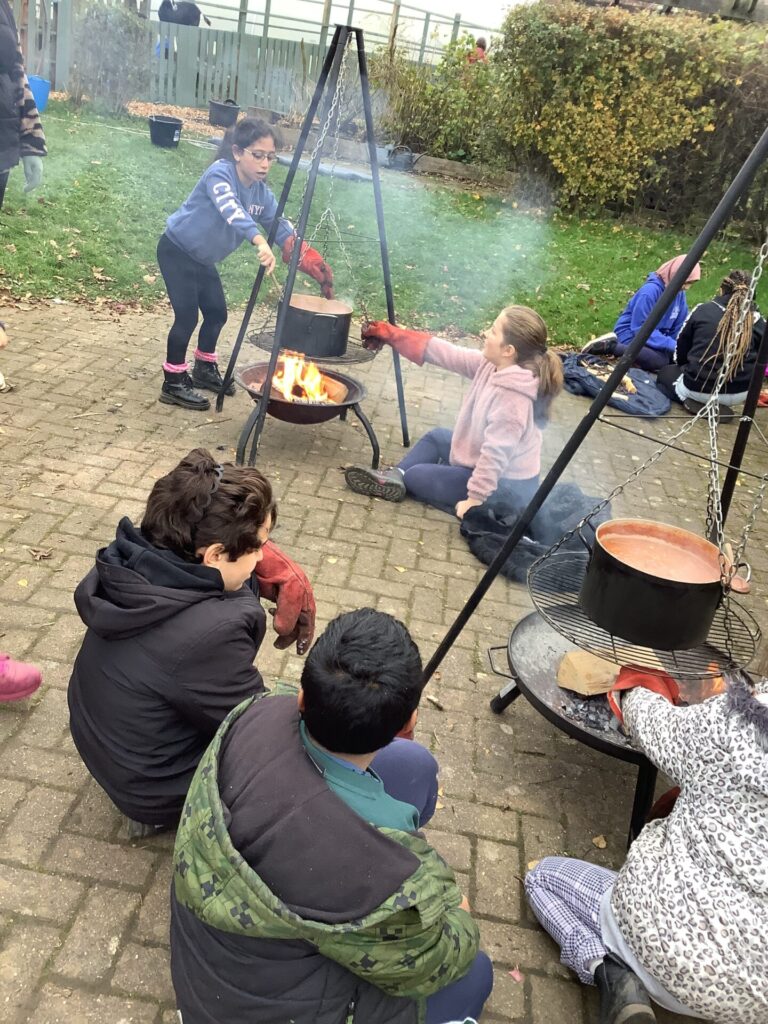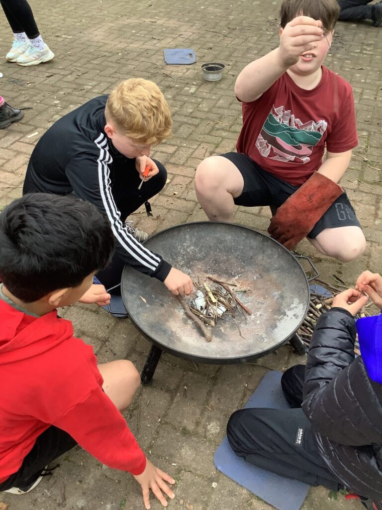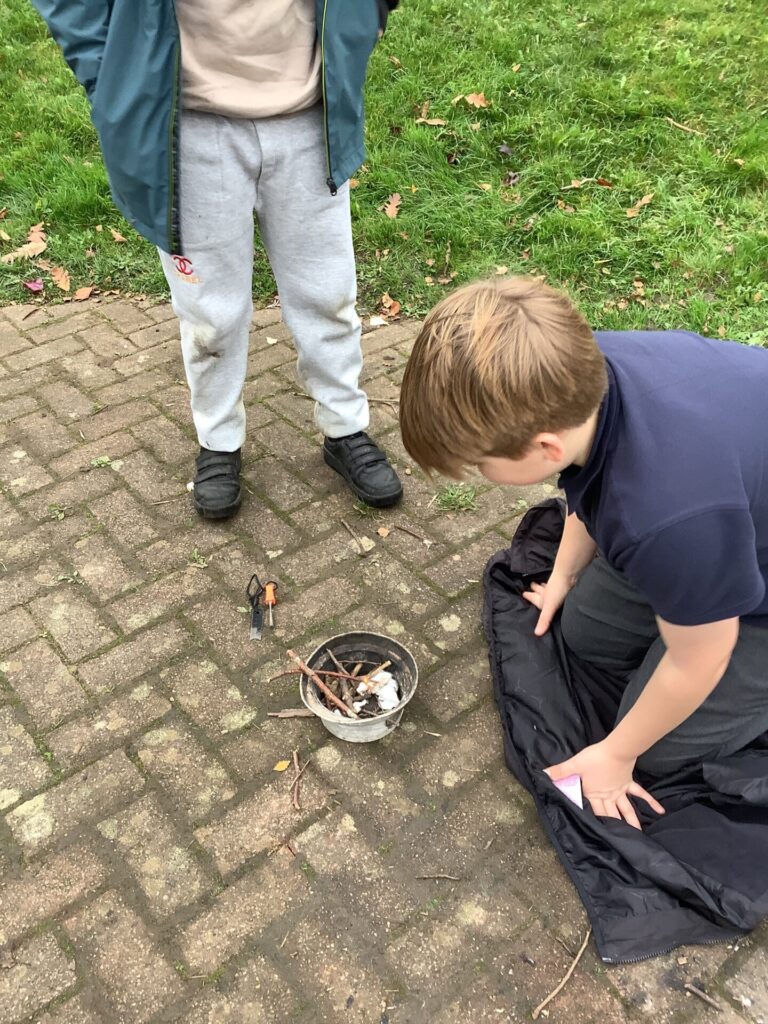 In Forest School, the children considered how to cook a meal using non-perishable foods in a survival situation. They used a range of different skills, including: fire building, using a bill hook and food preparation. As well as this, they took part in an orienteering activity. Here, they used geographical skills to navigate around the school premises. searching for clues to lead them to a designated safe place to reunite with their family after a natural disaster. In class, they created a news report about the current flooding in Valencia, focusing on the causes, impact and ways to resolve the problems caused. Finally, they learnt first aid skills to help in a crisis, focusing on the’DR ABC’ method they would use if they found someone unconcscious.
