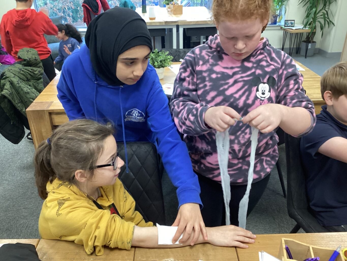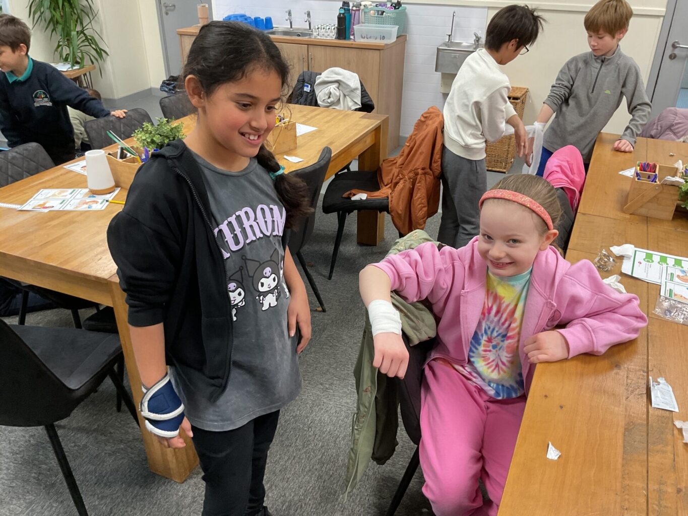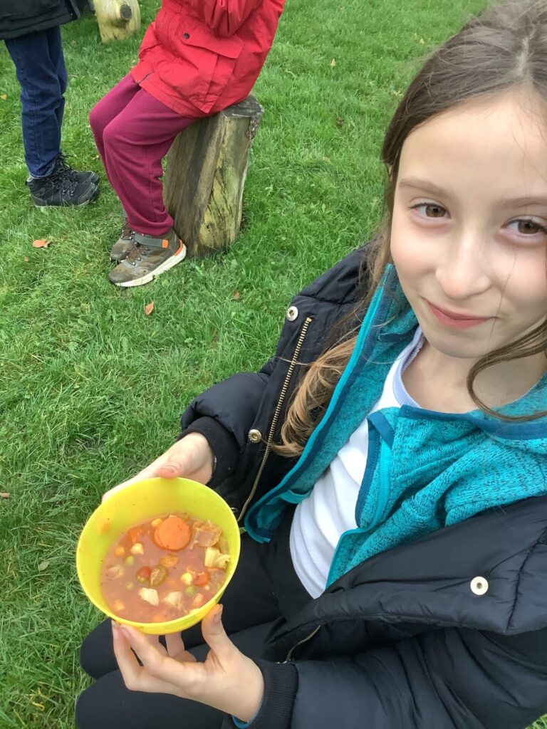 In Forest School, the children considered how to cook a meal using non-perishable foods in a survival situation. They used a range of different skills, including: fire building, using a bill hook and food preparation. As well as this, they took part in an orienteering activity. Here, they used geographical skills to navigate around the school premises. searching for clues to lead them to a designated safe place to reunite with their family after a natural disaster. In class, they created a news report about the current flooding in Valencia, focusing on the causes, impact and ways to resolve the problems caused. Finally, they learnt first aid skills to help in a crisis, focusing on the’DR ABC’ method they would use if they found someone unconcscious.