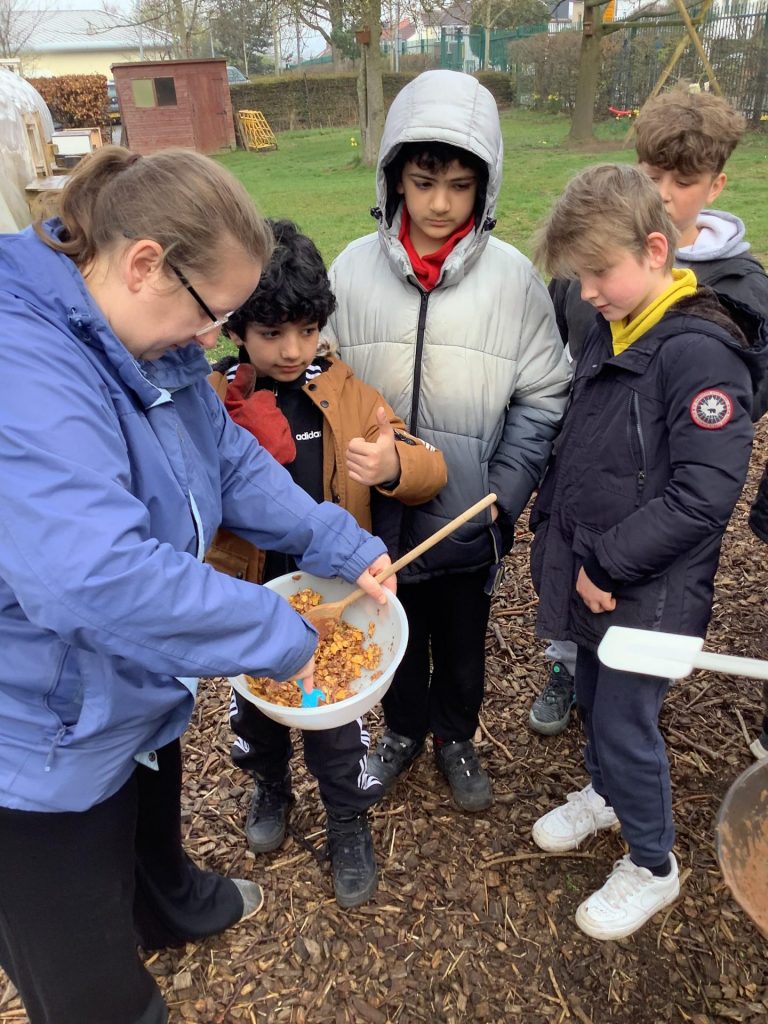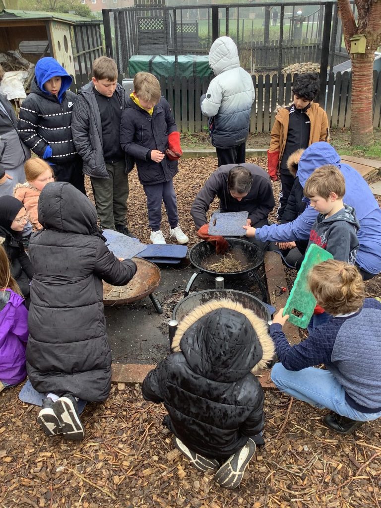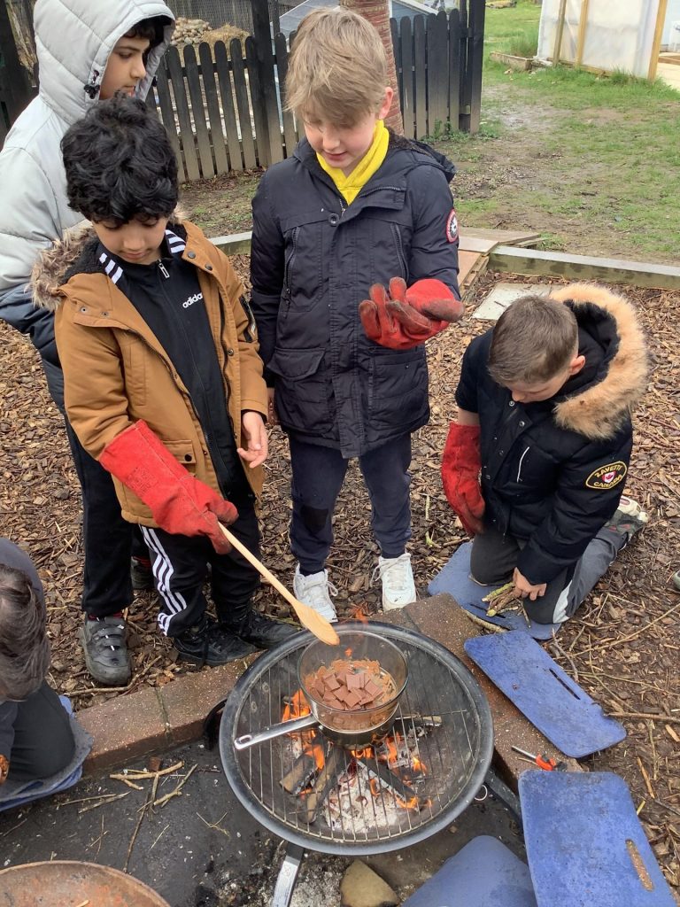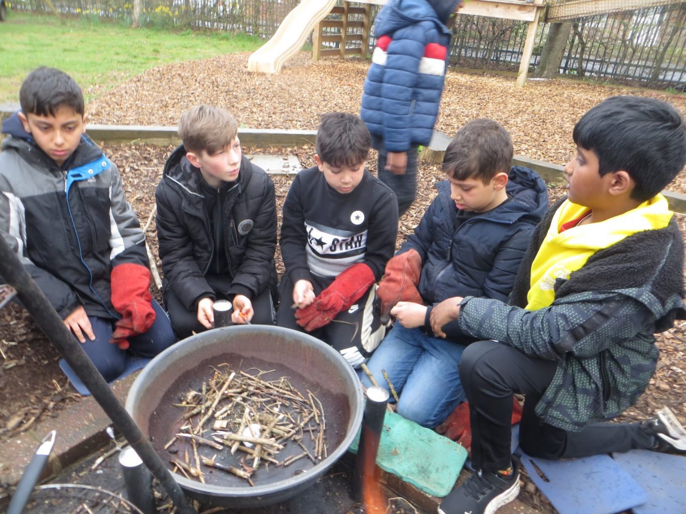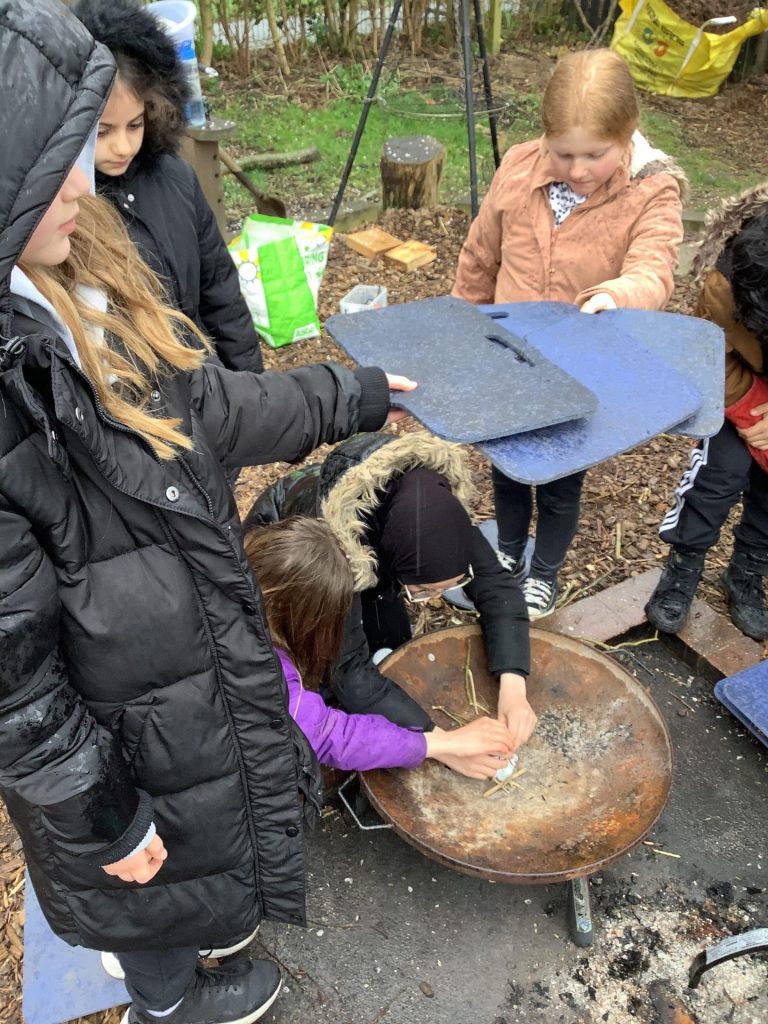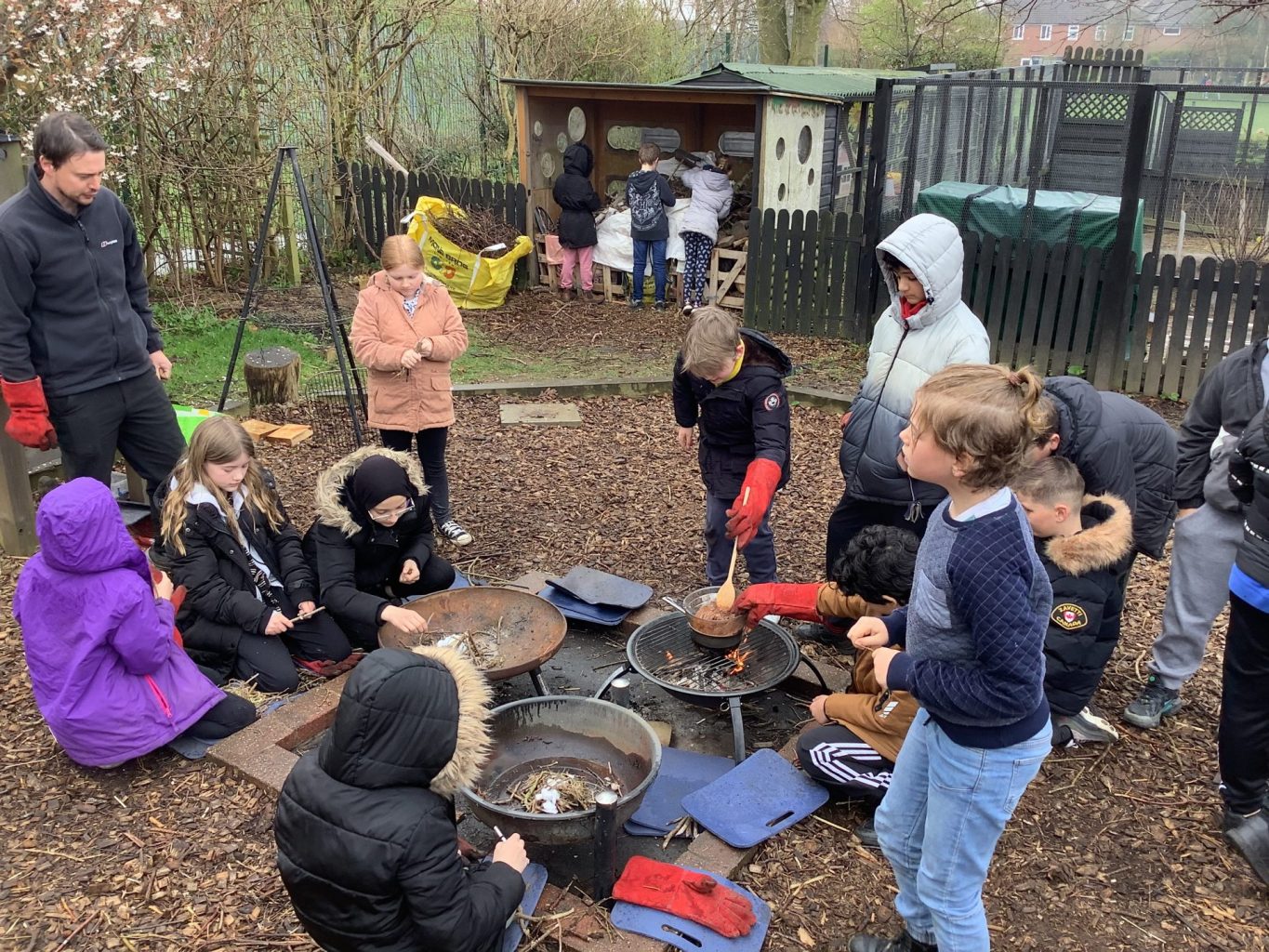 This week UKS2 enjoyed an Easter themed session with pupils creating Easter wreaths made from willow and leaves and decorating hard boil eggs using paint. Children also loved taking part in the ‘Superlative Egg Contest’ where they had to work in teams to see who could get their egg to go the furthest, fastest or highest before creating their own egg themed games. Their final activity was creating a fire and using a tripod and boiling water to melt chocolate which pupils then used to create delicious chocolate nests.