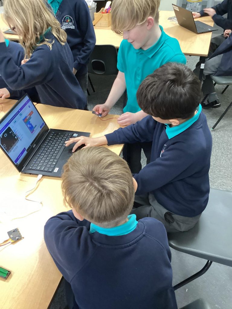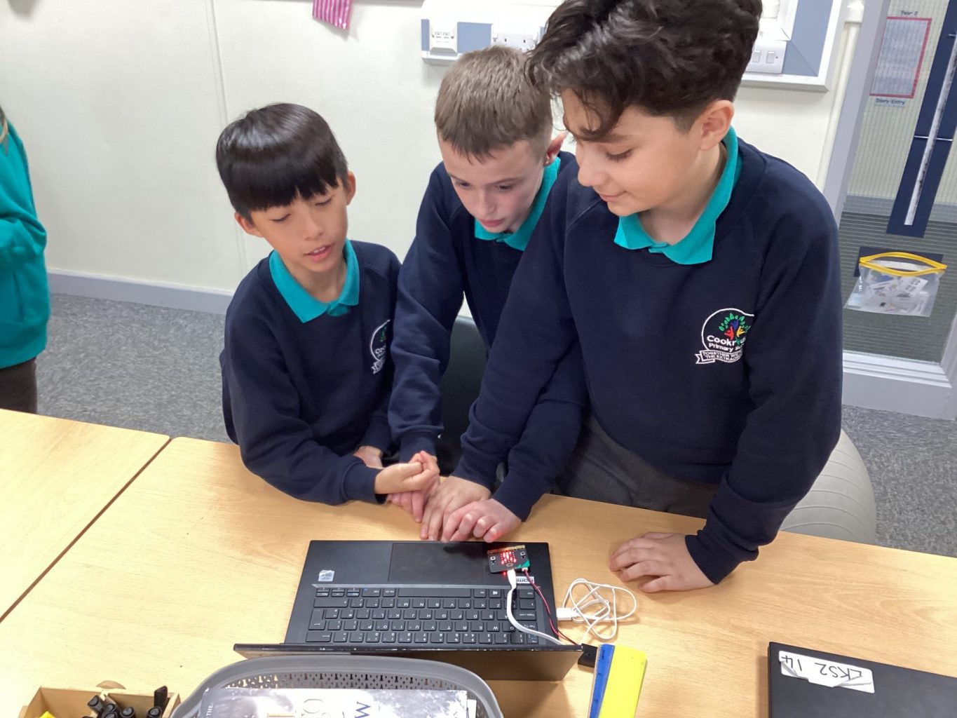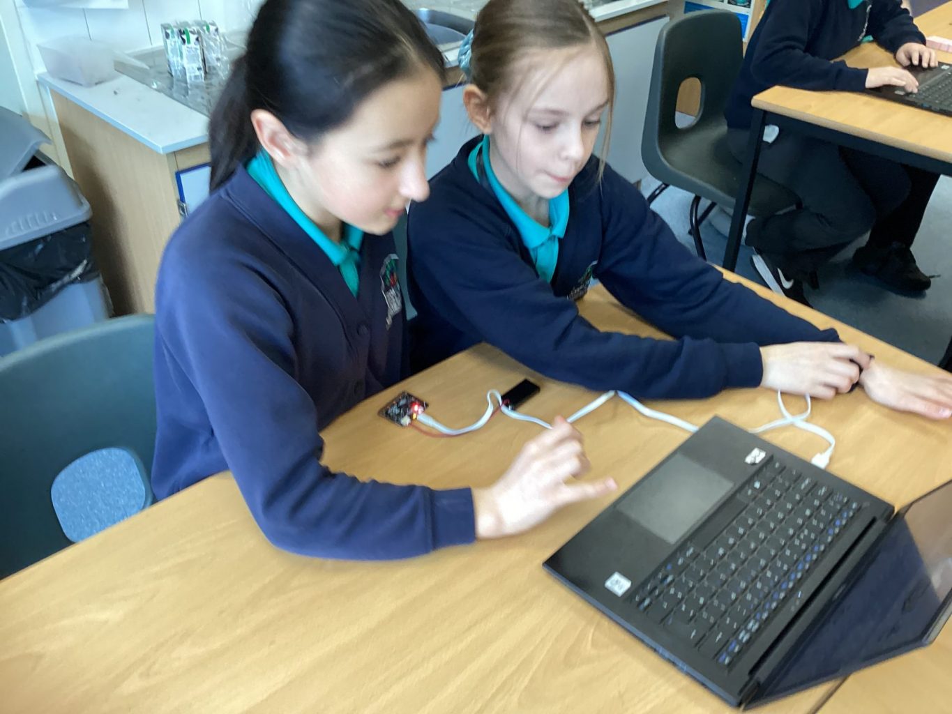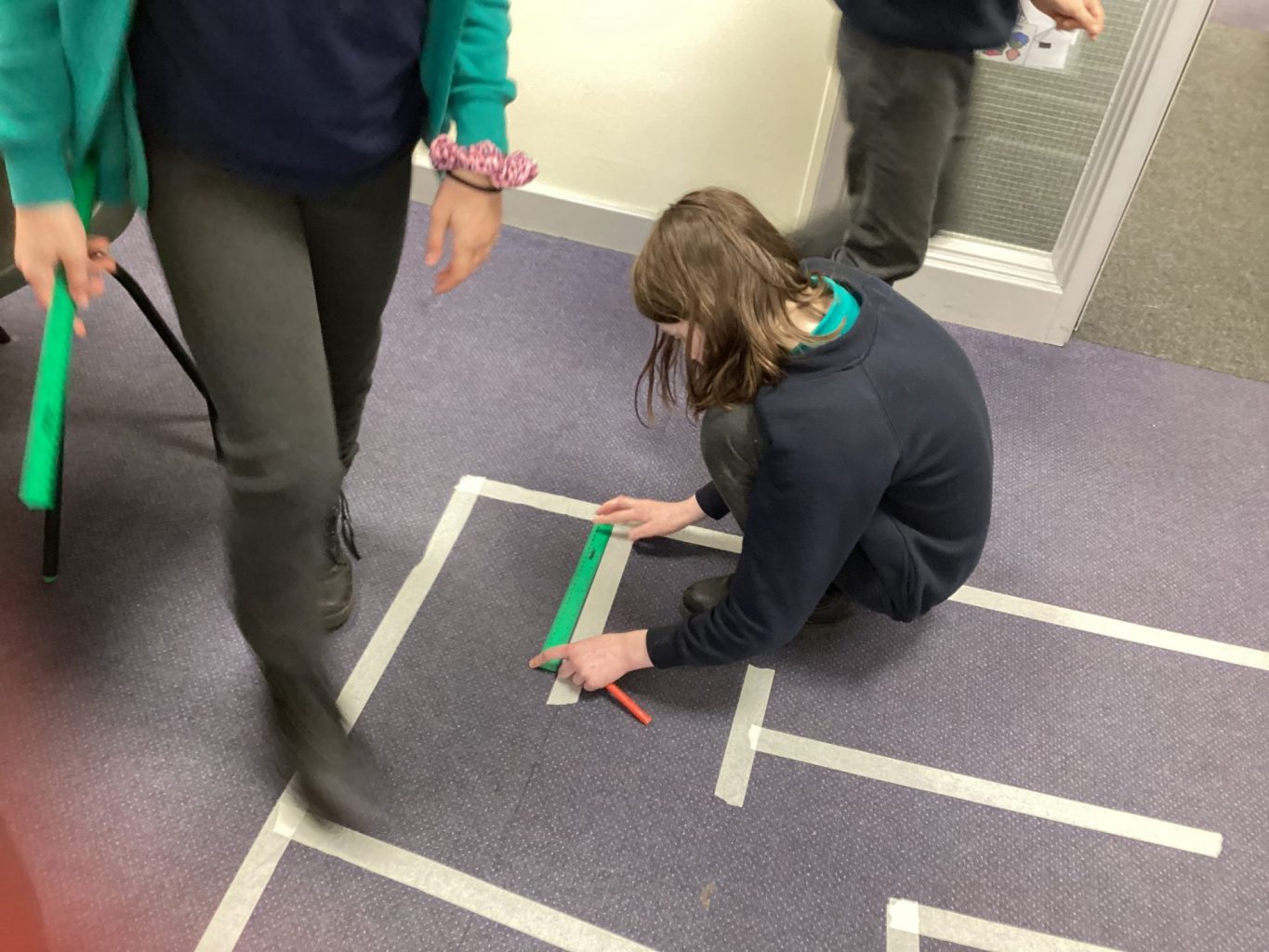 In computing, using the Ino-Bots, pupils were challenged with coding their bot to navigate through a maze. At varying locations the bot then had to make lights flash and play a sound. Pupils used their understanding of measure and angles to ensure the bot didn’t touch the white lines and complete the maze successfully.