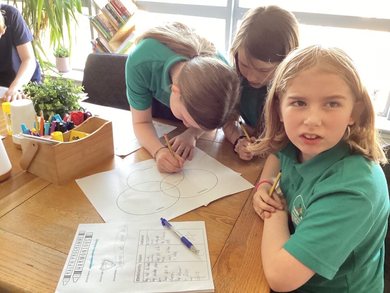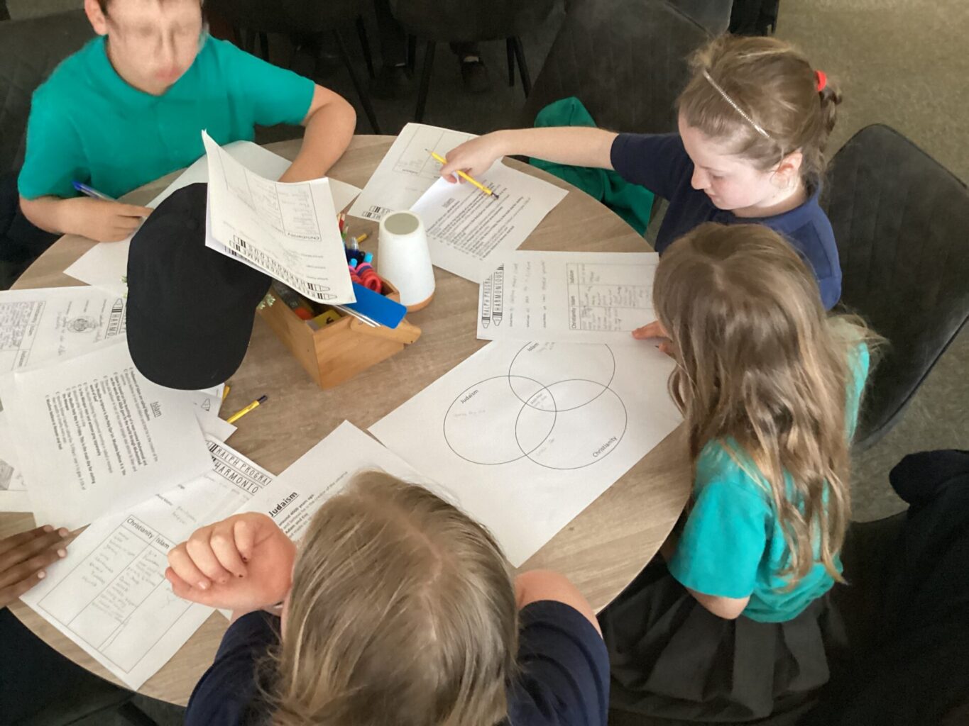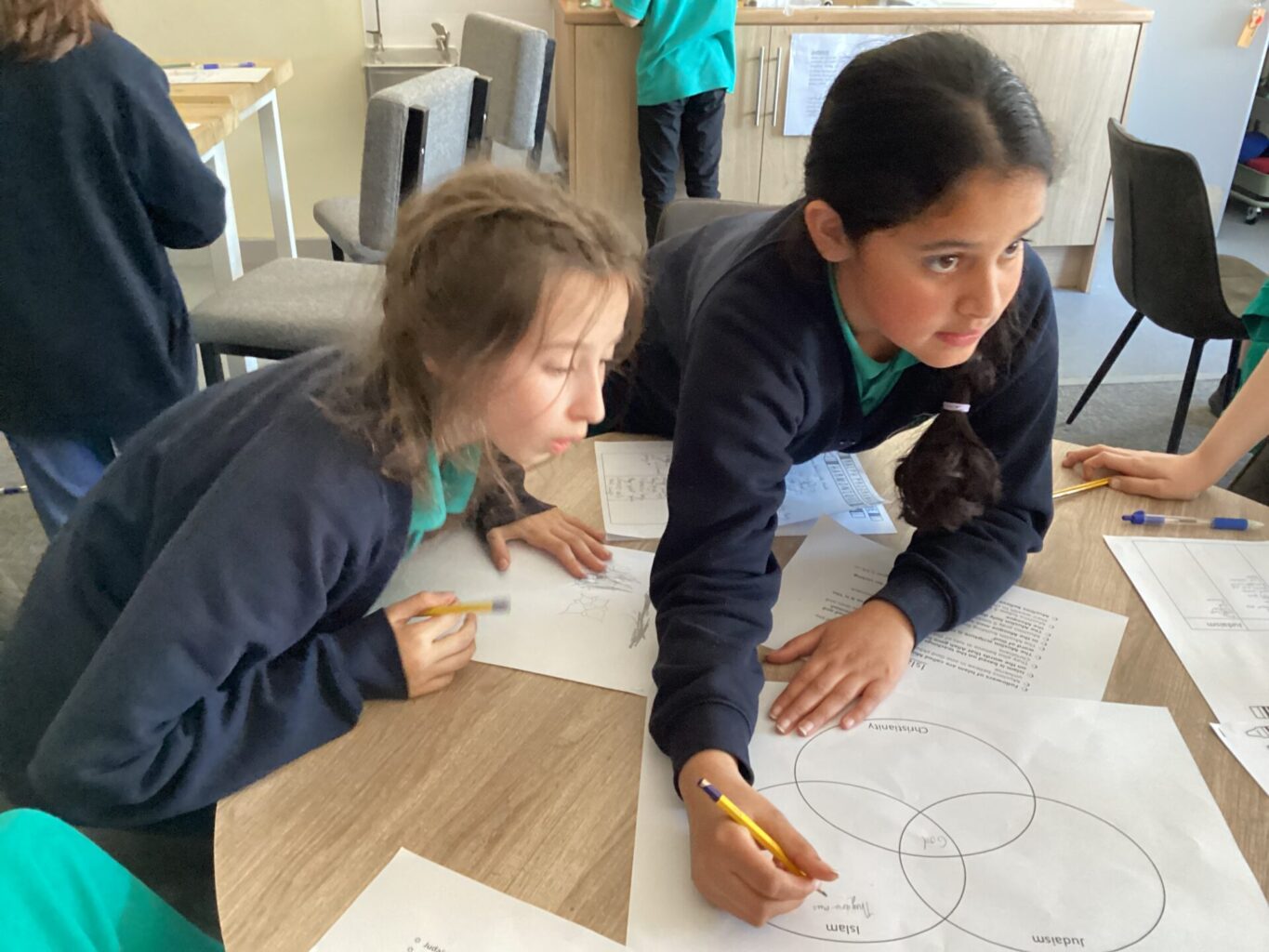 This week, we were visited again by the deputy headteacher from Ralph Thoresby High School. The children took part in a fantastic workshop focused on RE and teh RTHS value of harmony. They were challenged to create a multi-faith school in Cookridge and consider what would be important to pupil from Christian, Jewish and Muslim faiths.