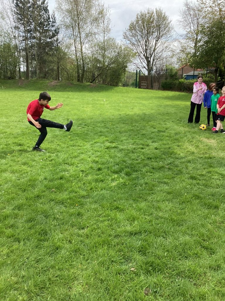 This week in PE, the children continued to develop their skills in football and athletics. In football, they strenghtened their dribbling and shooting skills by playing different games targetting their skills. In athletics, they learnt two techniques for passing on the baton in a relay race: the under and over sweep.