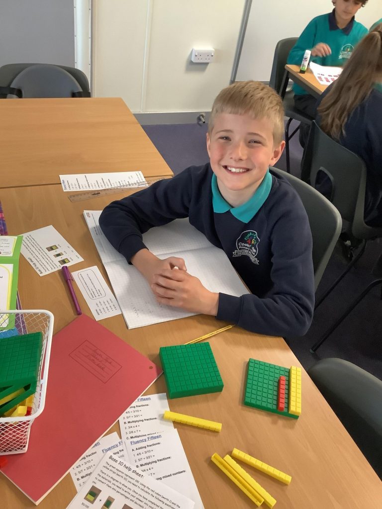 This week, Miss Barnicoat’s maths class have been solving problems using fraction, percentage and decimal equivalents. Using Base 10 to support their learning, the children have been completing addition and subtraction problems, then converting between the equivalents. They have also employed a range of techniques to enhance their understanding, including: equivalence walls, diagrams and White Rose Maths tools.