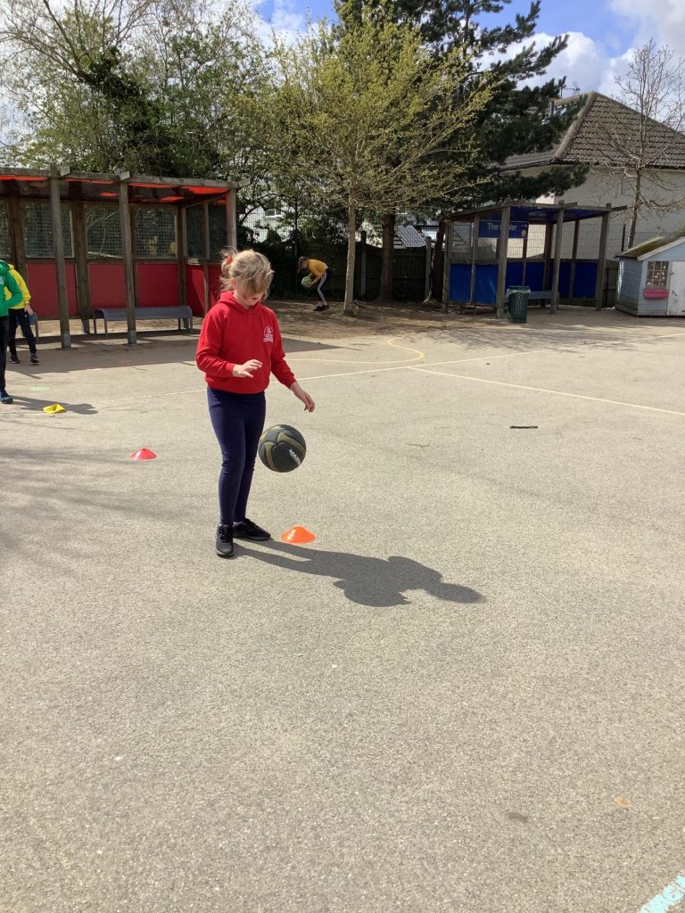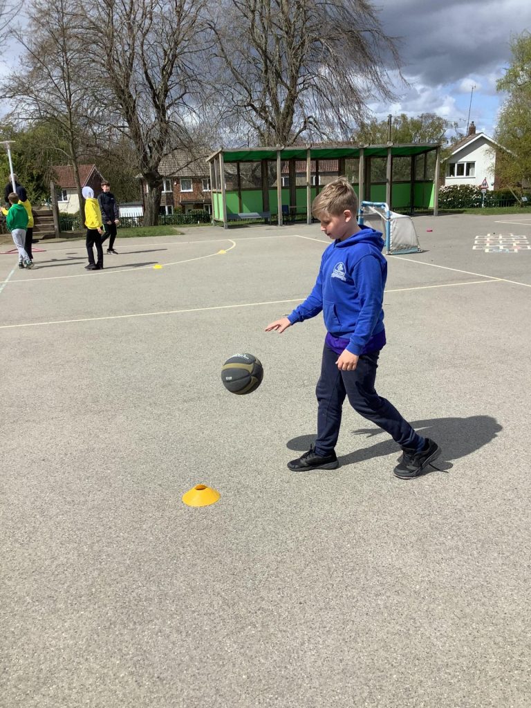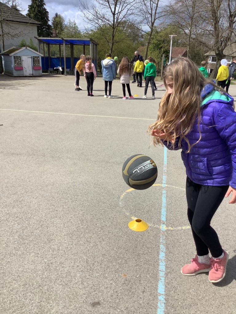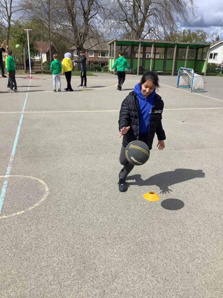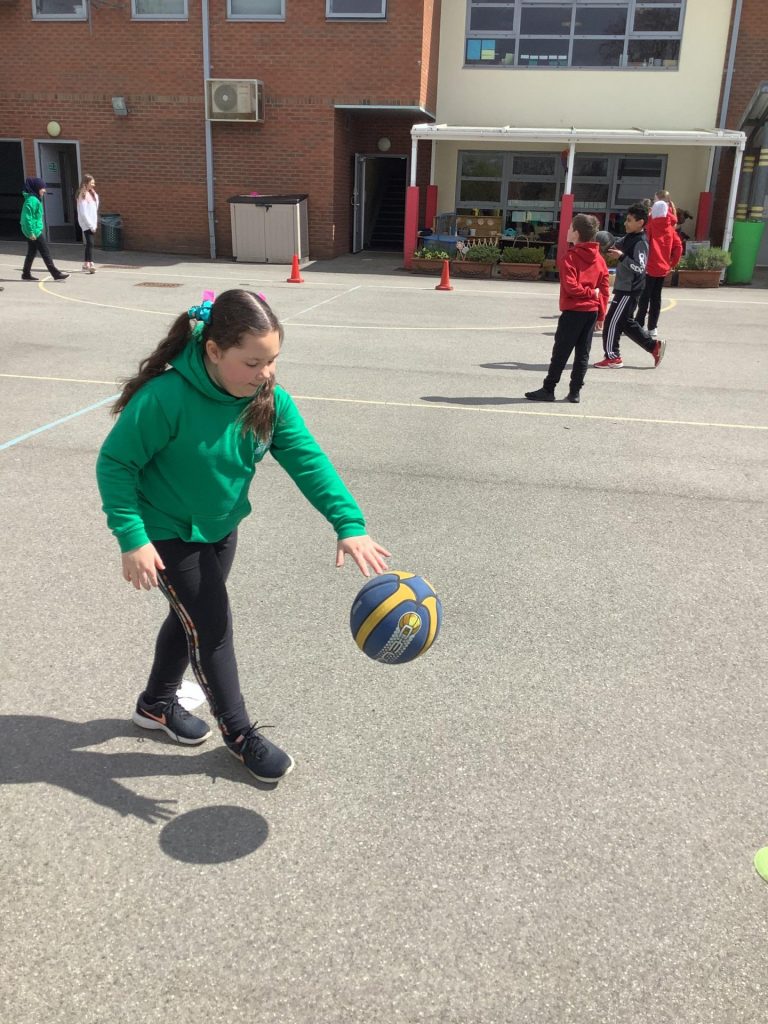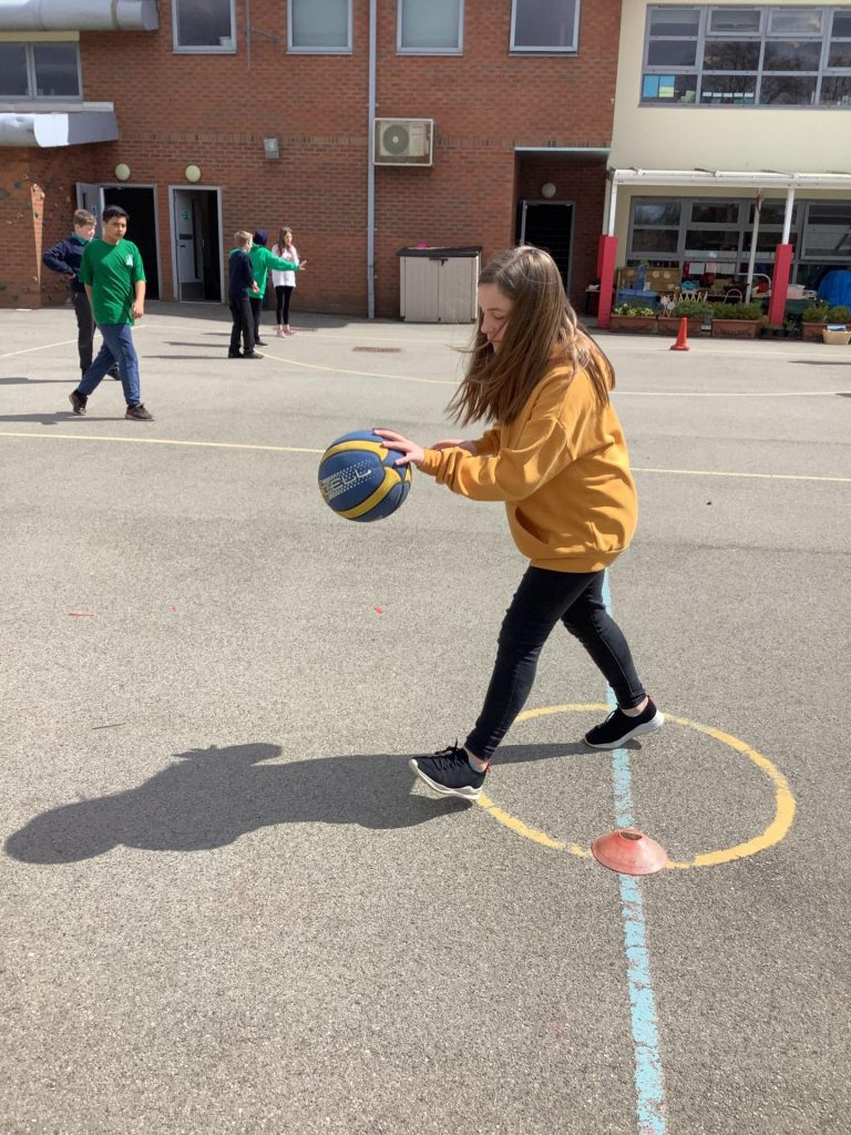 On Thursday, all of UKS2 enjoyed their PE lesson. Class 9 and 10 went onto the playground to complete a basketball session, working on: dribbling, passing and shooting. Whilst class 8 went onto the field and completed a multi-skill carousel.