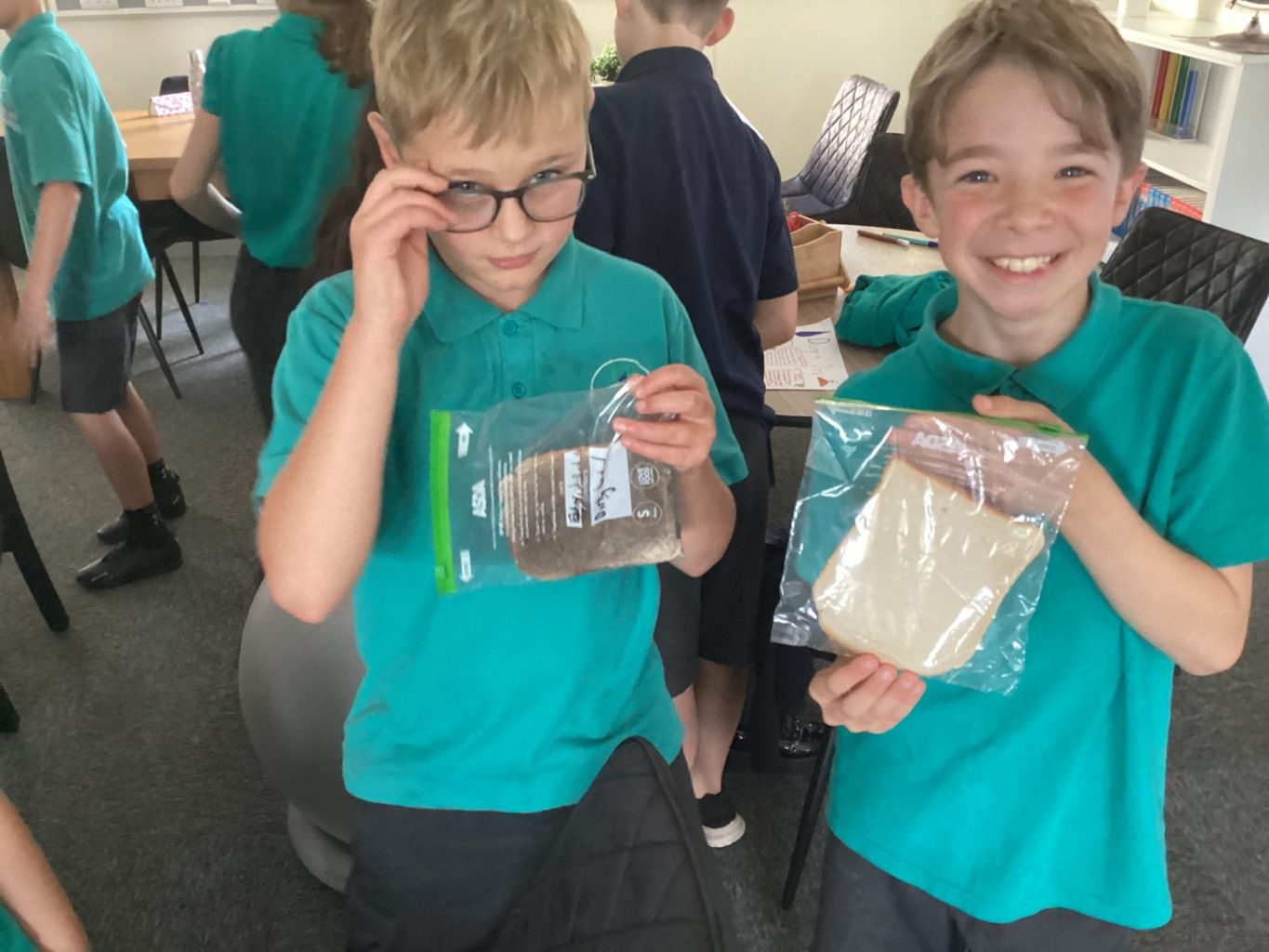 Finally, this week in science, UKS2 we introduced our autumn 1 topic of ‘Working scientifically’. Firstly, the children researched and discussed the work of Alexander Fleming and how this has impacted our society. Then, they were challenged to design their own experiment to create mouldy bread. The children discussed the dependent, independent and control variables for their own experiments, then set up their tests using zip lock bags and bread. They will revisit their bread slices in ten days time.