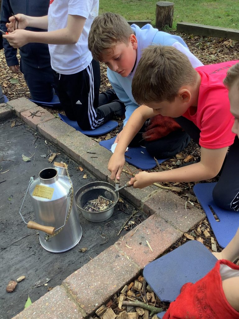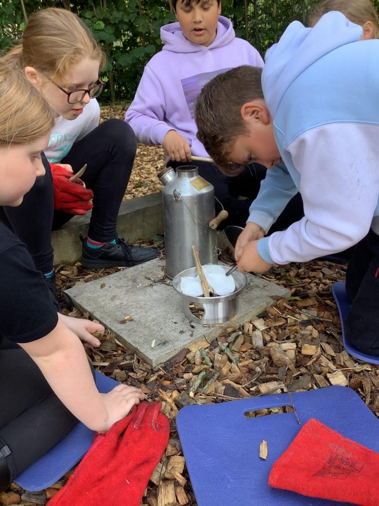 Today UKS2 had their National Forest School day session. The children were split into cohorts (Year 5 and 6) and took turns completing a Forest School session in the garden and completing some geography tasks inside. Outside, the children had the option to practise their fire making skills in the kelly kettles, whittle Greek Hoplite spears, complete some Forest School art, do some knot tying or complete ‘The Egg Challenge’. The resilience, perseverance and communication was fantastic, with the children engaging politely, collegially and enthusiastically in their tasks. We cannot wait for Forest Schools on Monday!