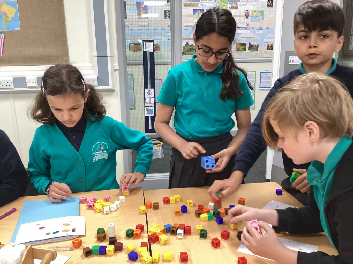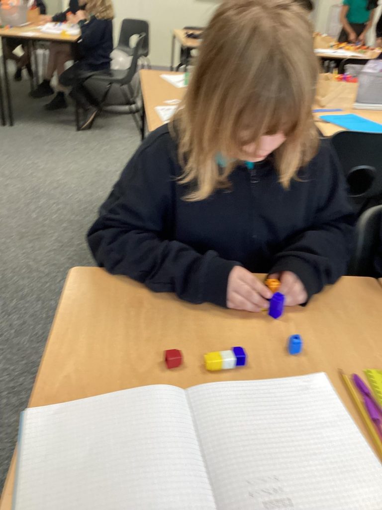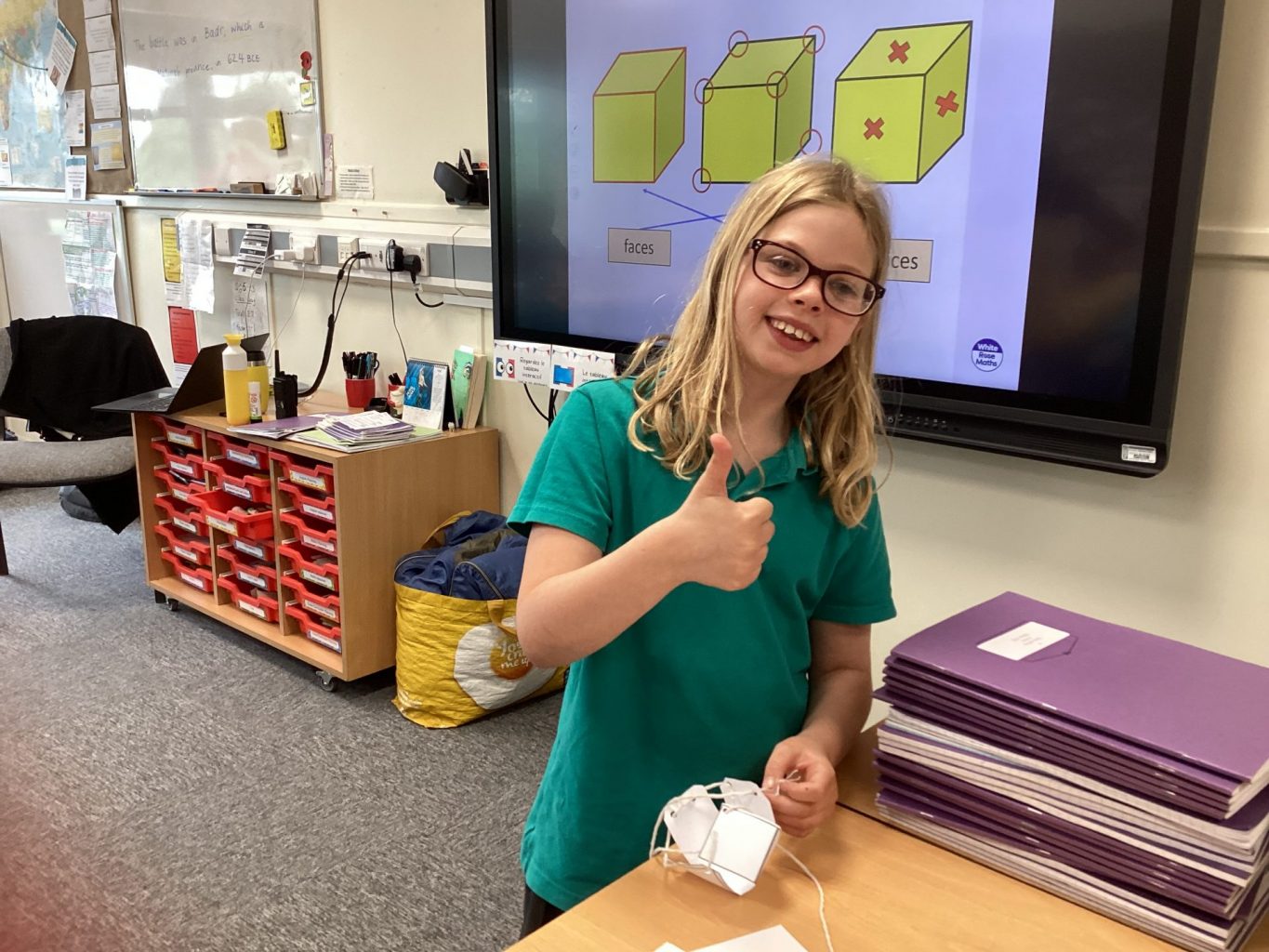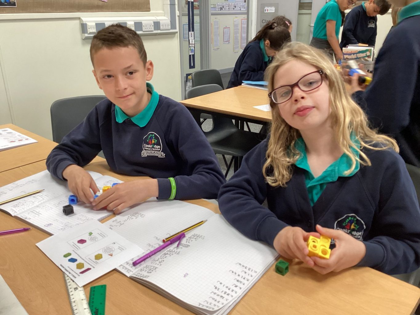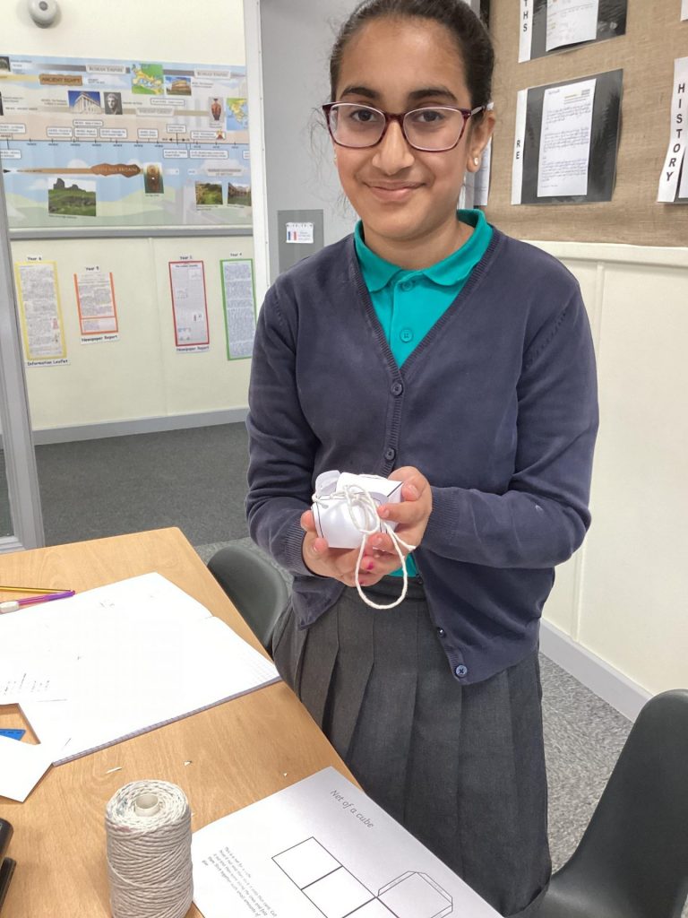 This week, Miss Chambers’ maths class have bee busy! Firstly, the children in Miss Chambers’ maths class started the lesson by being given some measuring jugs with the units are covered up. They estimated how much water they thought was in them. As a table group, they compared their strategies for estimating the capacity of the water jugs. Then, they used multi-link to investigate volume. Secondly, over the course of this week, they developed their ability to identify 3-D shapes from 2-D representations. Using a whole-punch and string, they brought nets to life! Once they had made each 3-D shape, using nets, they identified how many edges, faces and vertices it had.
