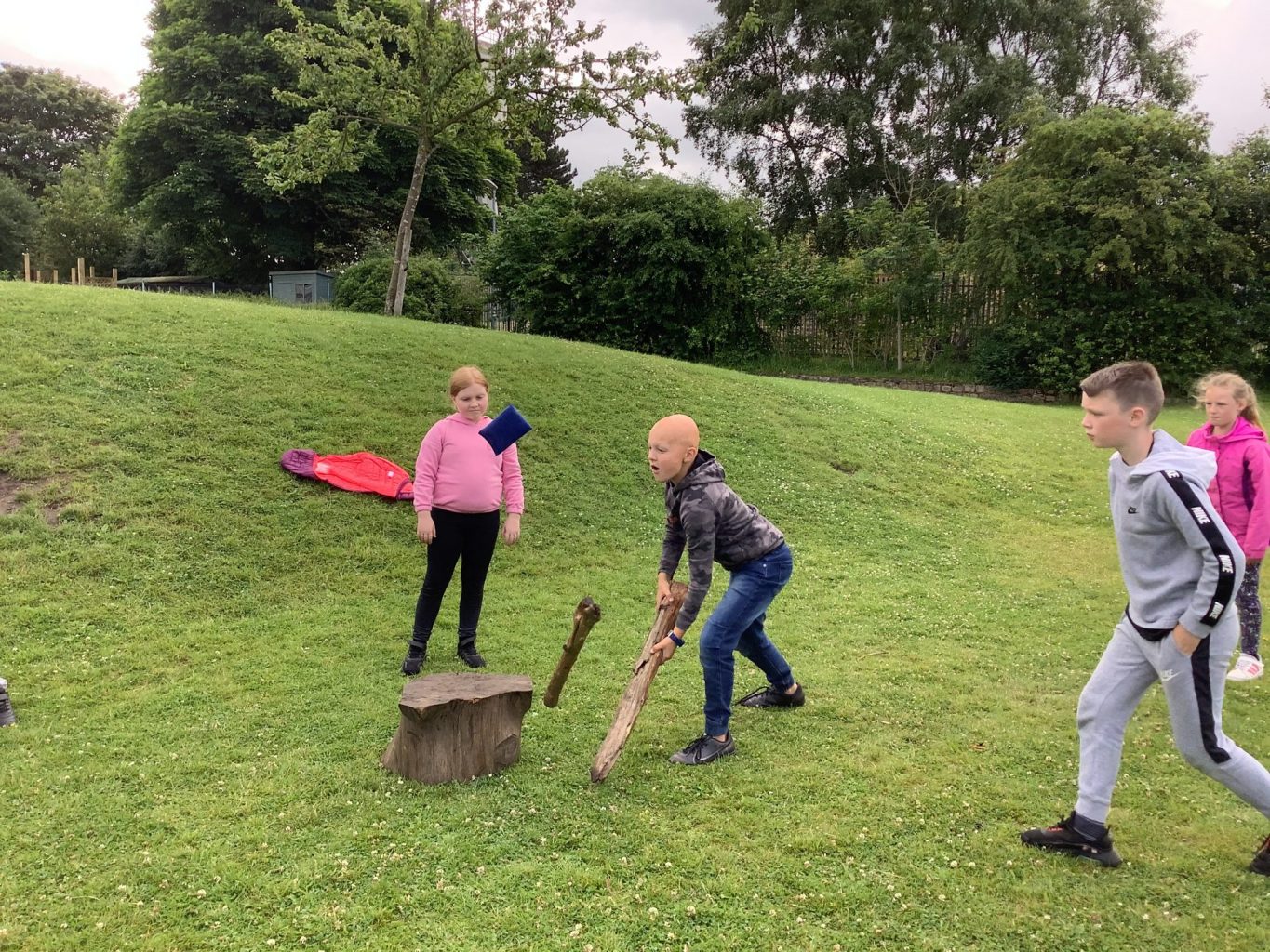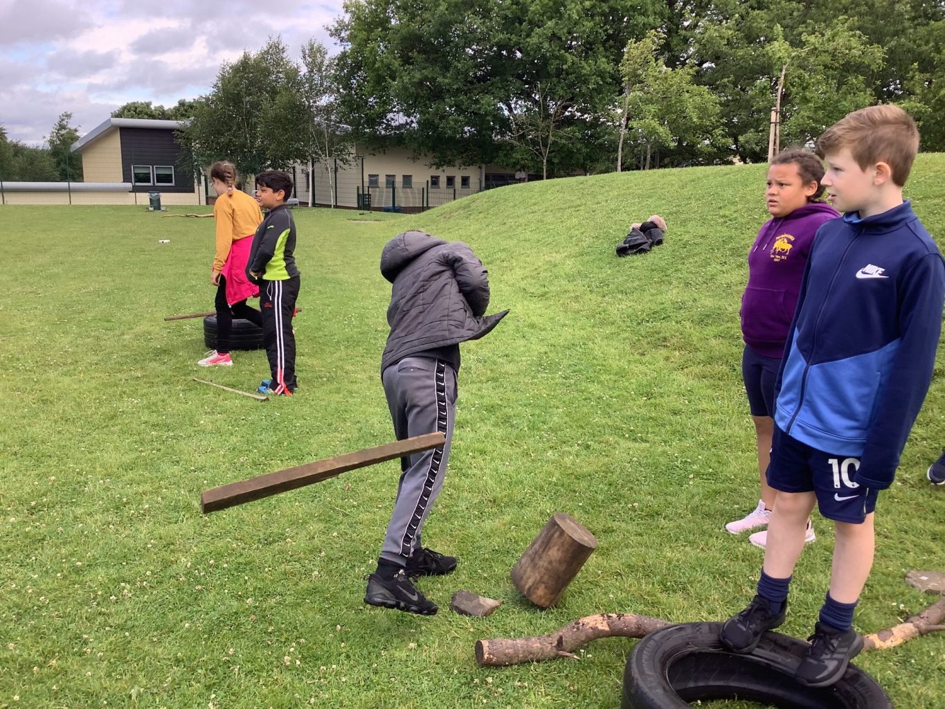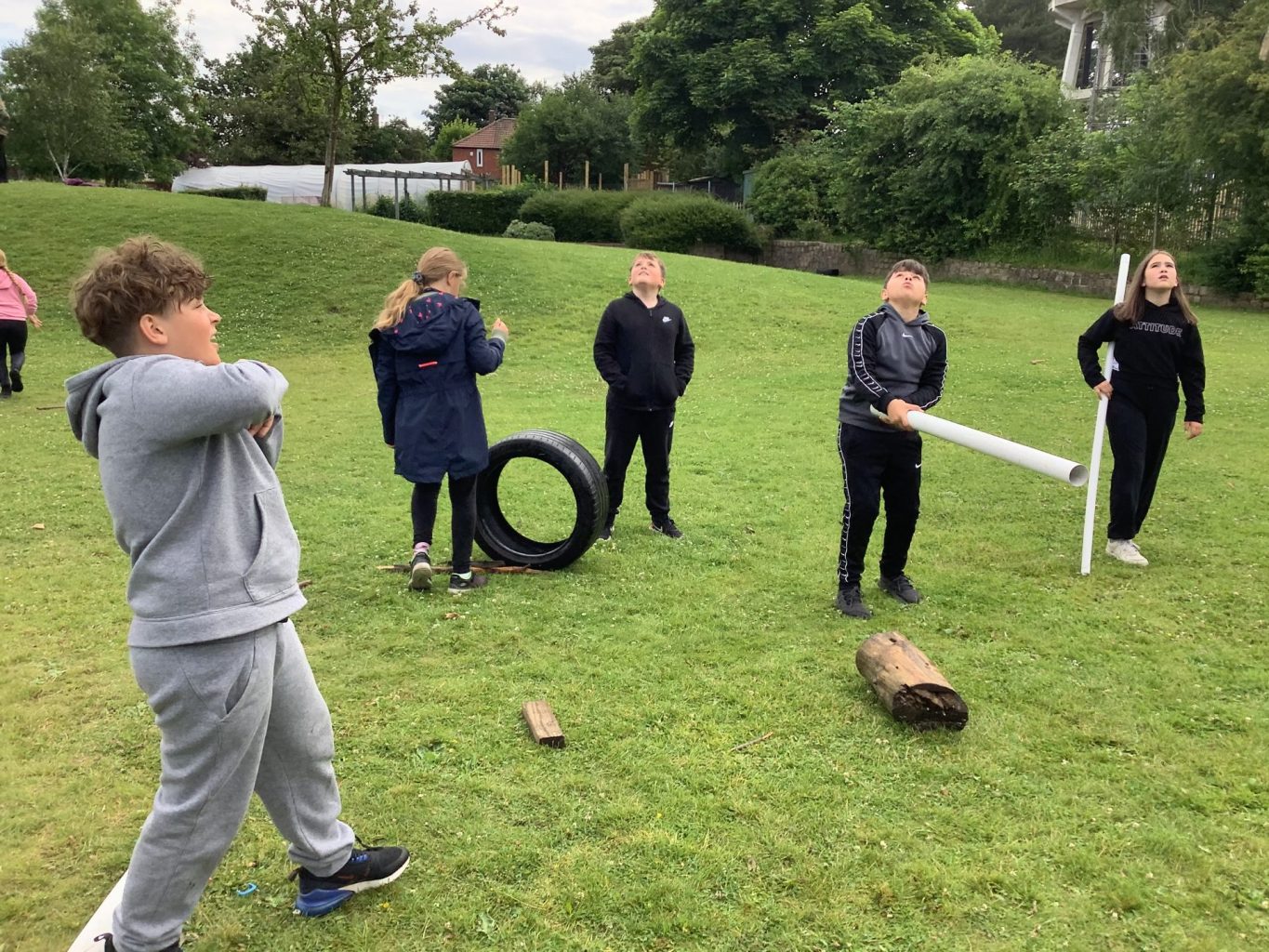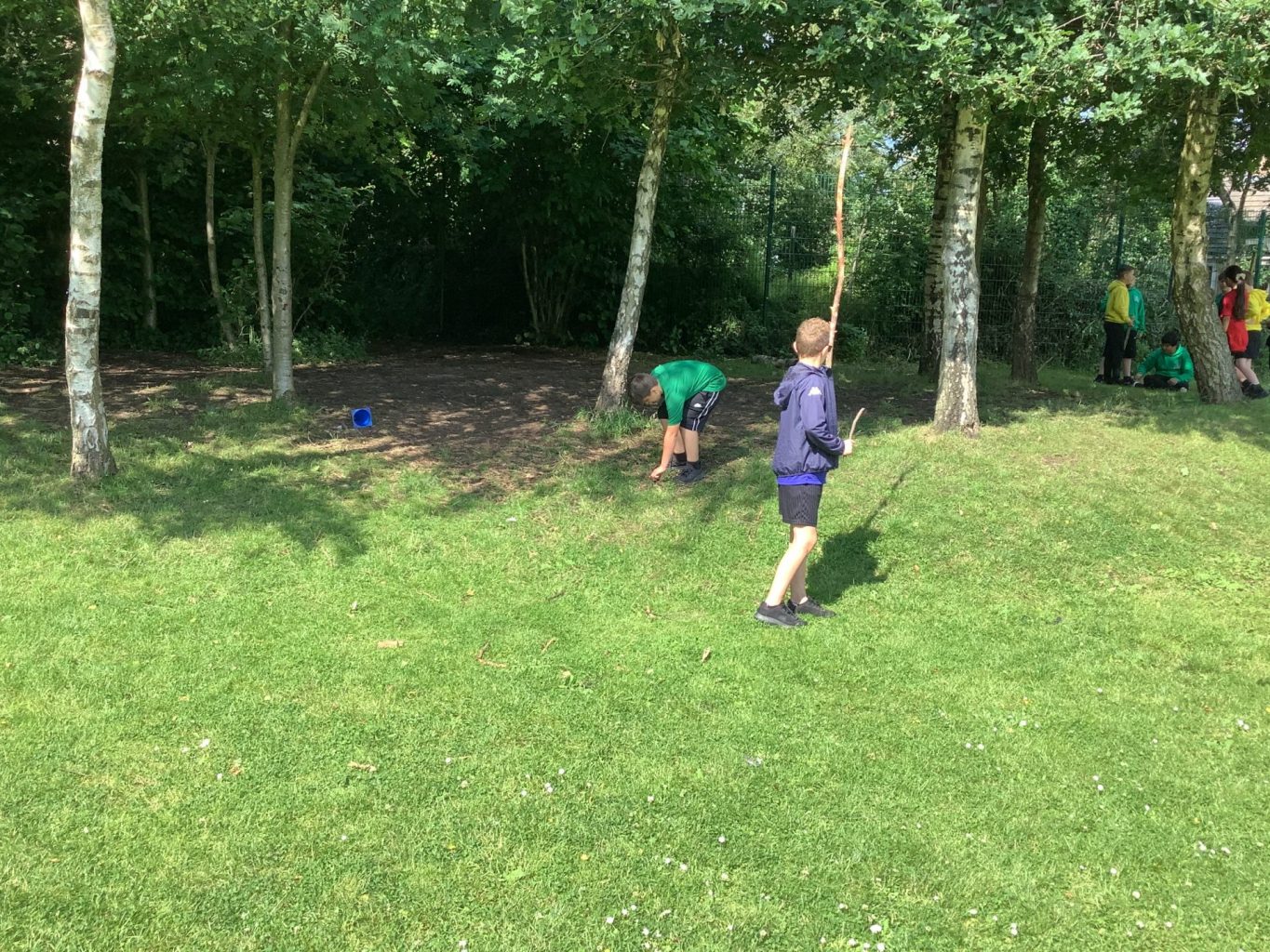On Monday in Forest School, Class 8 completed their catapult competition. Using the resources they could scavenge on the school field, the children designed, created and used their catapults to launch bean bags across the field.
