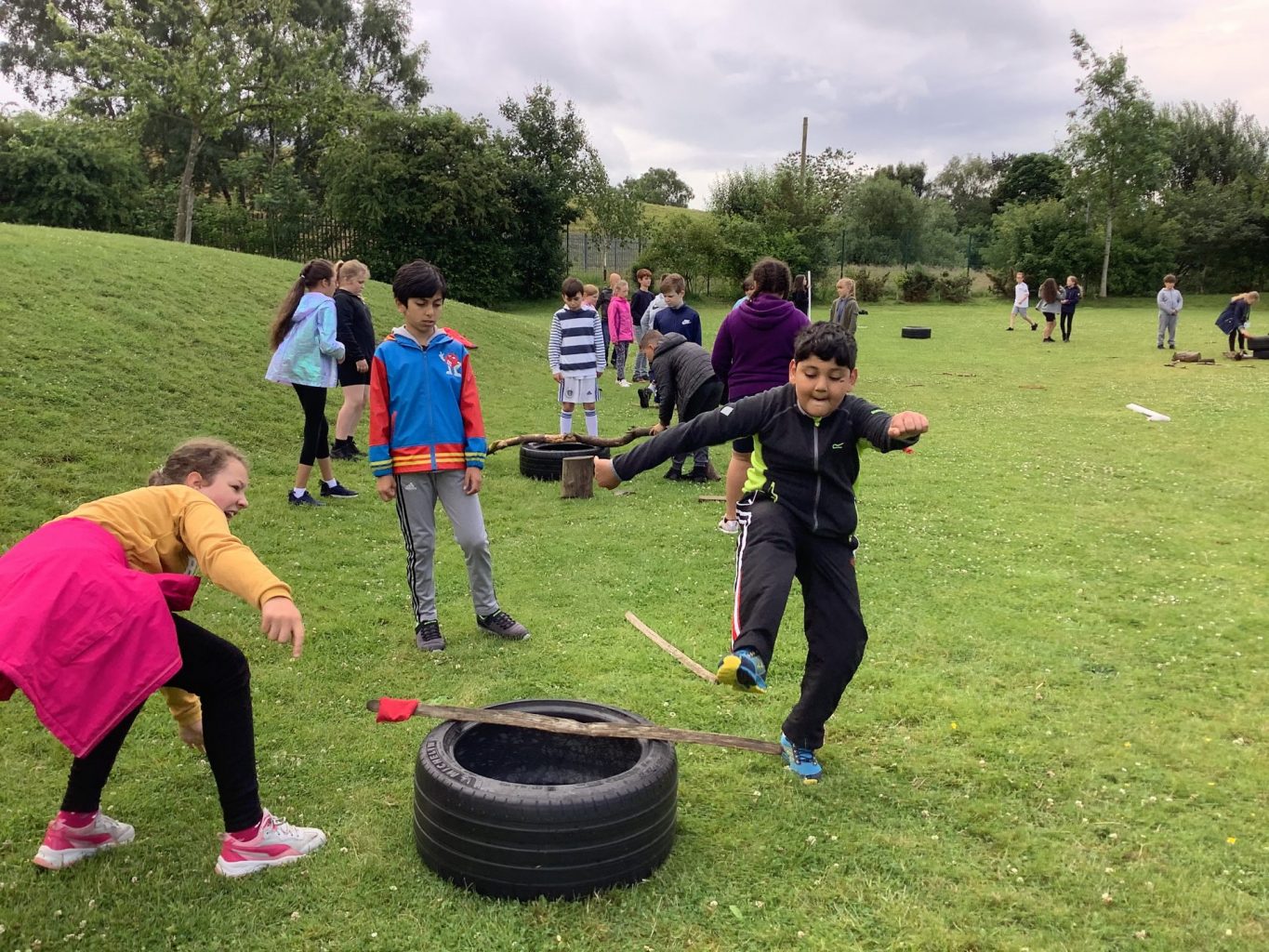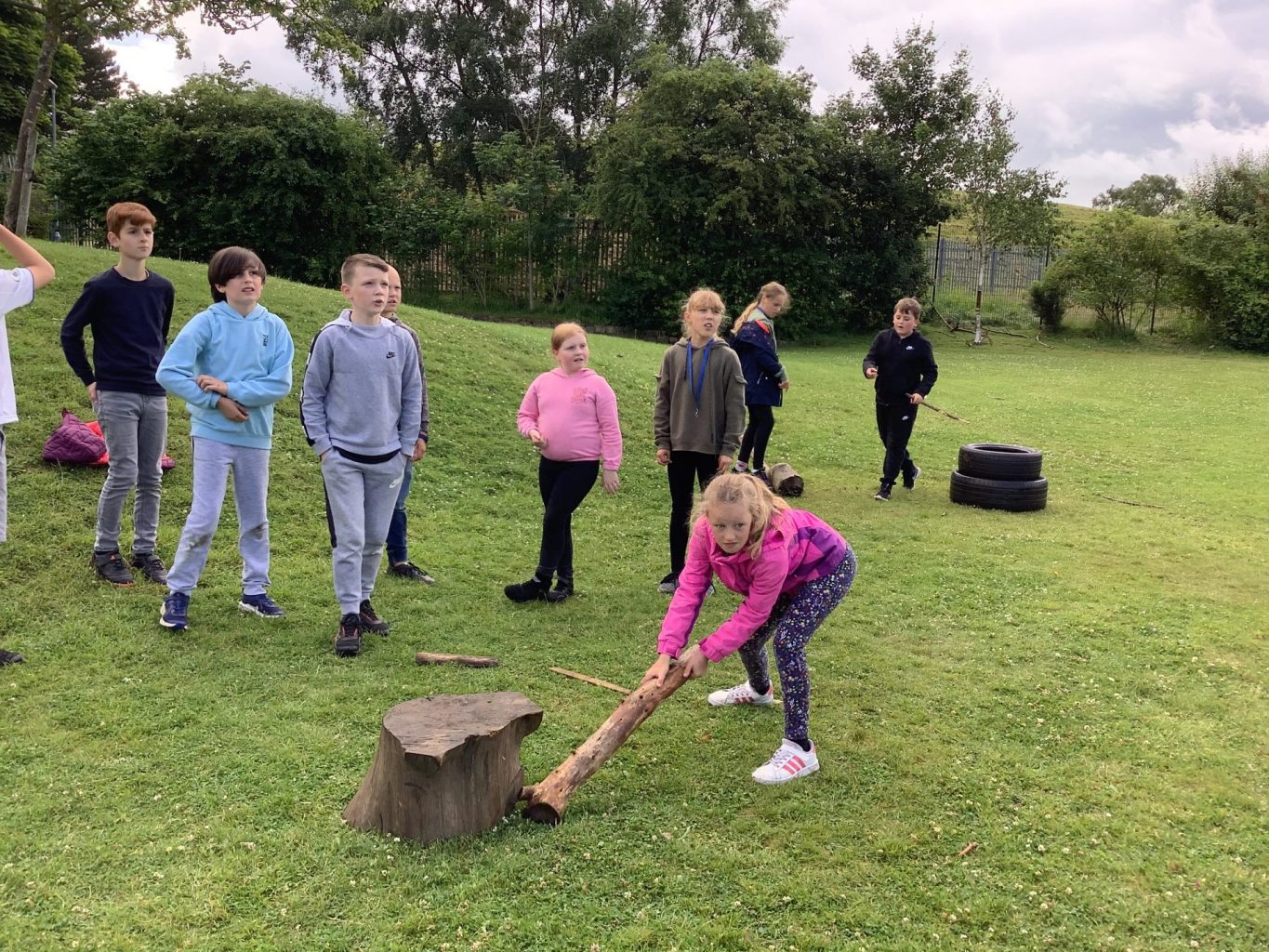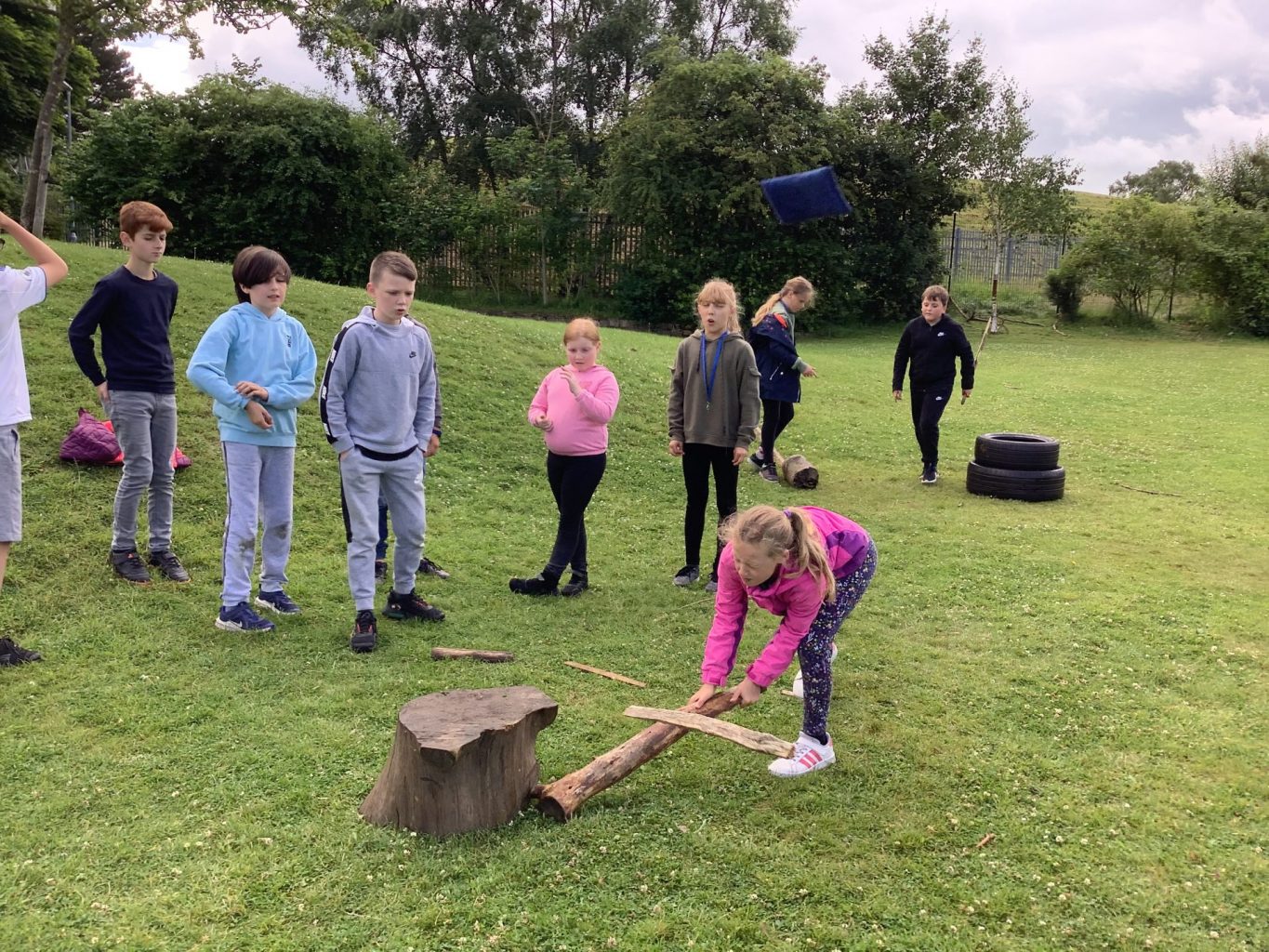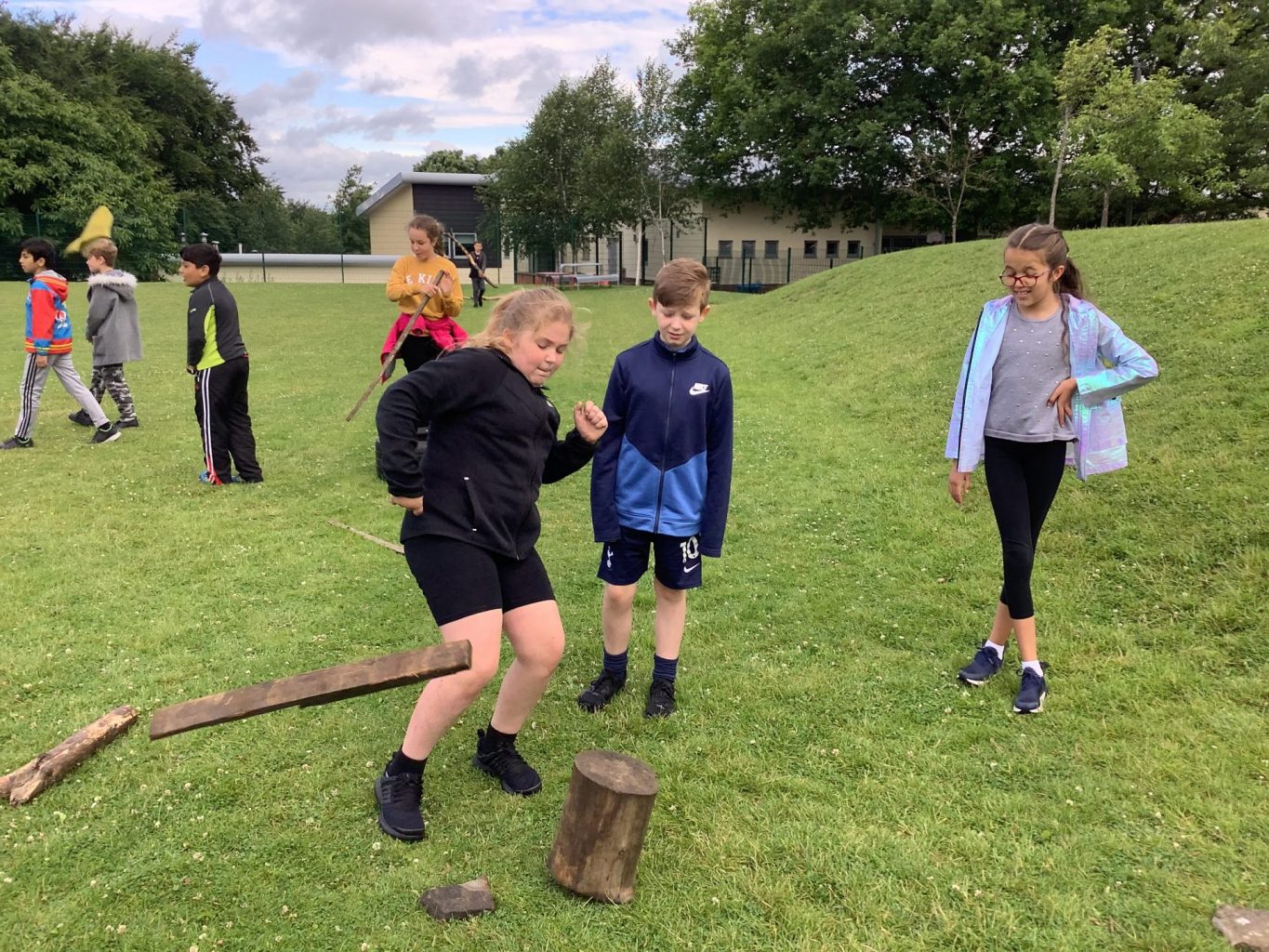 On Monday in Forest School, Class 8 completed their catapult competition. Using the resources they could scavenge on the school field, the children designed, created and used their catapults to launch bean bags across the field.