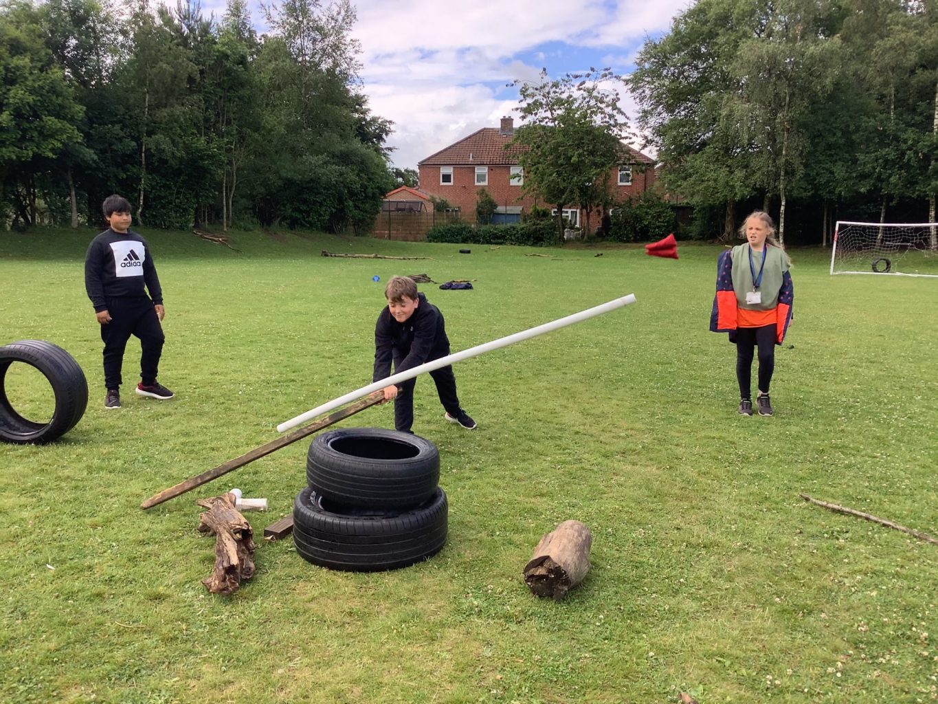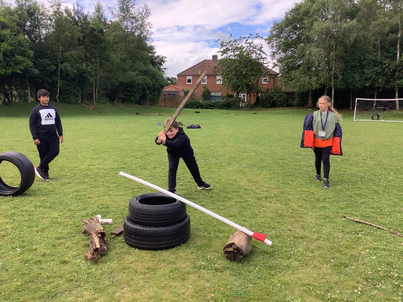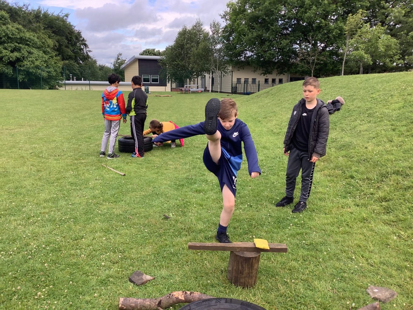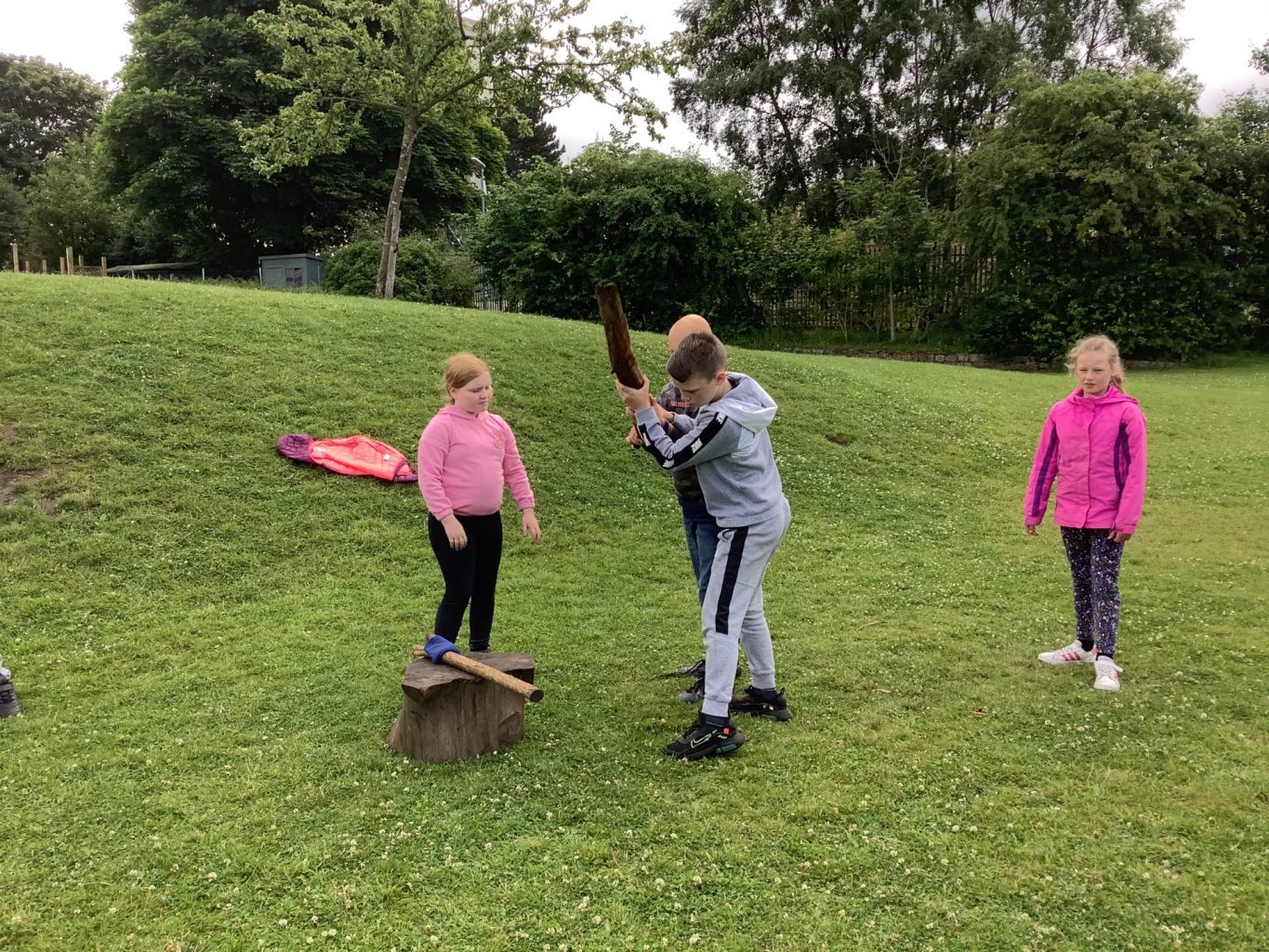 On Monday in Forest School, Class 8 completed their catapult competition. Using the resources they could scavenge on the school field, the children designed, created and used their catapults to launch bean bags across the field.