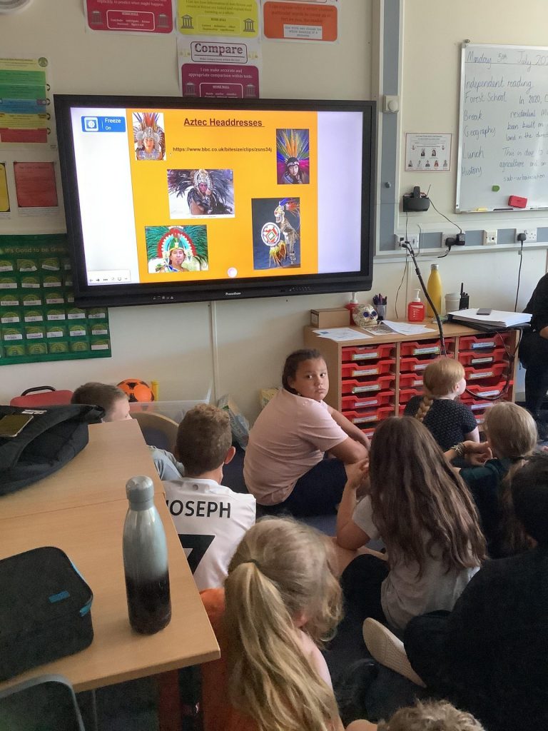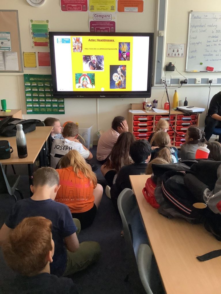 In the afternoon, Class 8 designed their own Aztec headdresses. Using animals and colours to inspire their design, they created some beautiful work.