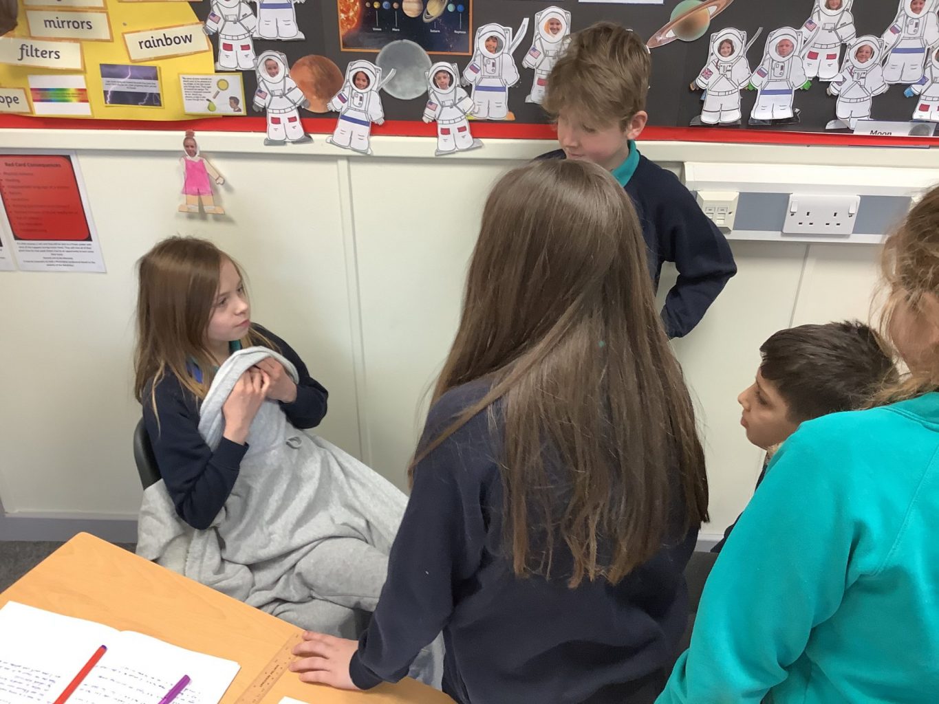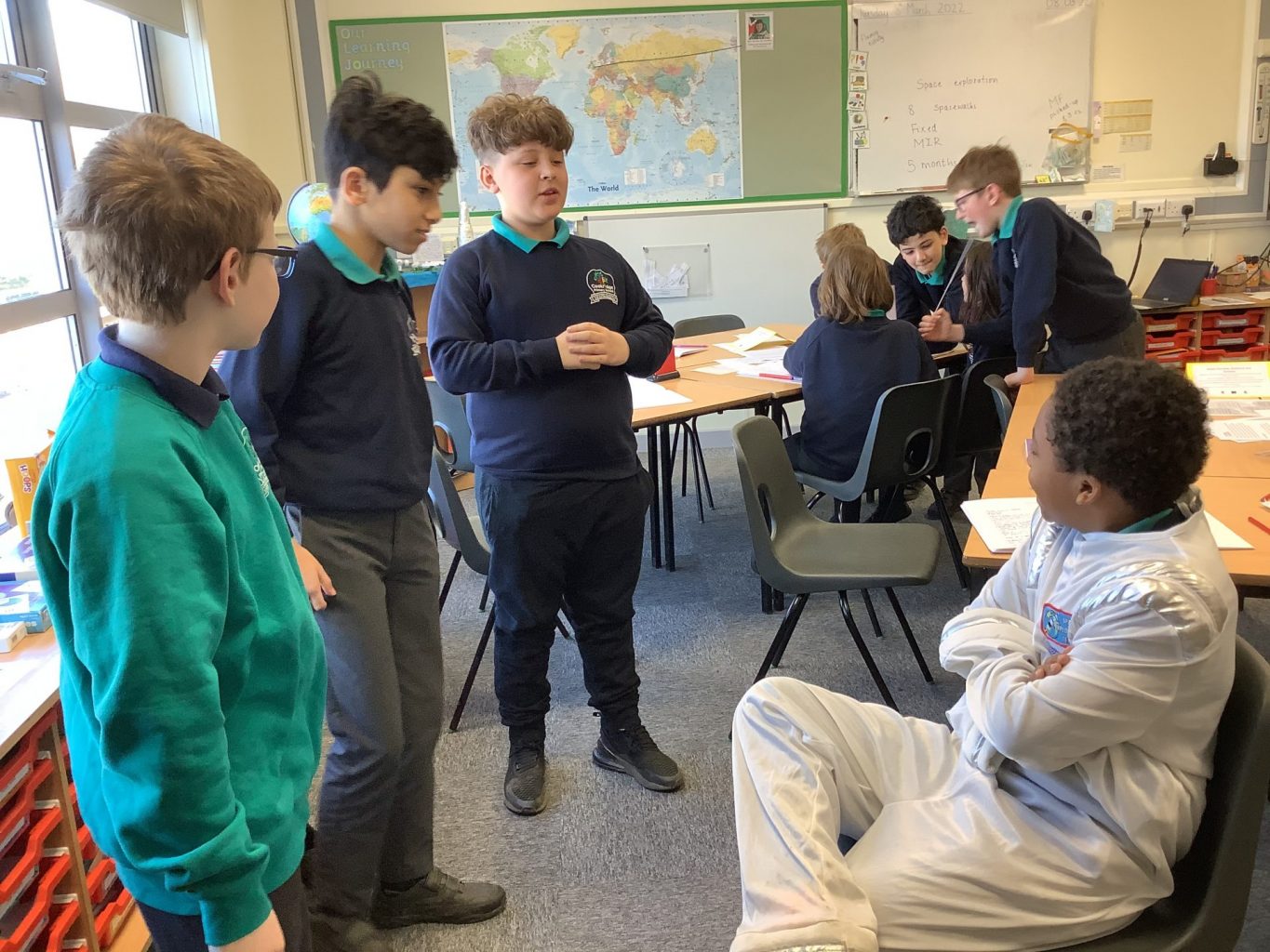 This week in English, the children have been gathering facts about Helen Sharman – ready for the biographies they will write next week. To help develop their understanding about her life, the children used their research about her to roleplay key points in her life.