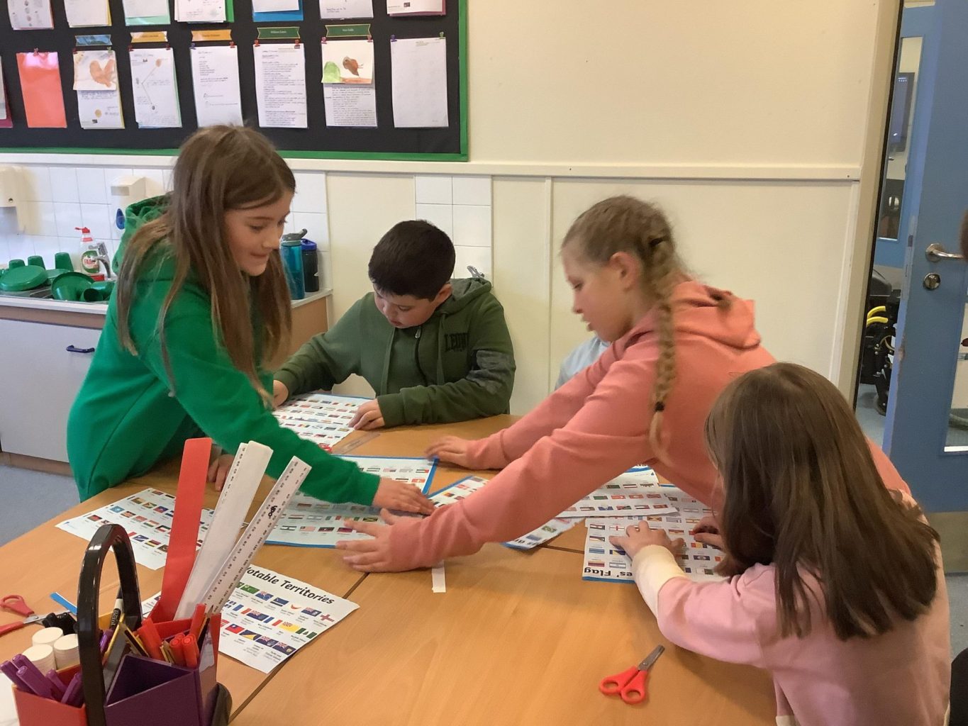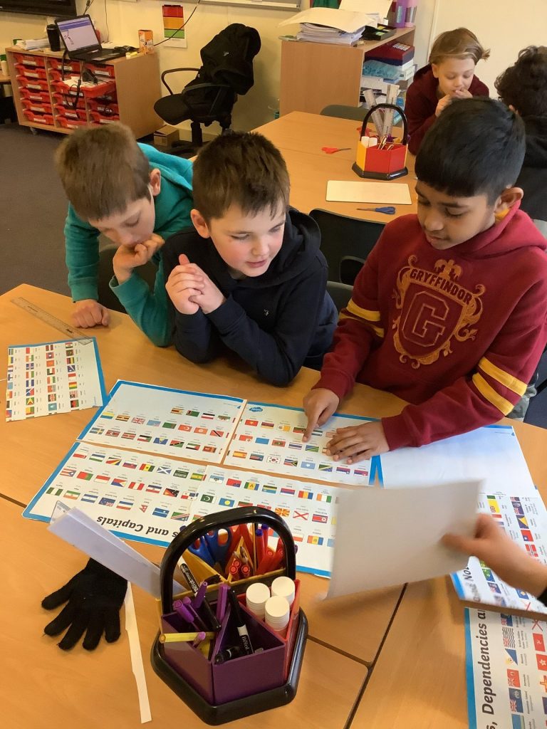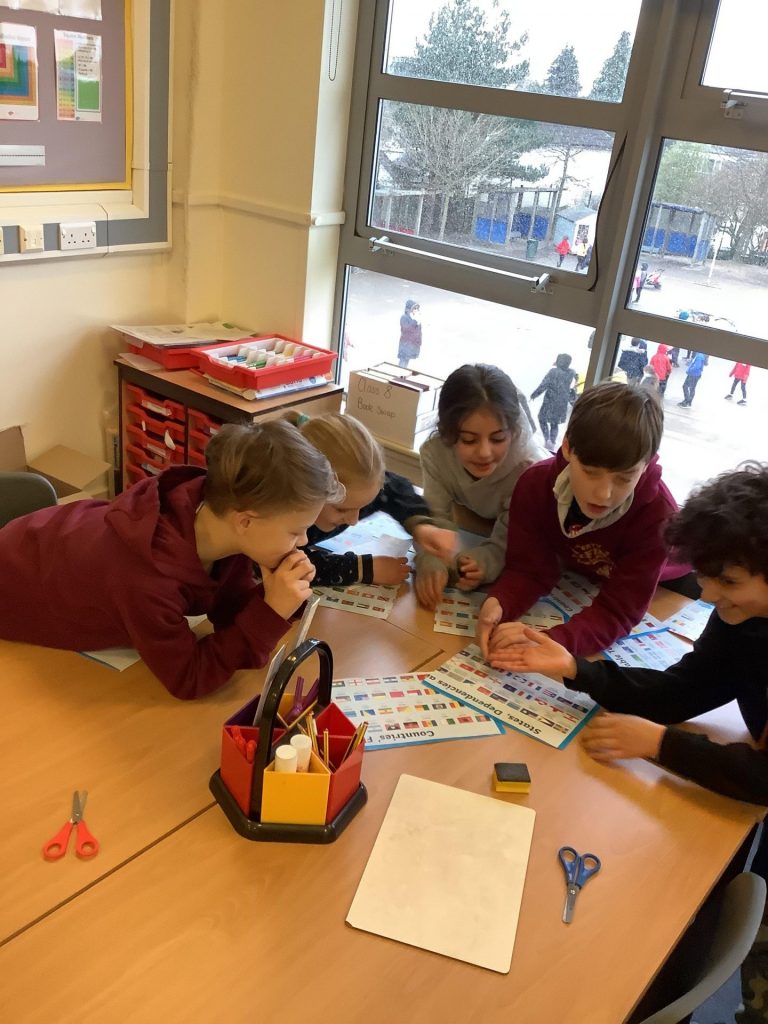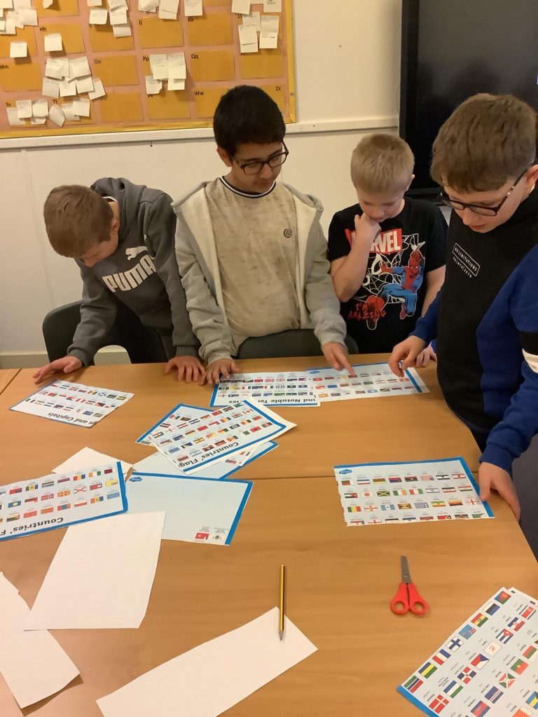 In geography, Class 8 were tasked with analysing and organising the flags of the world. Afterwards, using their own lifestyle, culture and beliefs, they designed their own flags. They chose their own colours and symbols to represent themselves.