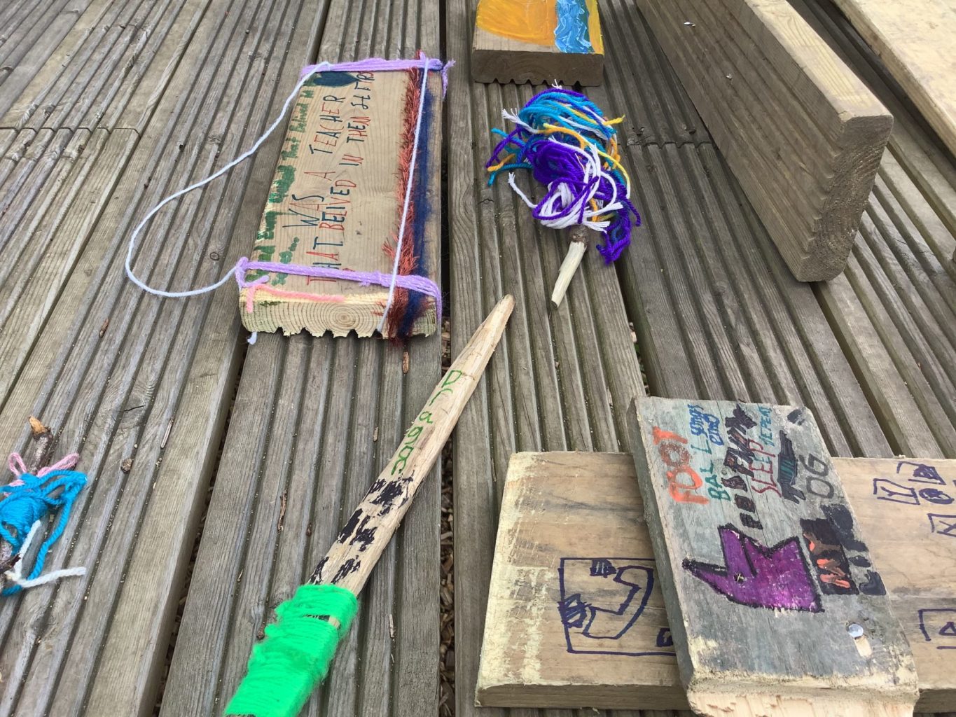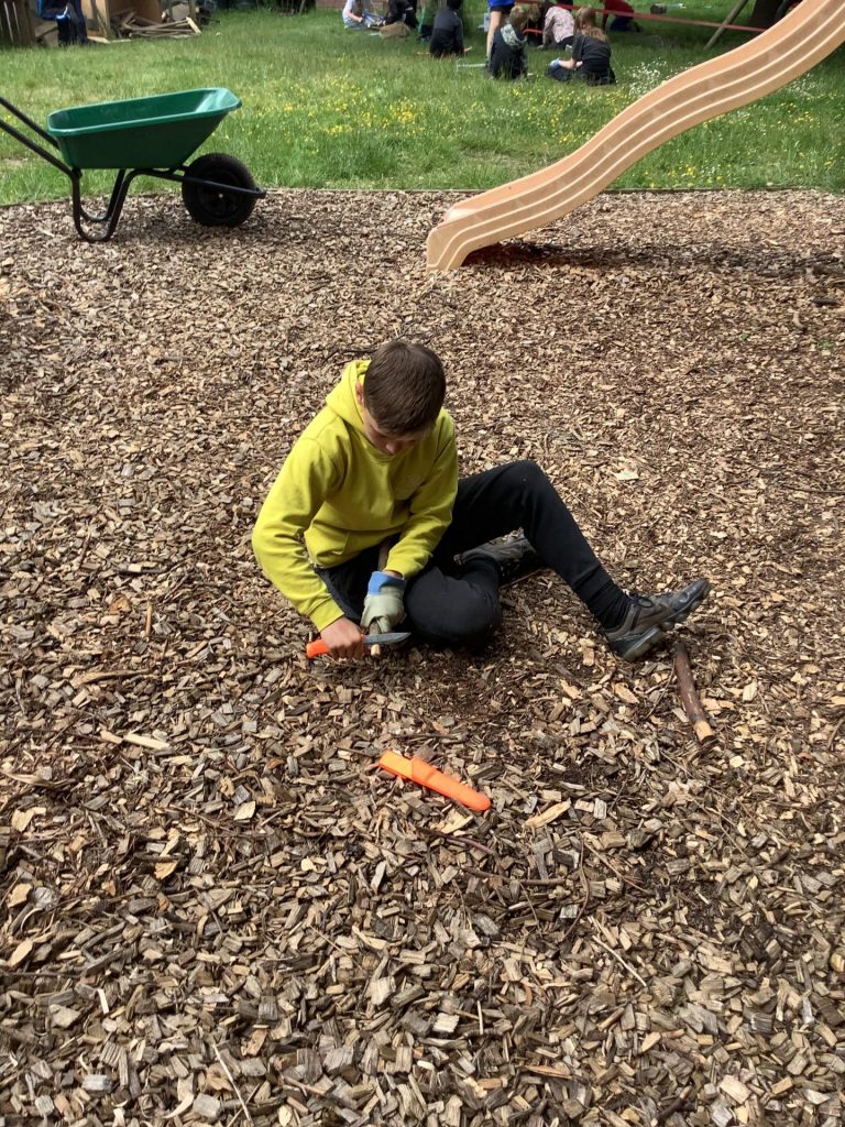 On Monday, in Forest School, the children were challenged to create a piece of artwork that represented them. They were able use anything they could find, and were supplied with paint, wool and pens to help decorate their pieces. Along with this, the children were encouraged to incorporate their Forest School skills, including: whittling, sawing, hammering, lashing, weaving and drilling. The children used the tools very responsibly, and created some excellent pieces of art. Well done everyone.