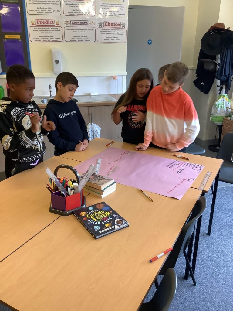 It has been a very busy week in UKS2! On Monday, the children had their first cross curricular day of the new academic year! All classes had the opportunity to carousel around three different activities. The first session was based around science, with pupils working in groups to try and create an experiment based on the statement, ‘The bigger the item, the more water is displaced’. The second session was Forest School and pupils worked in the garden space (working alongside Mr Gamble) to develop their sawing skills, their creativity with rock art and having some fun on the tree house! In the final session, students used the Now Press Play headphones to be taken back in time and revisit the Ancient Greeks and further develop their knowledge of our current topic.