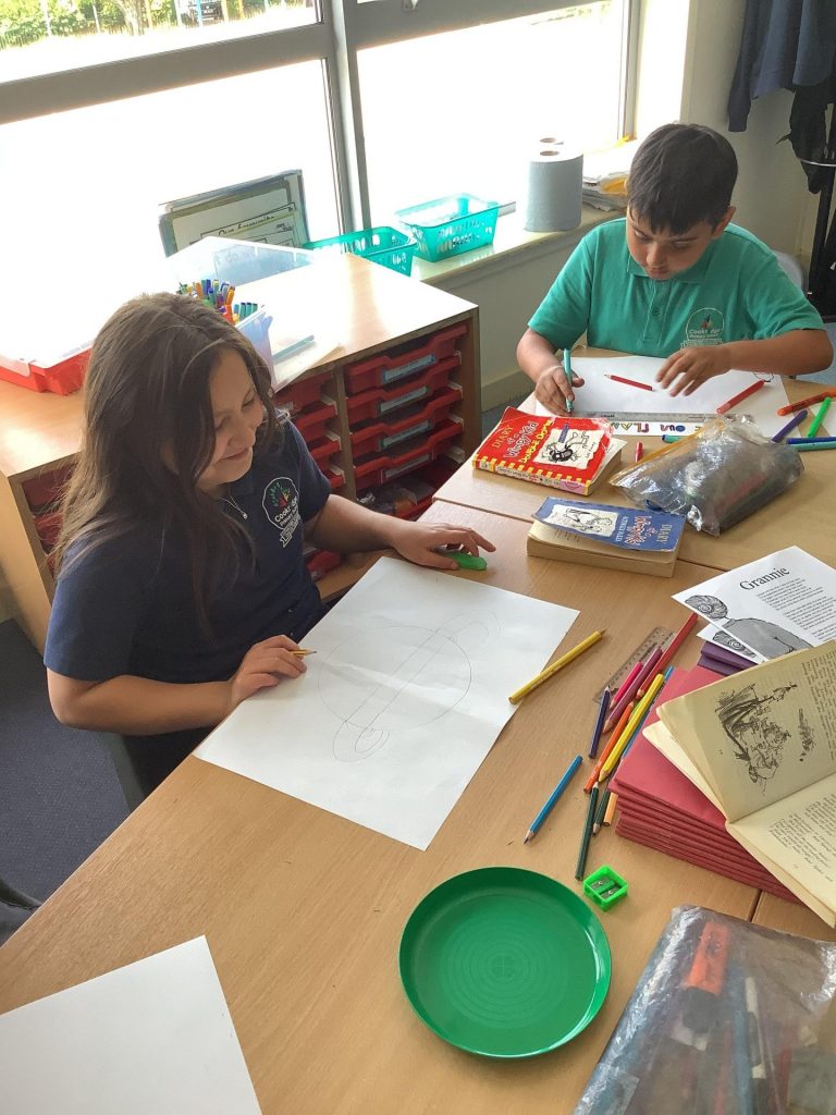 On Monday, UKS2 enjoyed a varied and exciting day in PPA. In PE, the children had their first rounders lesson. Focusing on the key skills of throwing, fielding and batting, the children then took part in some small sided games. In music, the children used boom whackers to play some of their favourite songs. Finally in art, the children were sketching the England football team, following their emphatic victory against Croatia. After being given half the player’s face, the children used mirrors to sketch the rest.