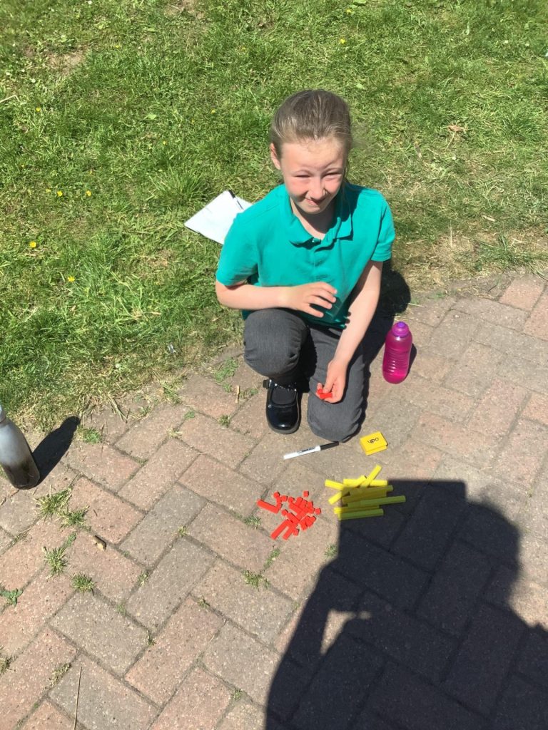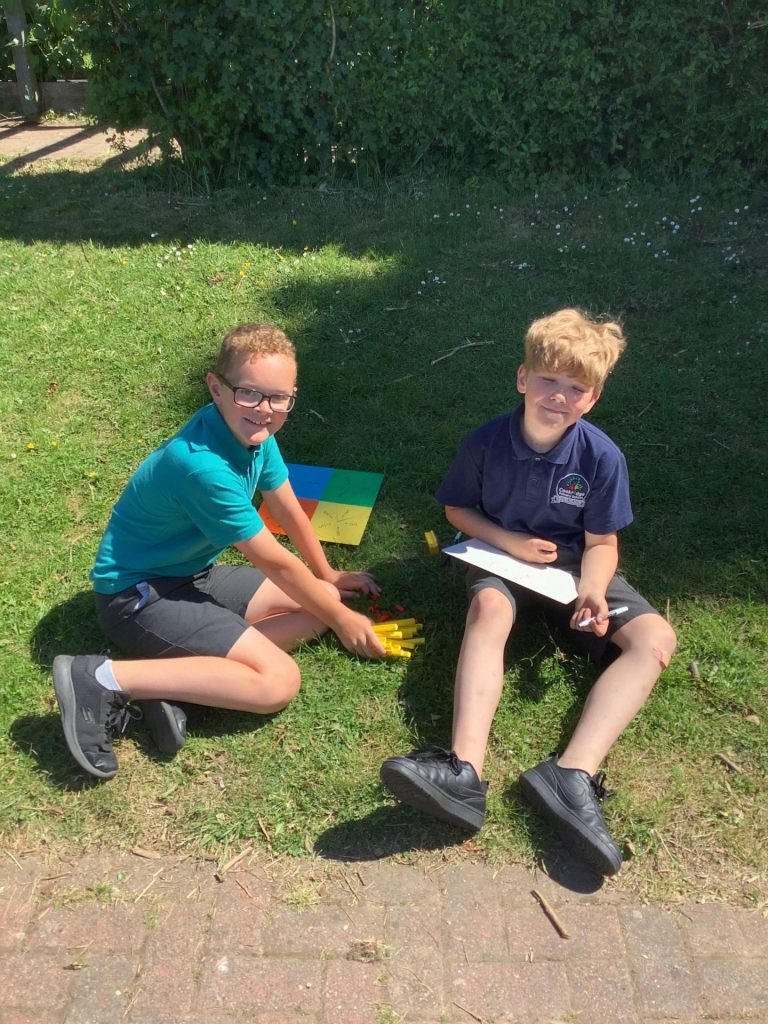 On Wednesday, Class 8 took to the field brimming with maths resources. Exploring the topic for the first time since lockdown, the children were tasked with displaying their knowledge on equivalence, simplifying and adding fractions. There was some excellent creative learning and some even more admirable resilience shown by the pupils. Well done everybody!
