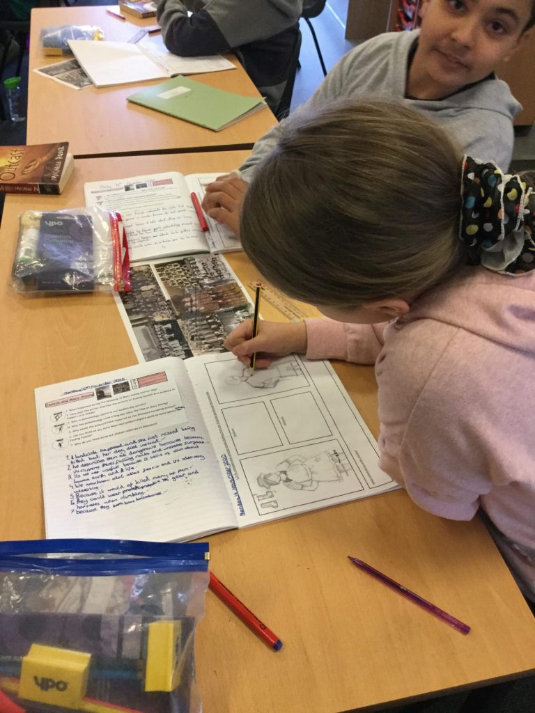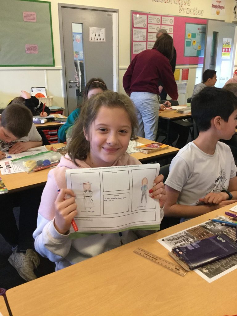 In history, Class 10 compared the similarities and differences between Victorian and modern school uniform. Using a range of skills, including: illustration, labelling and inference, the pupils were expected to justify the changes and link them to their existing knowledge of Victorian schooling. There were some excellent discussions and exemplary pieces of work produced.