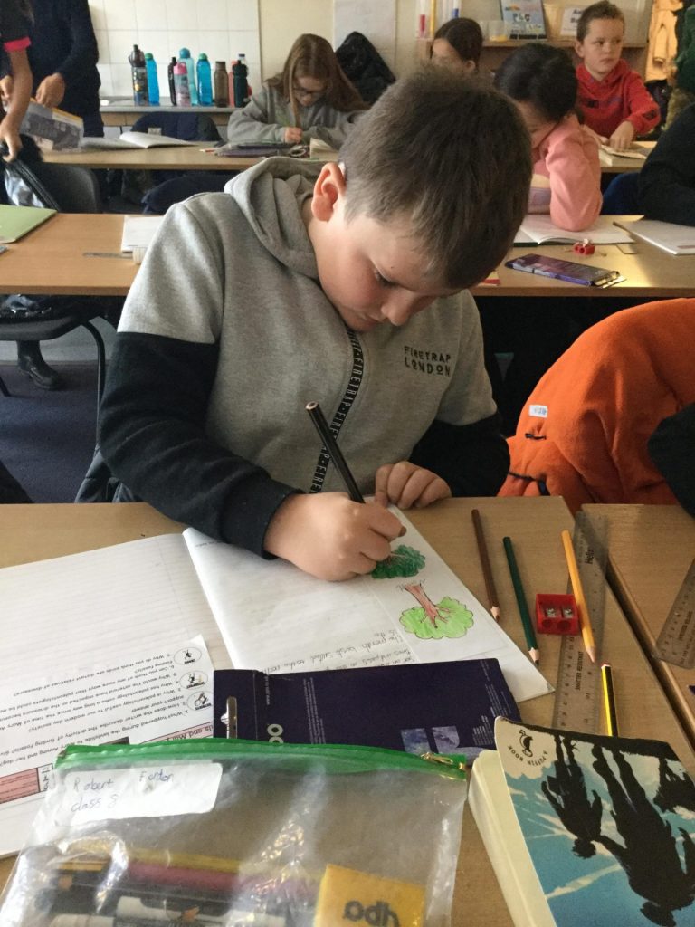 In science, Class 8 were exploring the concept of natural selection and inherited characteristics. Using the peppered moth as their case study, the children discussed the influence of the environment on the inherited characteristics of wildlife, as well as the impact human behaviour can have too.