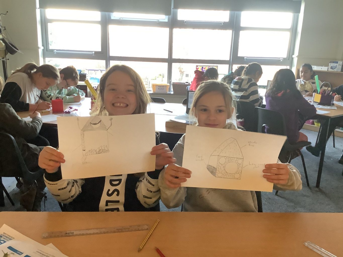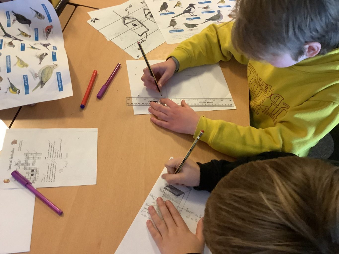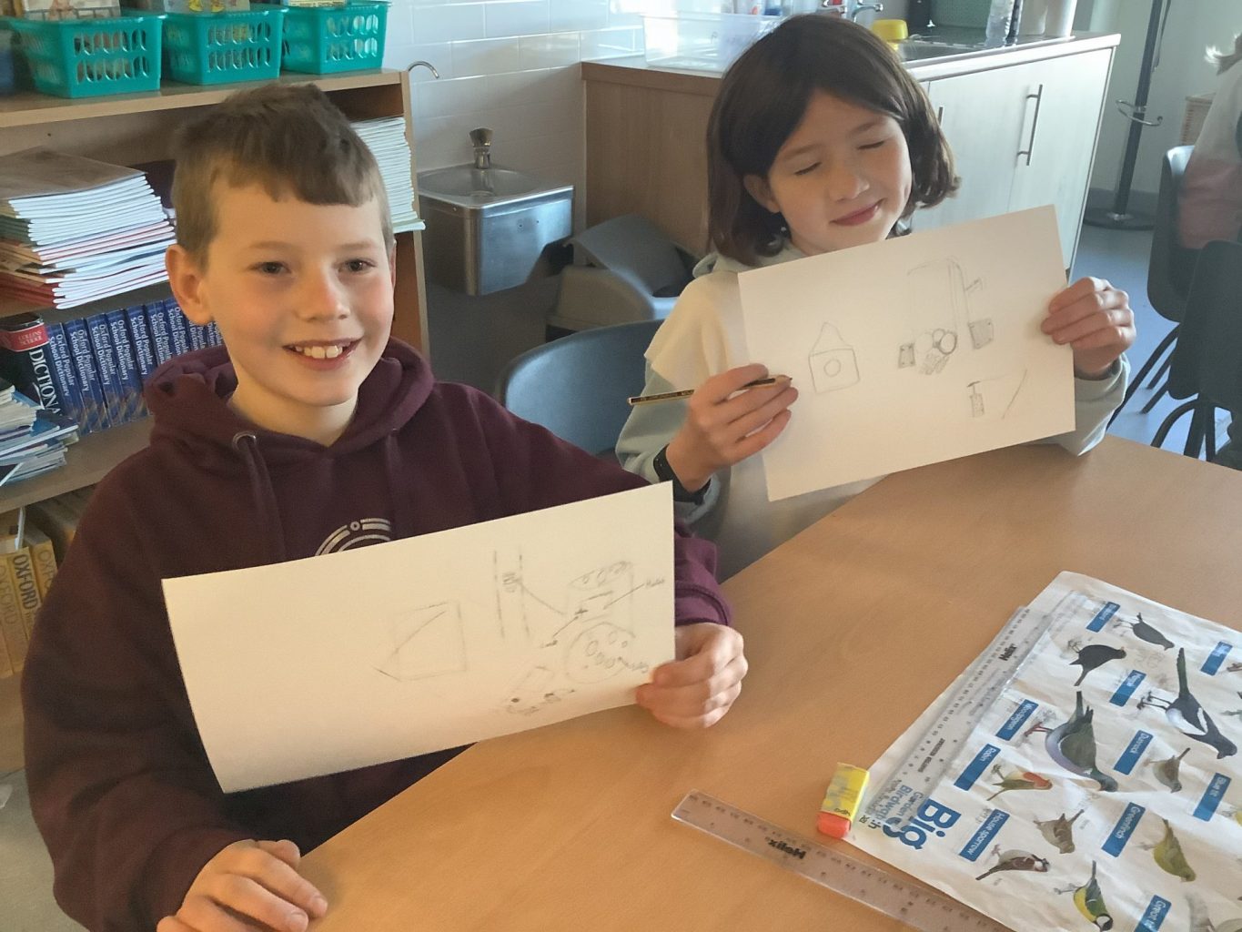 Once back inside, the children started to sketch out the design of their bird box.