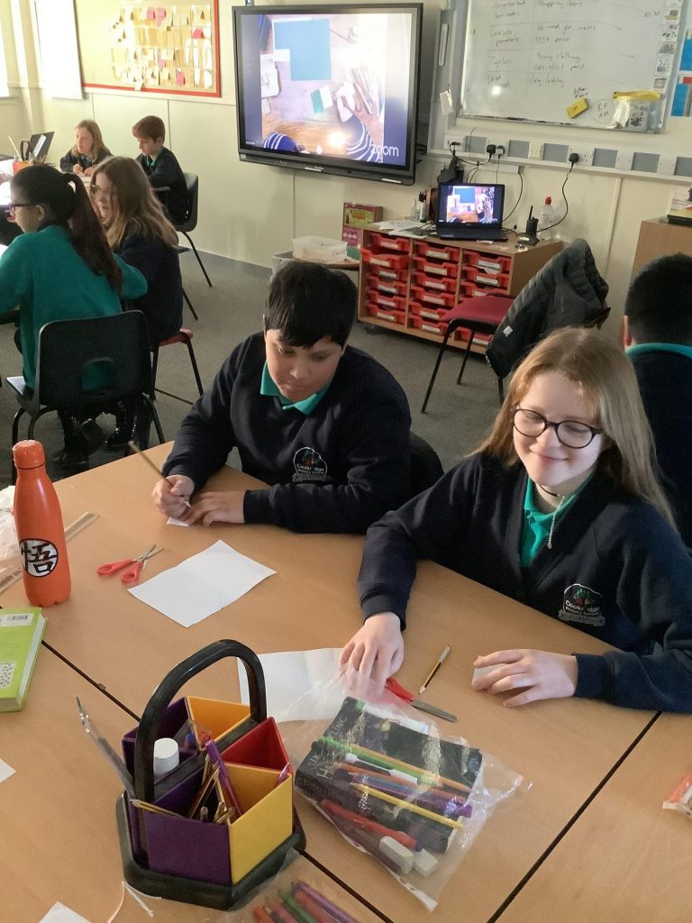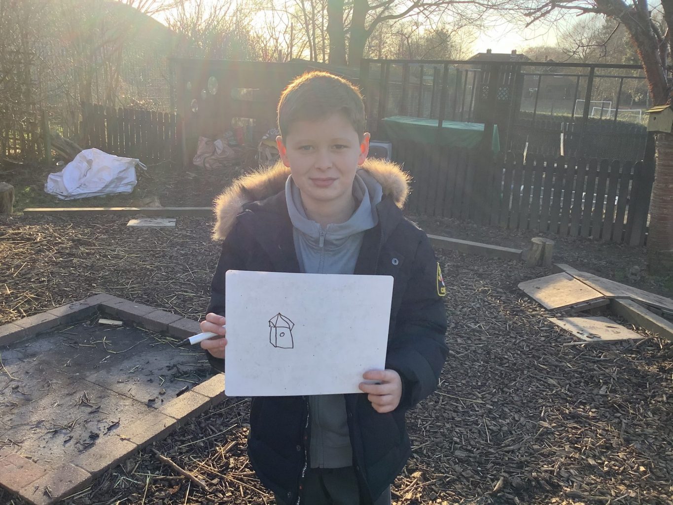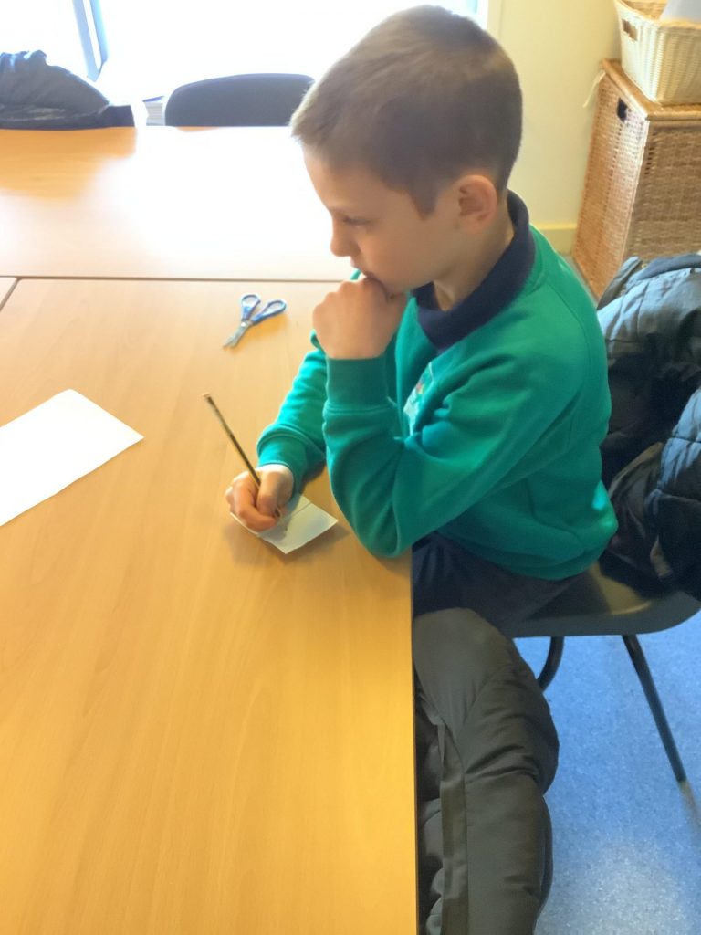 Once back inside, the children started to sketch out the design of their bird box.