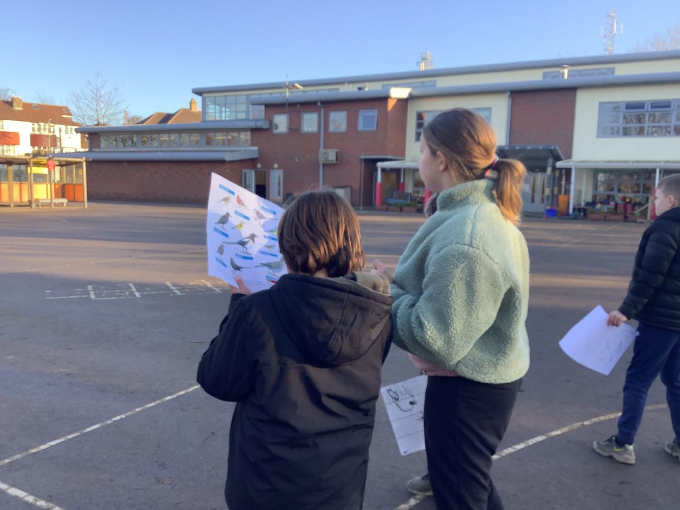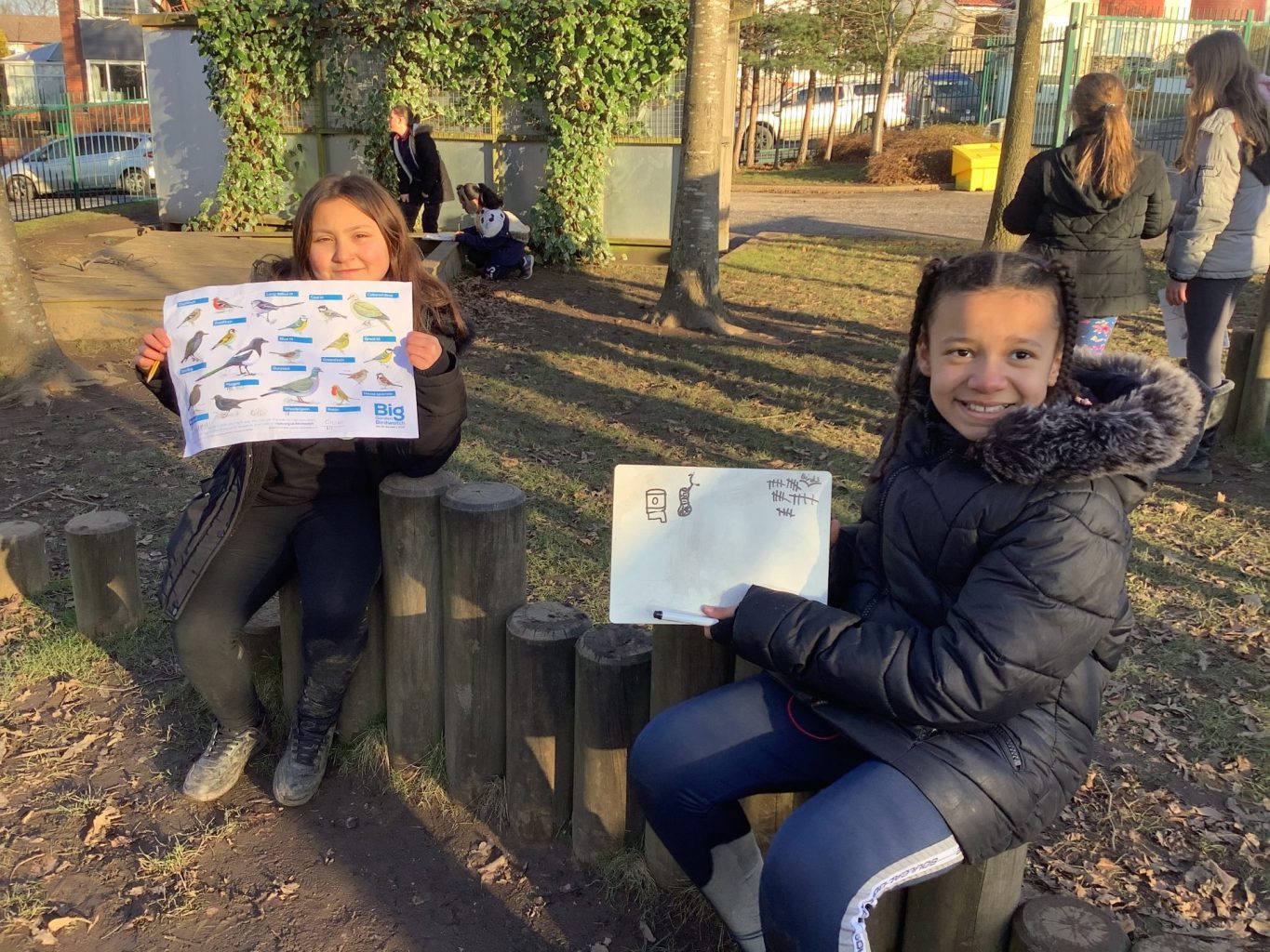 The children used information sheets to work in pairs and see if they could spot any birds on our walk. They also looked at the various bird boxes and reflected on their design, use of materials and placement.