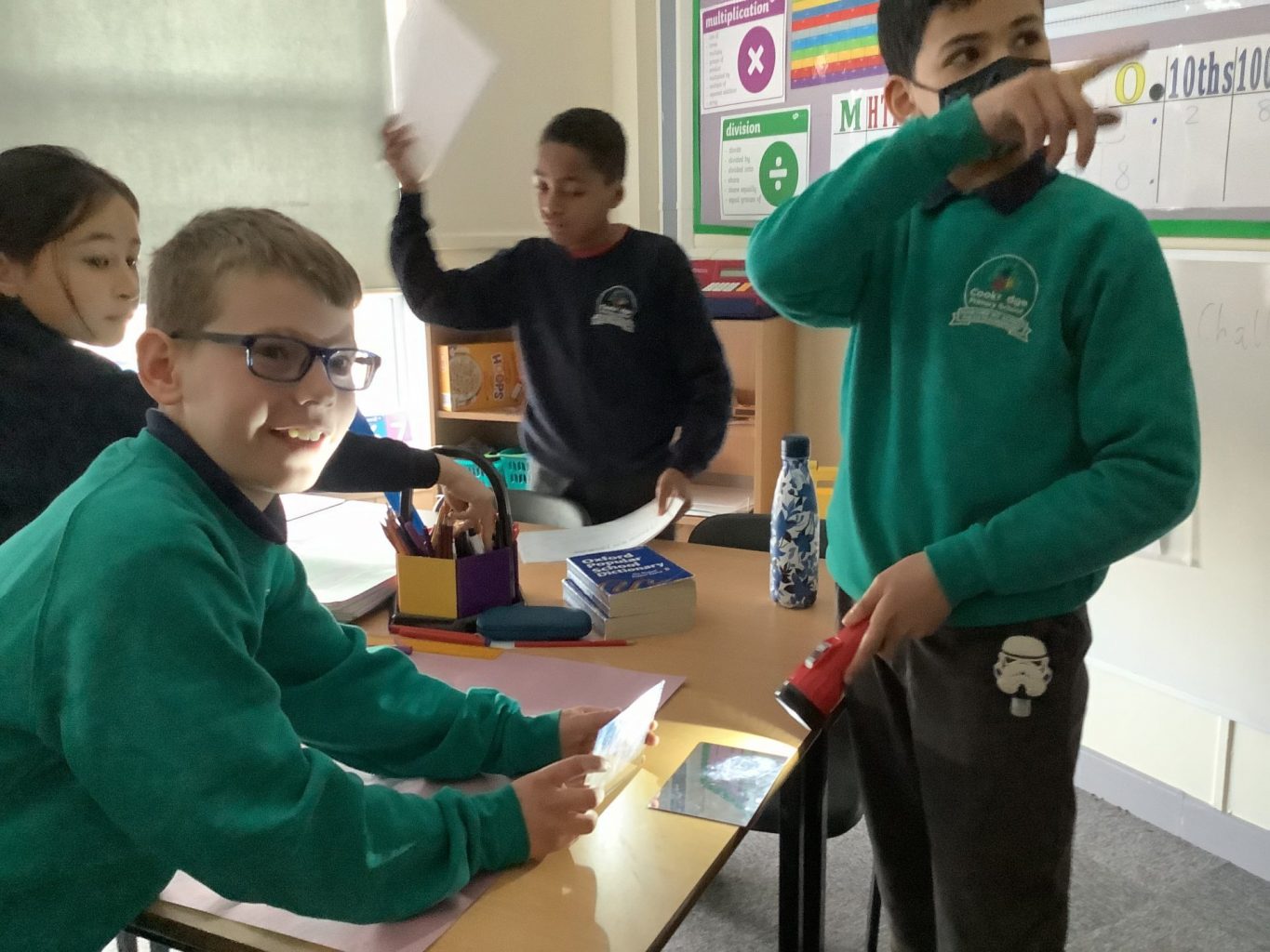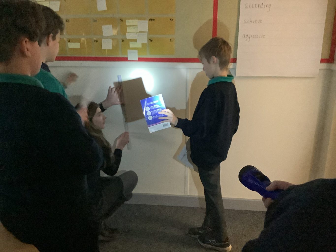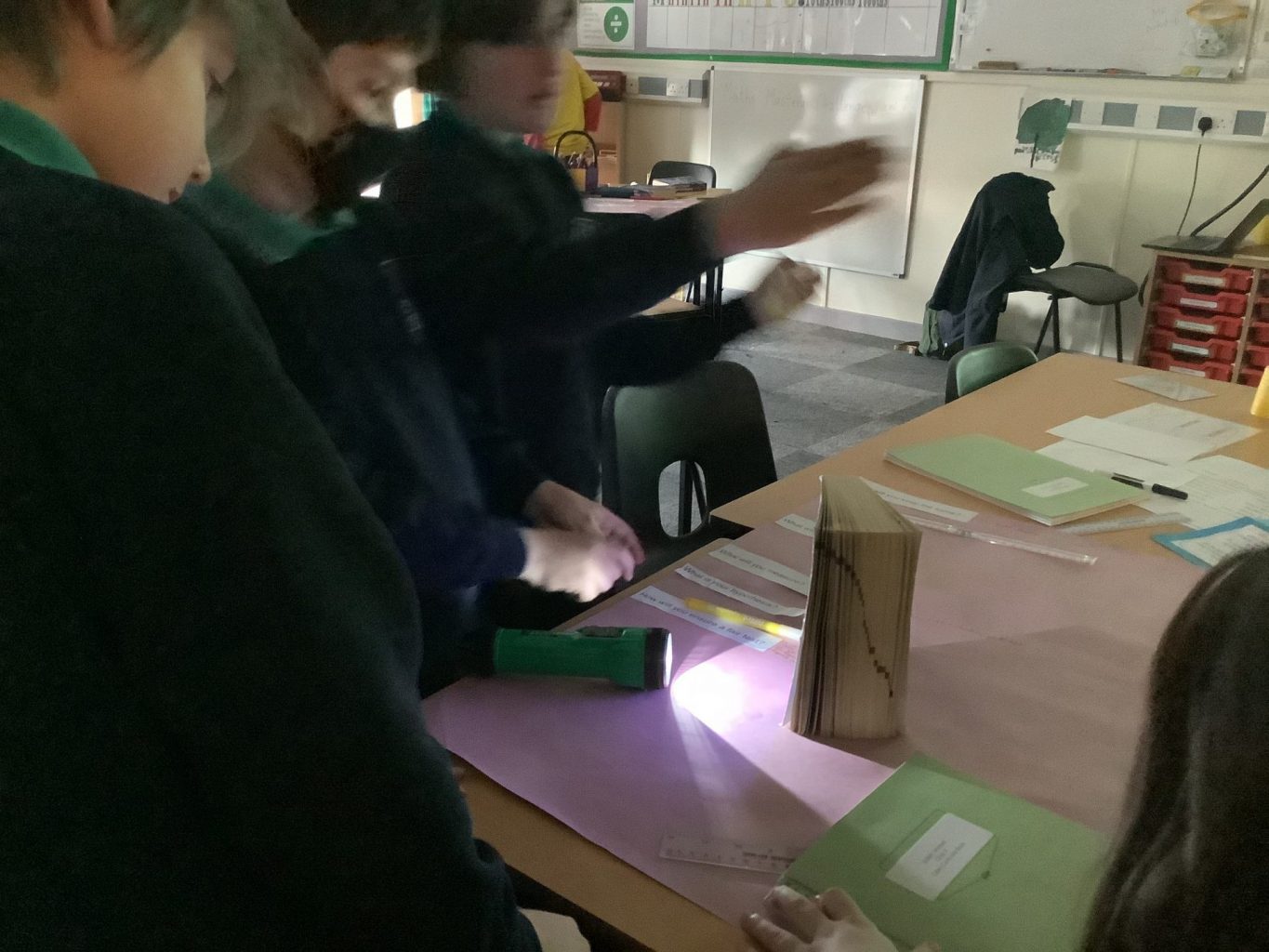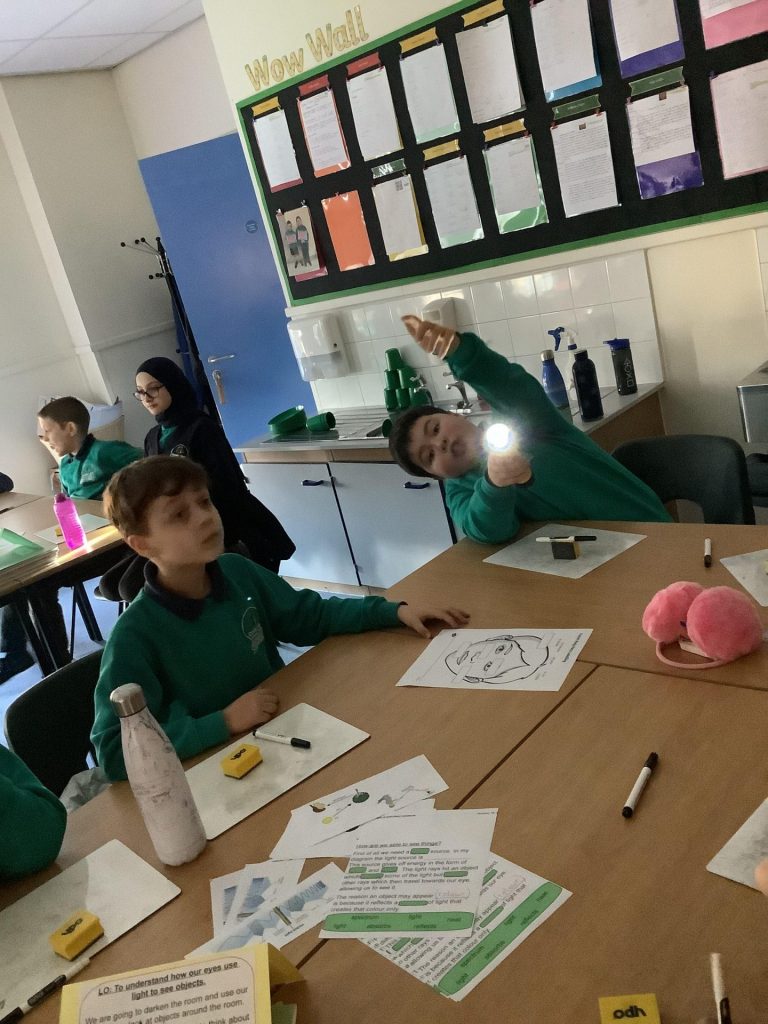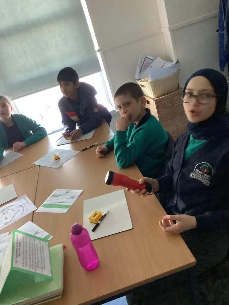On Tuesday, we investigated how light travels and how we see colours. Using torches, the children started generating their own investigative questions and hypotheses regarding light and we able to test these theories in class.