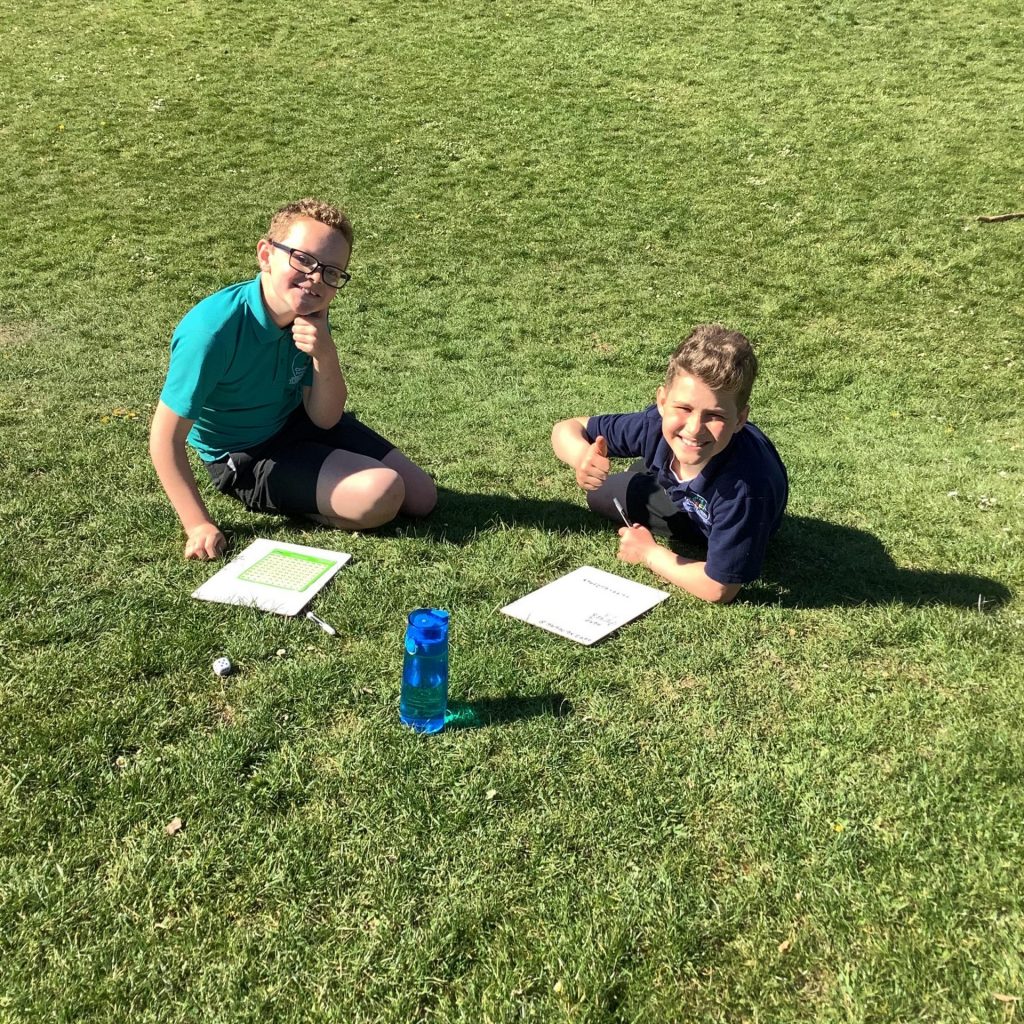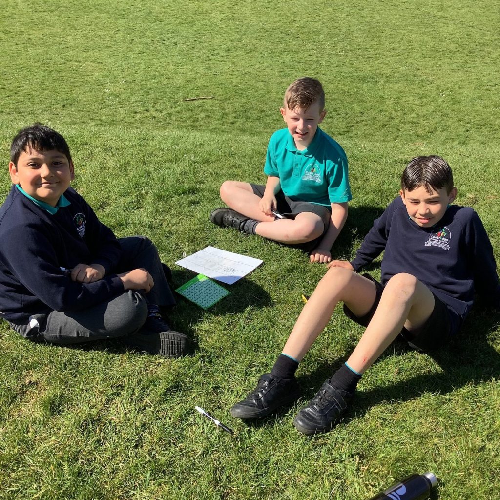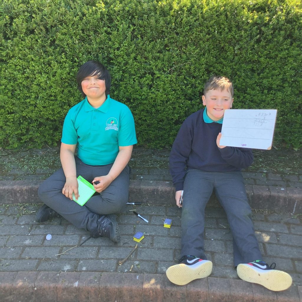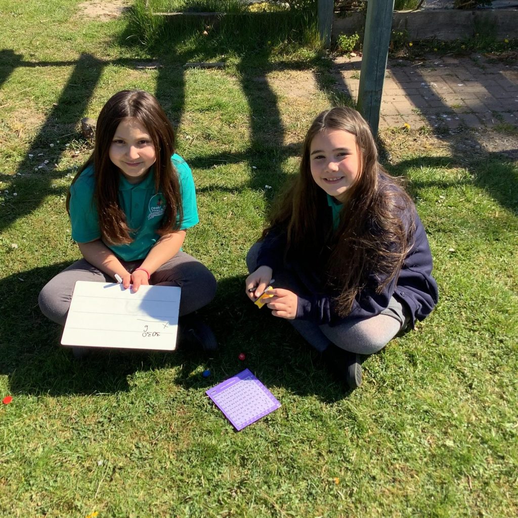 Finally, today in maths Class 8 went outside to complete some maths in the sunshine. Using a dice, a multiplication grid and the chances of fate, the children came up with their own calculations to practice long and short multiplication!