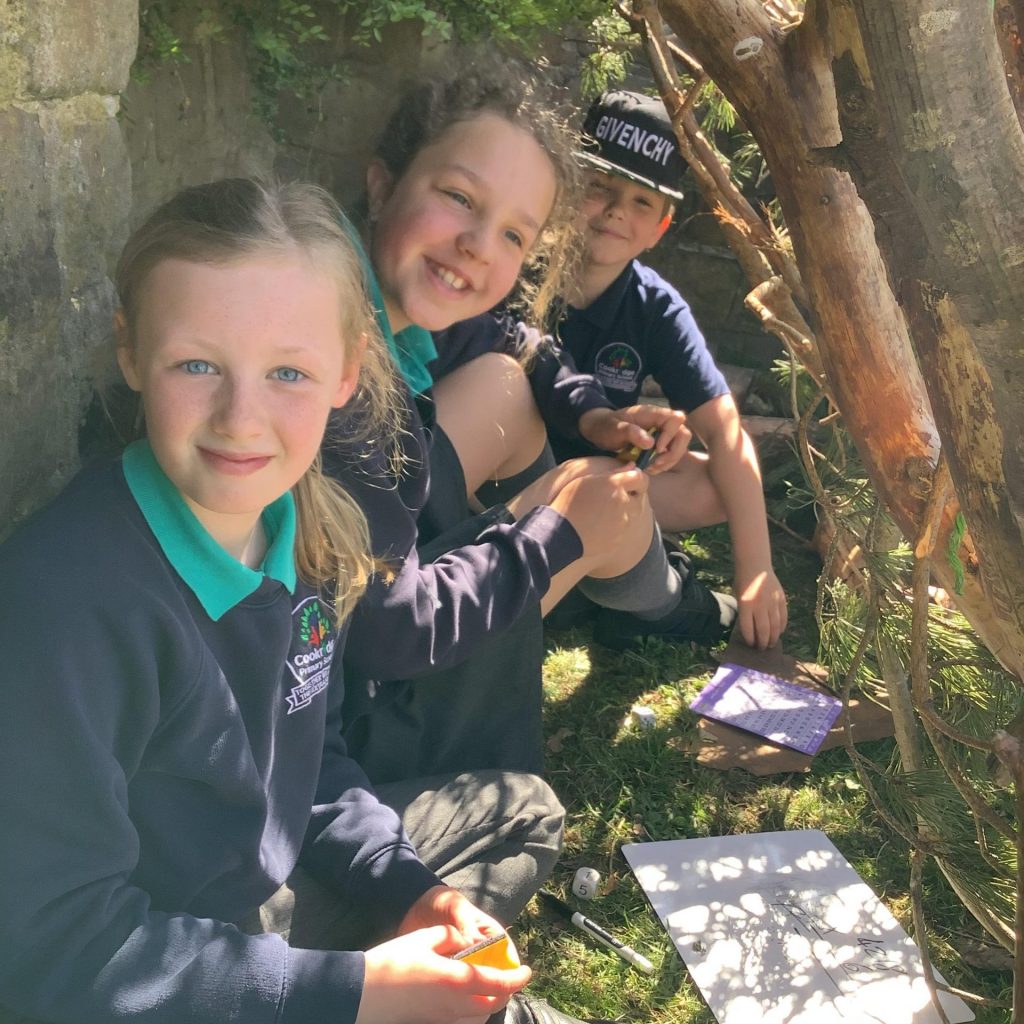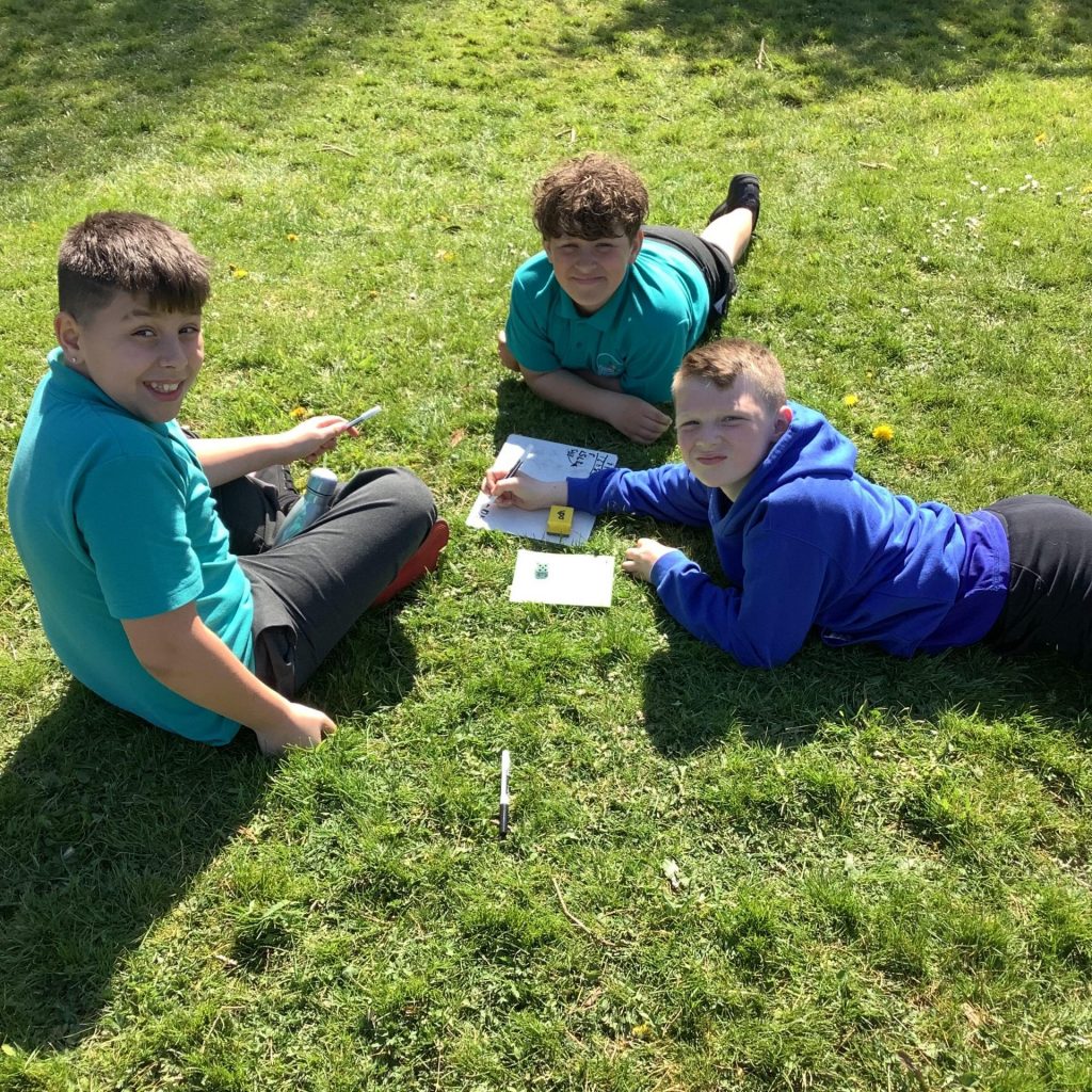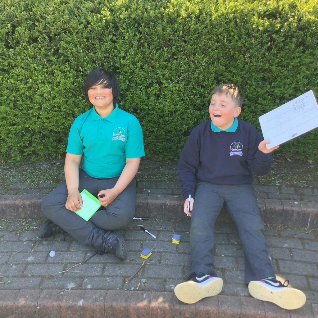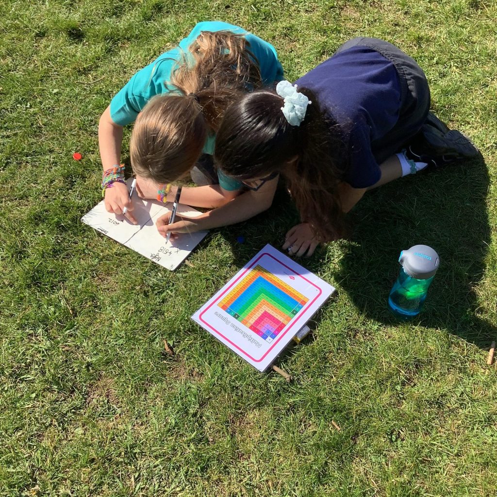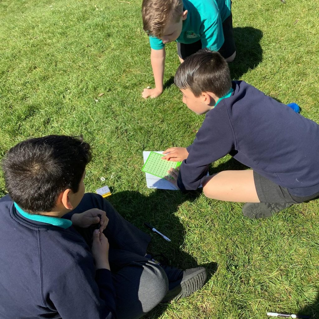 Finally, today in maths Class 8 went outside to complete some maths in the sunshine. Using a dice, a multiplication grid and the chances of fate, the children came up with their own calculations to practice long and short multiplication!