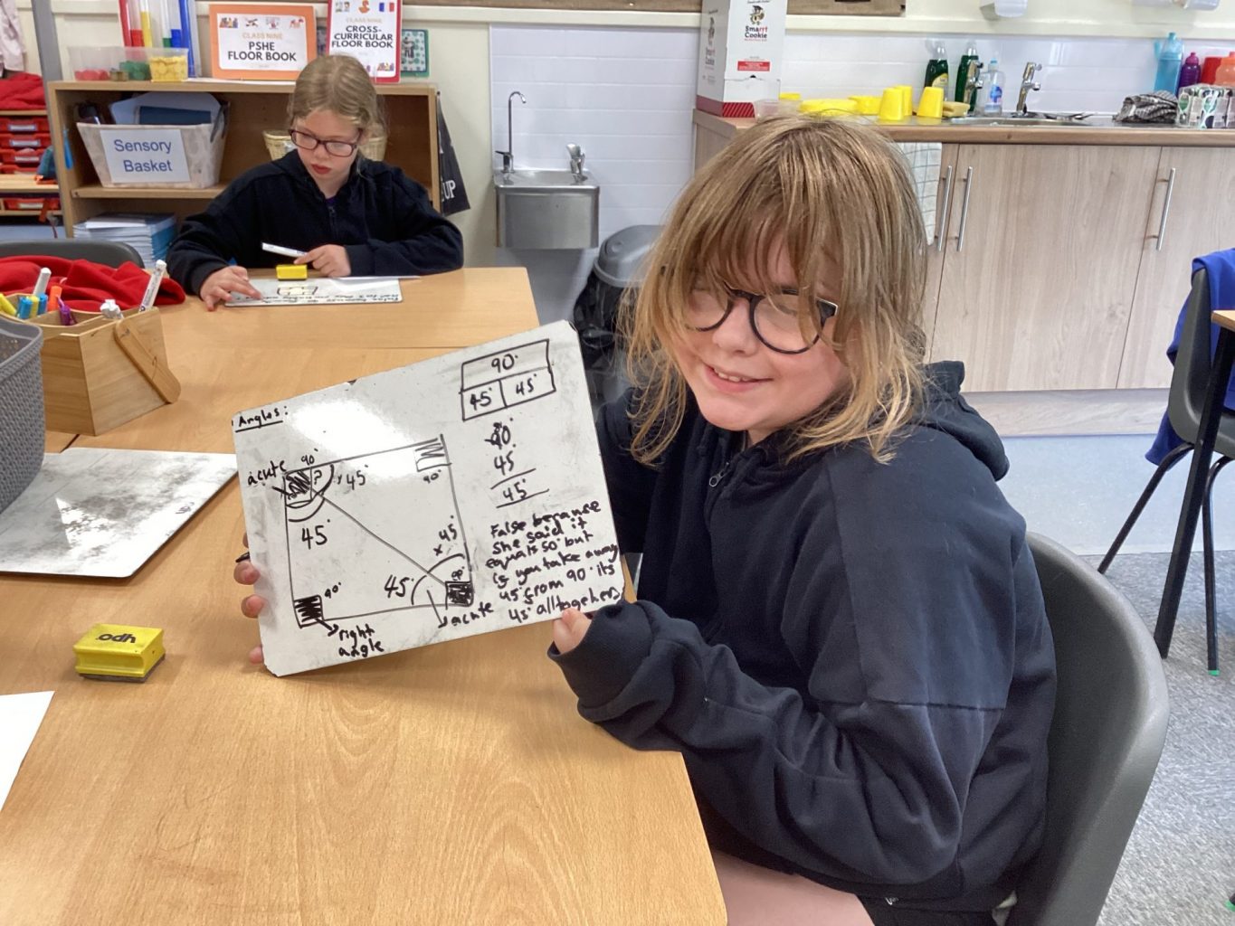 Also in maths, the children from Miss Chambers’ maths class were given some true or false statements on your table. Each statement brought together their knowledge about angles on a straight line and around a point. They had to work out whether the statement is true or false, if it was false then they had to correct it.