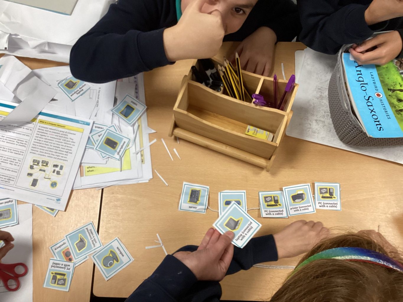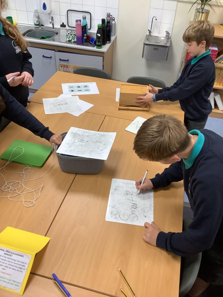 Together, we thought about all the technology we have in our school that people use to communicate and work. We then considered how they work and the relationship between servers, switches, routers and different devices.