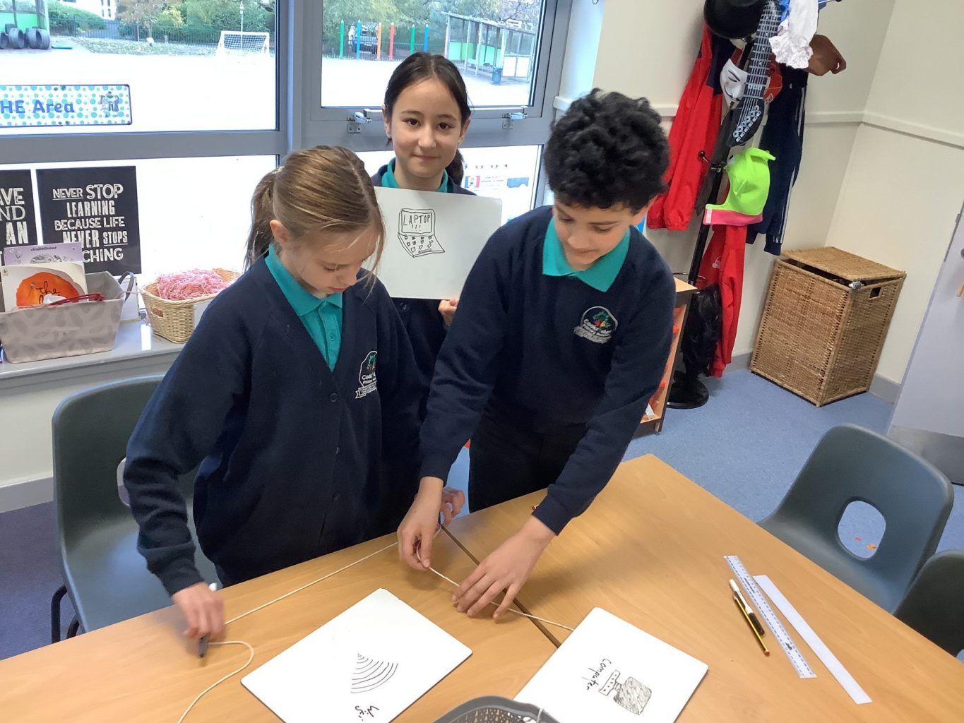 The children then created their own replica network using string to create their diagrams.