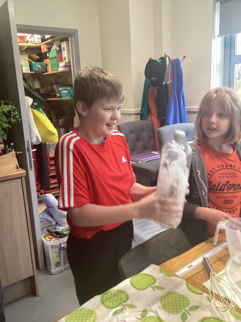 During the session, the children were challenged to decide which was the best product to produce bubbles. To do this, they run a series of fair tests by considering the independent, dependent and control variables.