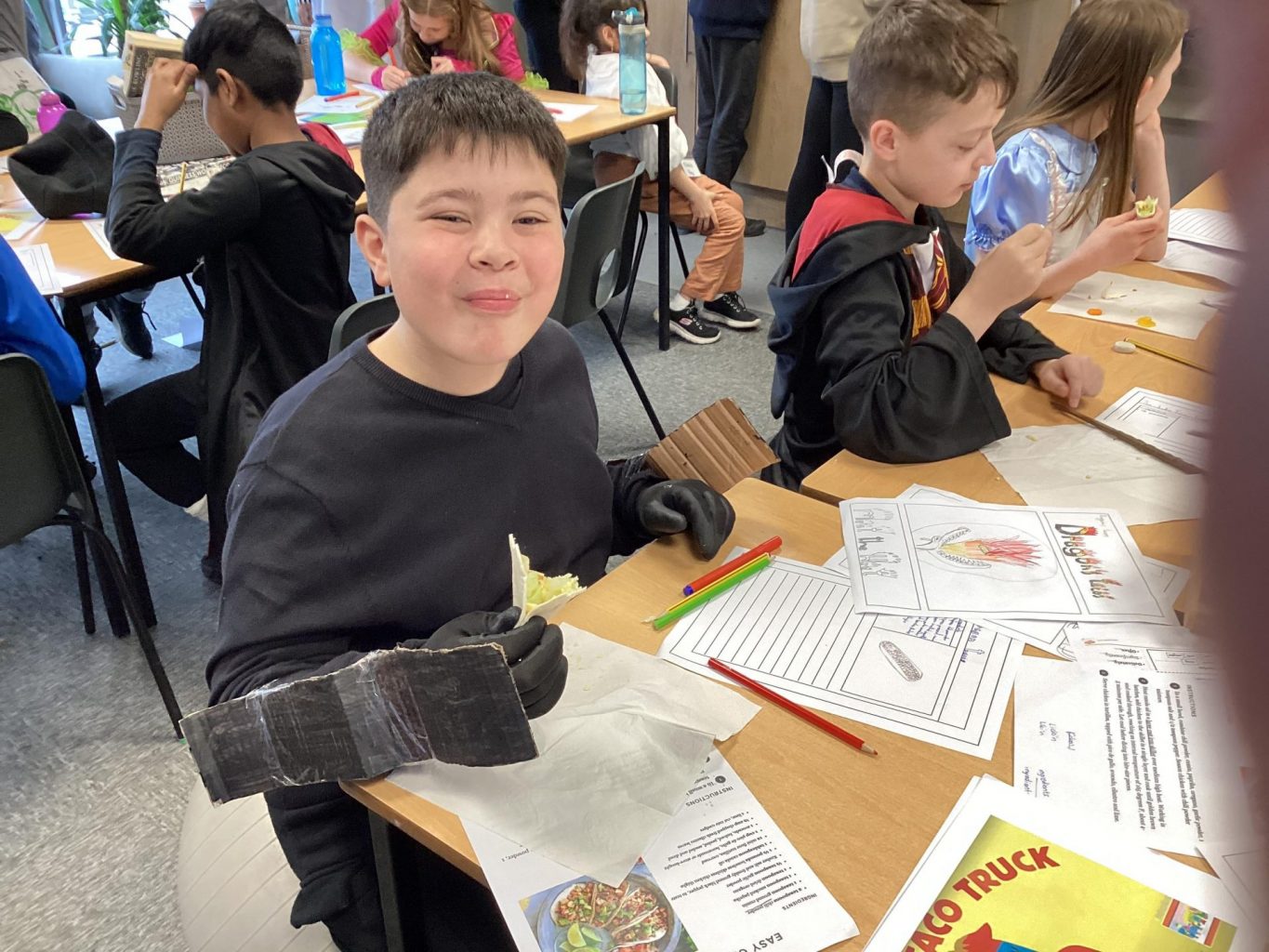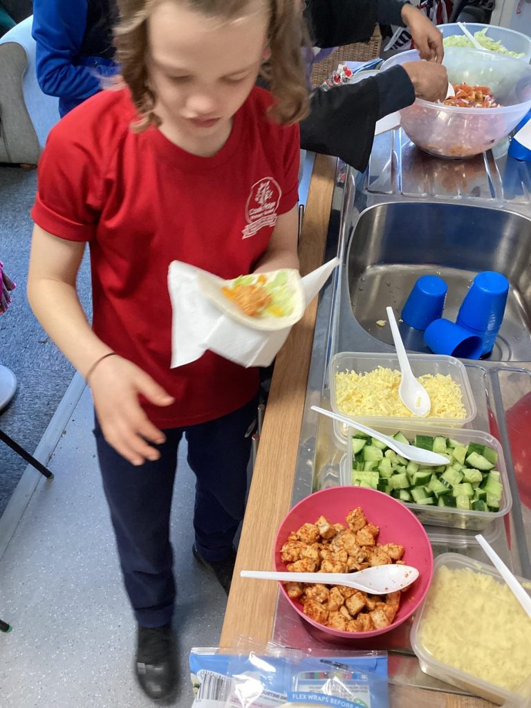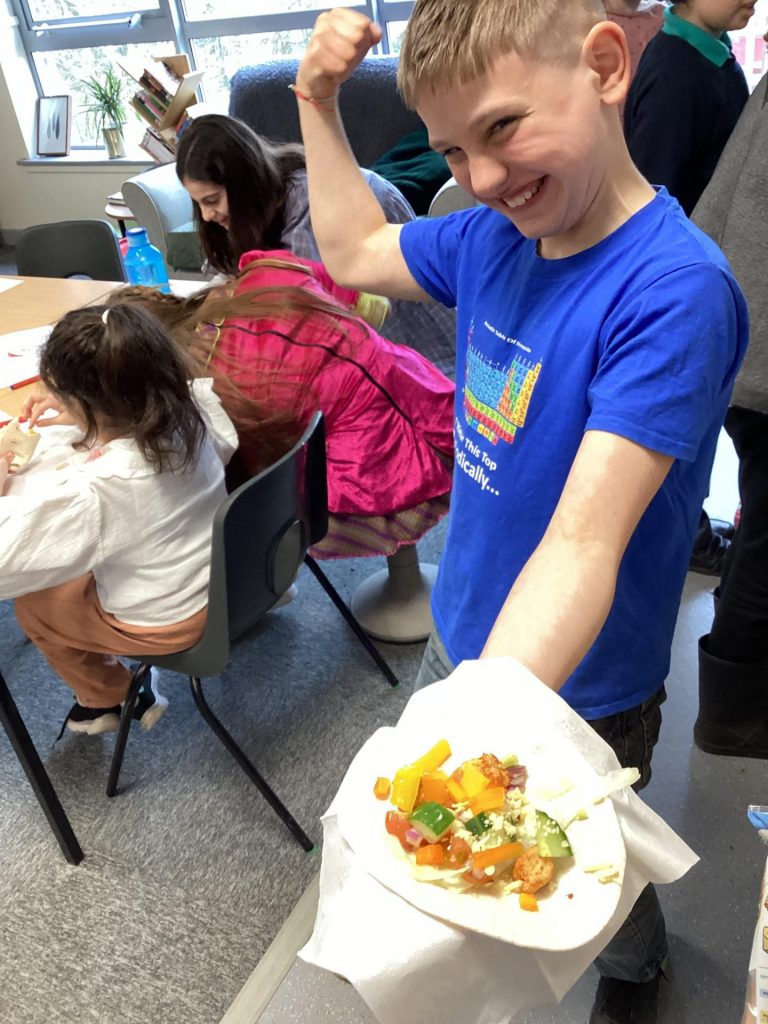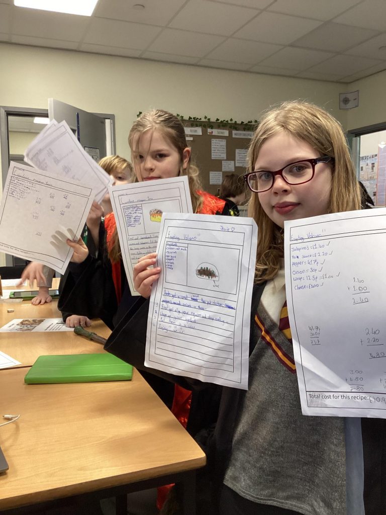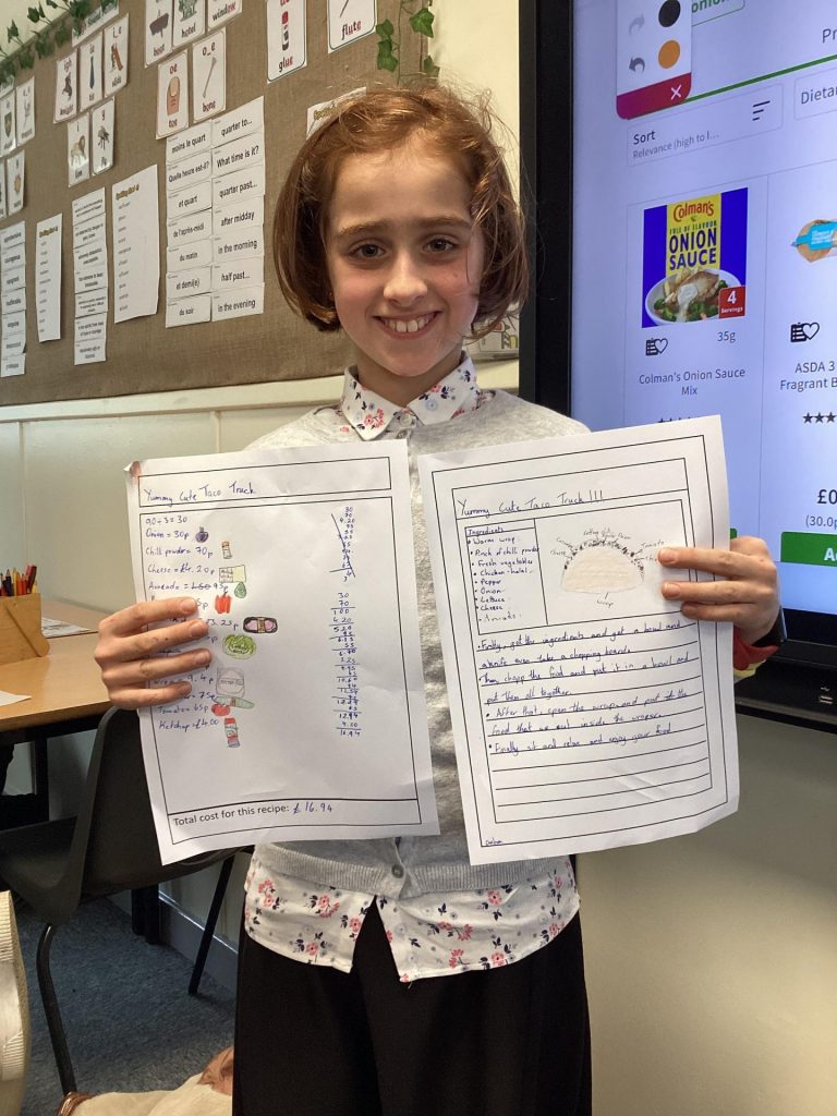 Over the course of the day, the children devised their own creative slogans, logos and trucks. They applied their English skills to generate memorable slogans and their DT skills when creating their truck and logo designs. Also, they wrote a recipe, being mindful of the nutrition of their taco, so that their staff could ultimately make their tacos in their truck. Finally, they used their mathematics skills to work out the cost of their taco.