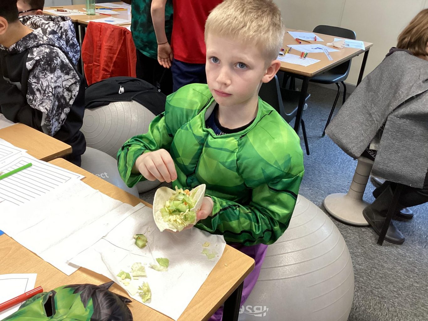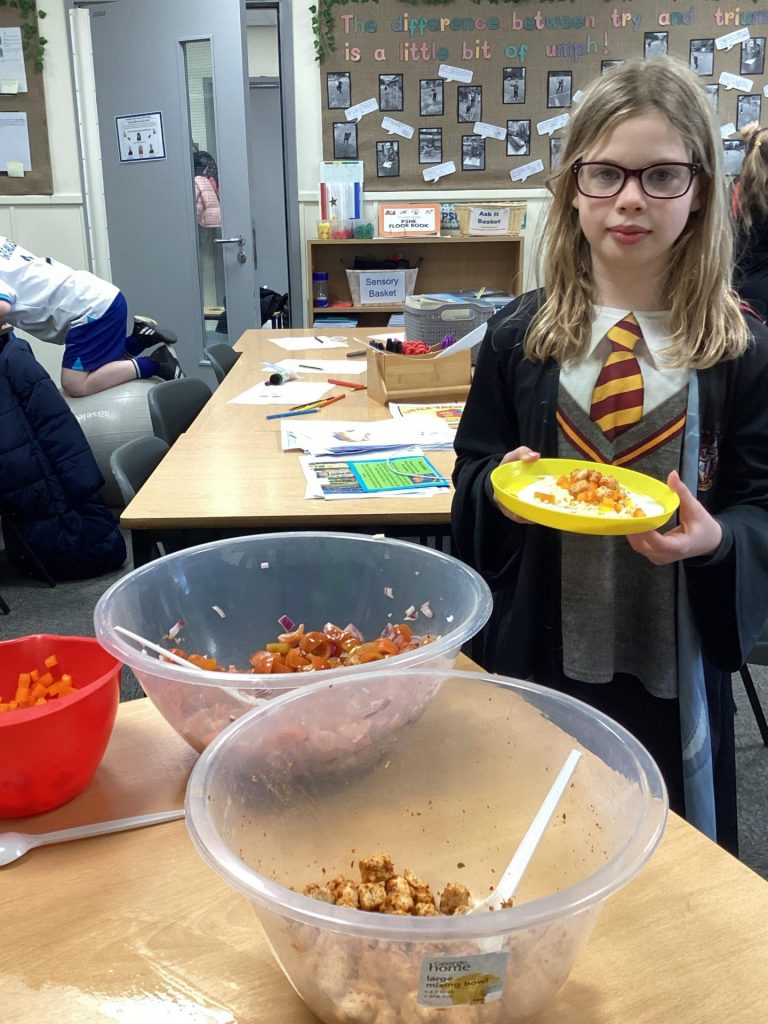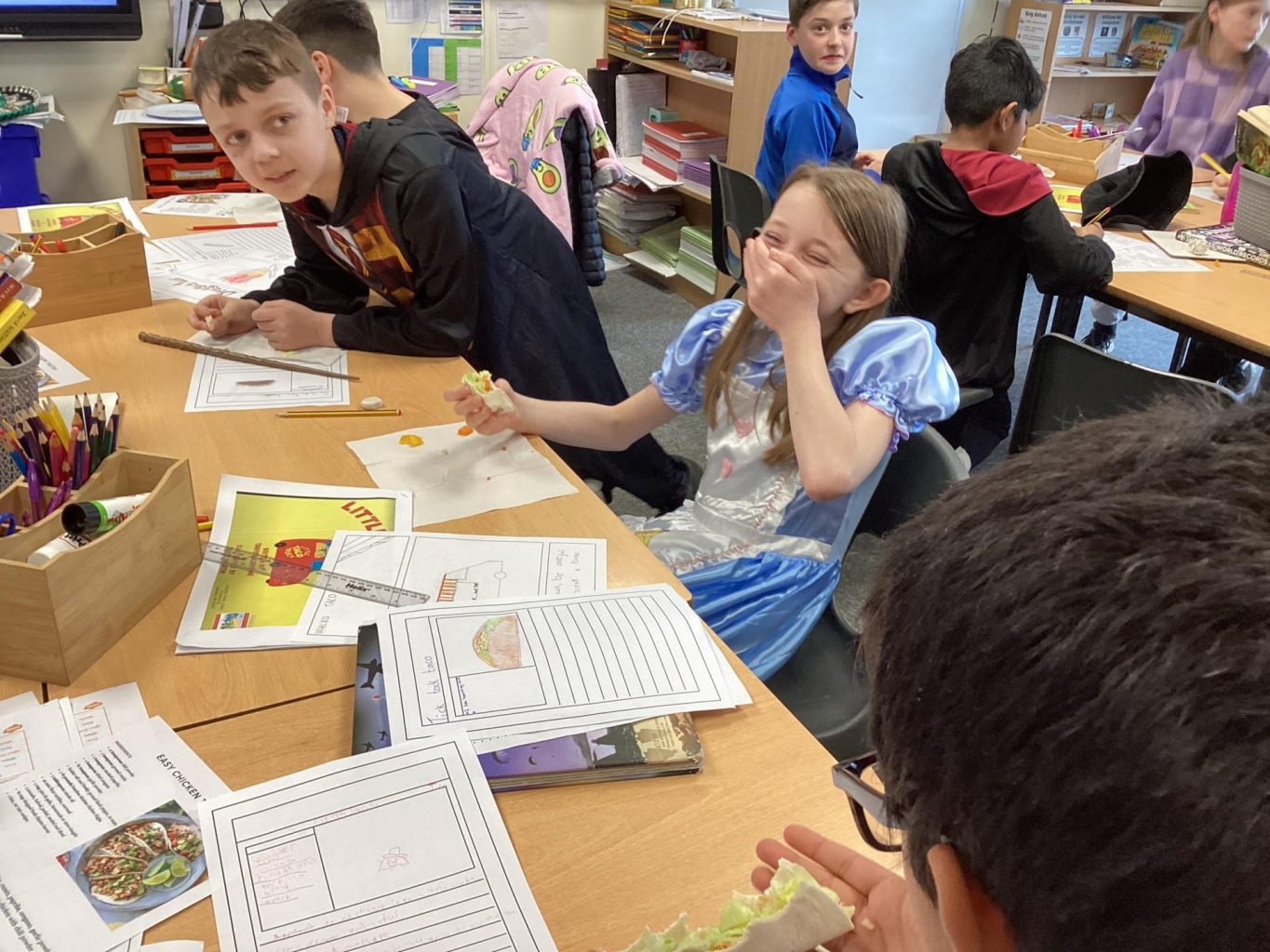 Over the course of the day, the children devised their own creative slogans, logos and trucks. They applied their English skills to generate memorable slogans and their DT skills when creating their truck and logo designs. Also, they wrote a recipe, being mindful of the nutrition of their taco, so that their staff could ultimately make their tacos in their truck. Finally, they used their mathematics skills to work out the cost of their taco.