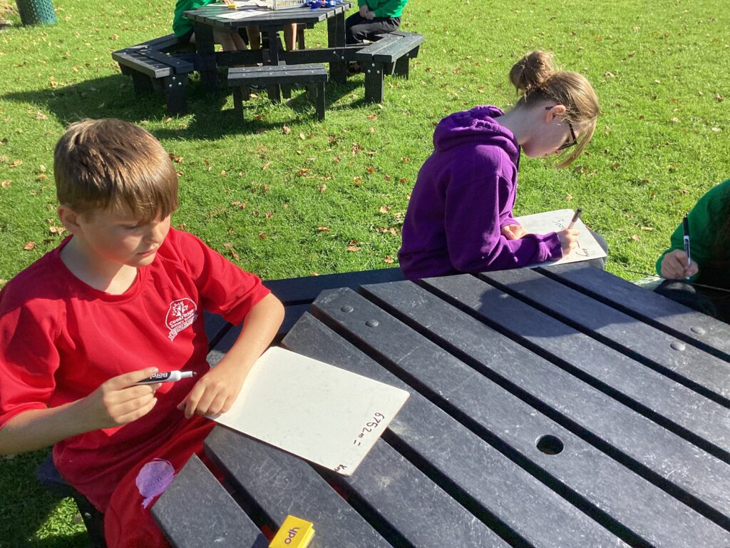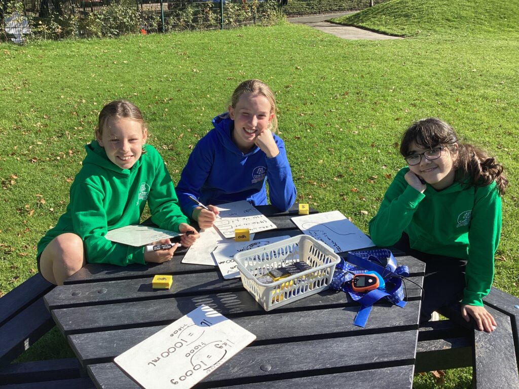 Today, the children enjoyed an exciting and active Maths lesson outside as part of our topic on measurement and conversions. To begin the lesson, the children worked in pairs to challenge each other with quick-fire questions involving conversions such as centimetres to metres, metres to kilometres, grams to kilograms, and even time conversions like hours to seconds. Following this, the children worked in larger groups around the school field. They estimated and measured a variety of items, such as goalposts, benches, and marked distances, before converting the measurements into different units. This hands-on activity allowed them to apply their classroom learning in a real-world context and helped to deepen their understanding of measurement.