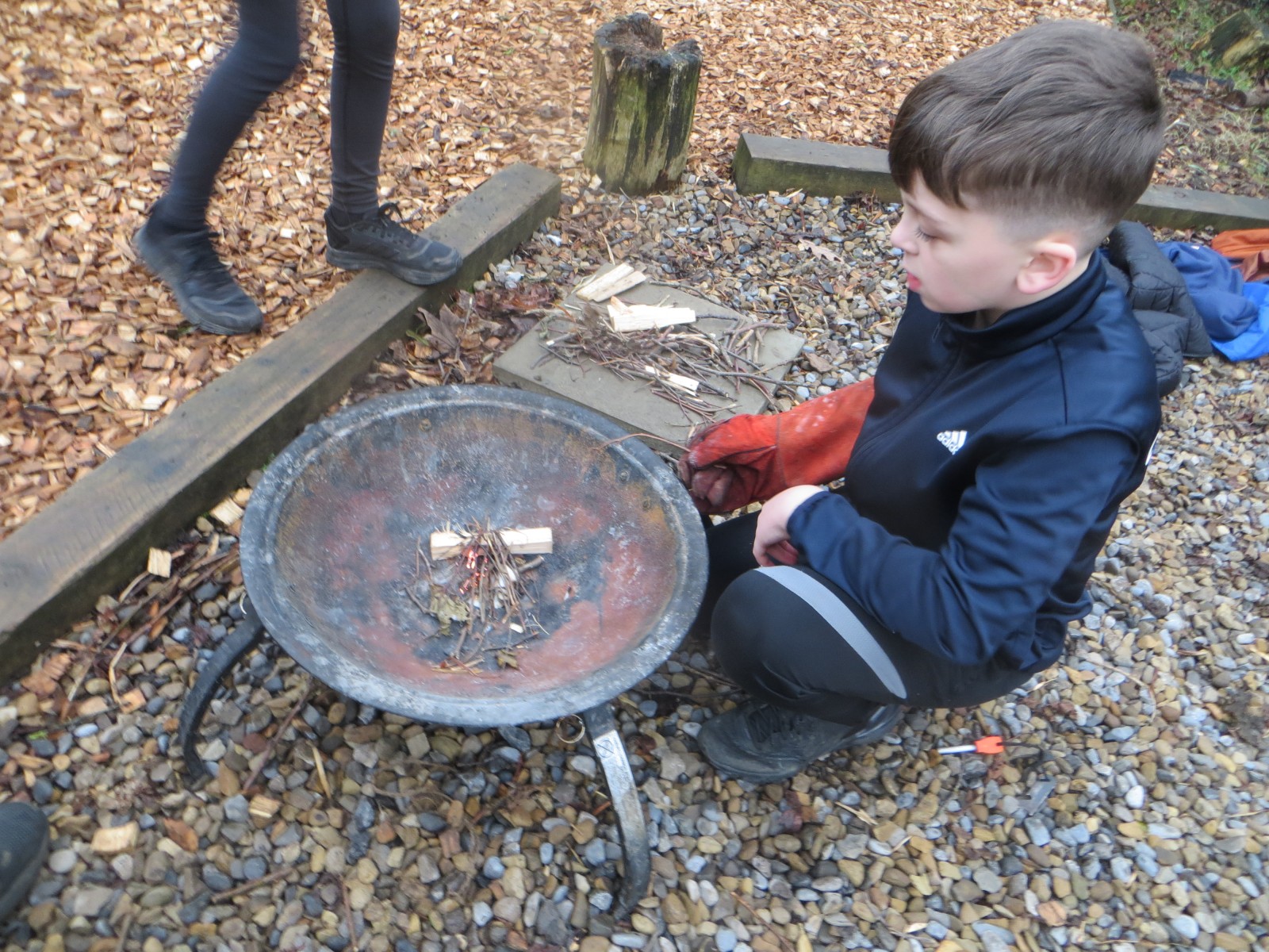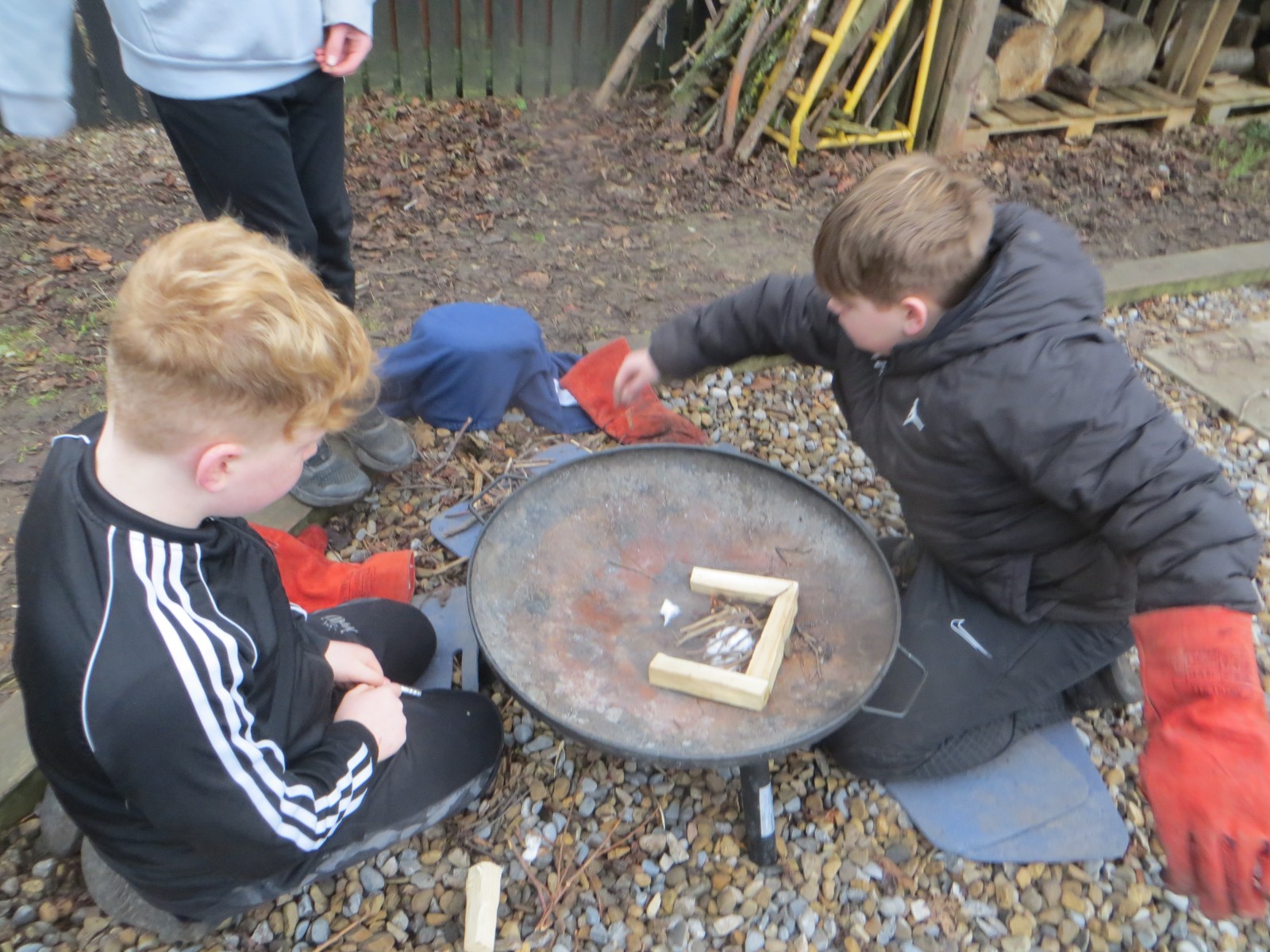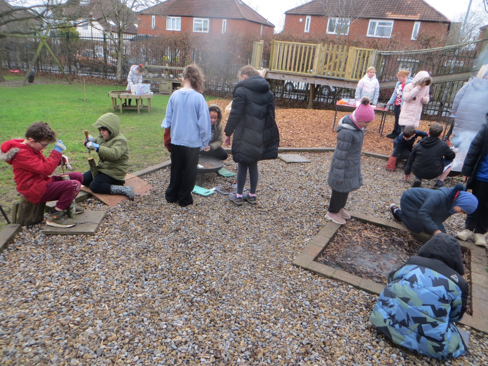 With the Winter Solstice fast approaching on Saturday, our Forest School sessions today focused on celebrating the prospect of longer days and the return of Spring by working as families to hold a Yule Party! Children had to organise themselves into families and then into smaller groups to create a fire to symbolise light and warmth in mid-winter. Part of the family also were tasked with making a decorated Yule Log which represented greenery and new life. Armed with secateurs, child had to forage around the school grounds for evergreen material then used palm drills to connect them to a log. The third part of the family team had to prepare a non-alcoholic mulled wine. Using a combination of fruit juice, caster sugar, cinnamon sticks, star anise and cloves, pupils followed a recipe to make a delicious drink which was heated on the fires. At the end of the session, we all came back together to celebrate around the fire pit with our decorated Yule Logs and warm (alcohol free) mulled wine which went down a treat! Happy Yule!