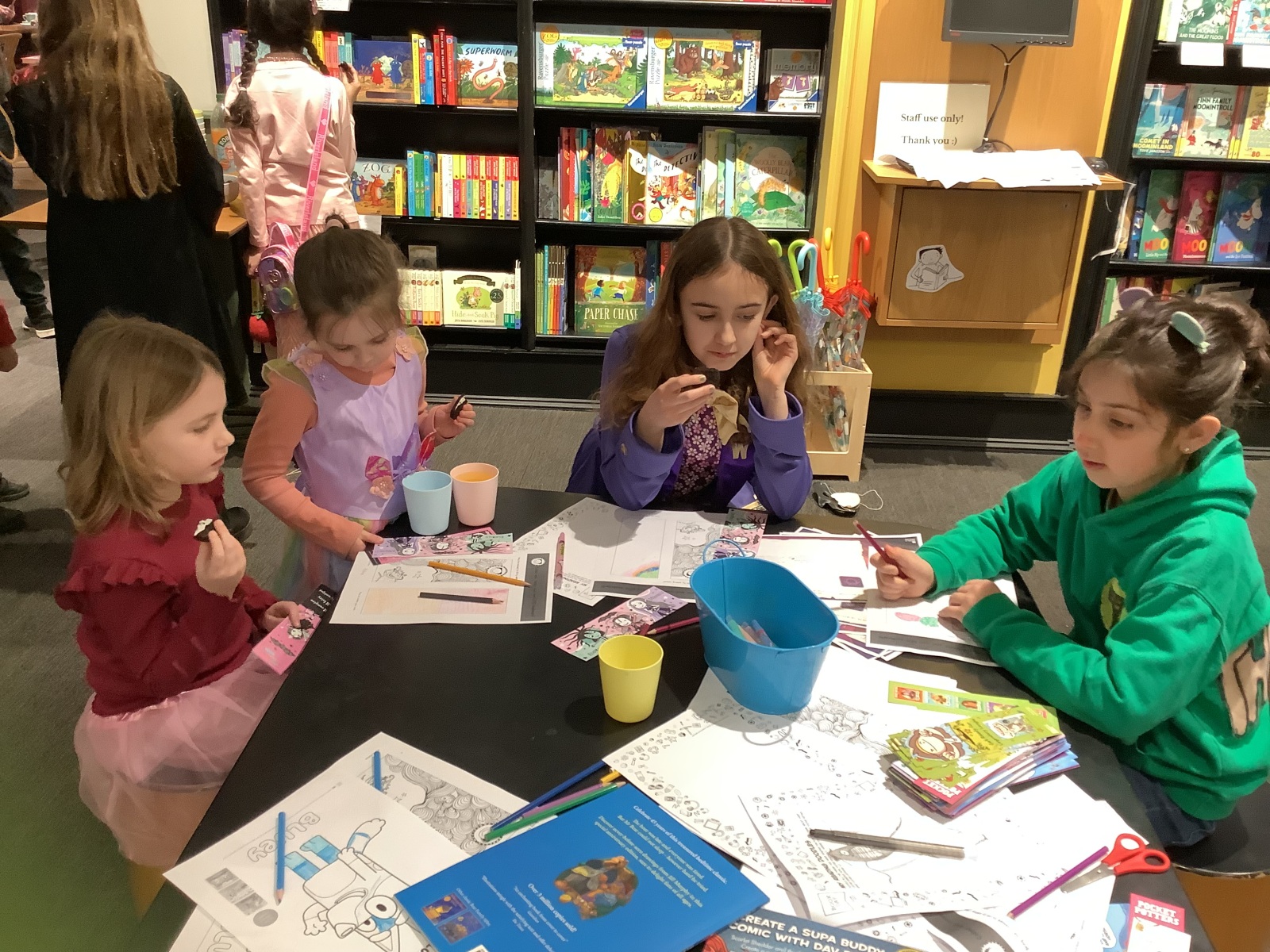 In this morning’s World Book Day assembly led by author Maria Ferguson, we found out the winners of our Book Bingo competition which we have been running across school over the past few weeks in the lead up to World Book Day. Maria picked two tickets from each year group’s bucket at random and those children were quickly whisked away on the minibus into Leeds to visit Waterstones bookstore. Once there, they had lots of World Book Day activities to complete including a book character themed treasure hunt, designing a new bookmark and writing some signs for Waterstones based on the books the children love! Mrs Hunter also very kindly agreed to the children choosing some new books for our library and the pupils did incredibly well at not just picking books that they like but considering what would be popular across the school for others. As we left, the staff at Waterstones said since running activities like this over the past 5 years, our children were the best behaved they have ever had. What a credit to the Cookridge community! Well done to our winners and well done to everyone who entered!