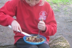 We’ve had a great morning as the warmer weather has definitely helped lift everybody’s mood! Both groups spent their sessions in our small wooded area on the field and we talked about the importance of mental health in the lead up to Mental Health Awareness Week next week. We discussed what it is, why it’s so important and things we currently do to help maintain and improve our mental health. Pupils then spent the morning leading their own learning through a range of different activities. Some chose to pitch hammocks using the sliding knot and spent time cloud gazing and tuning in to the sounds of the birds whilst others took the chance to ‘sit spot’ under a tree or try some outdoor yoga. All the children helped in preparing a delicious snack – pancakes! Working as a team, pupils created the mixture, got a fire going and cooked their pancakes before adding their favourite toppings. Whilst we ate, we also discussed the importance of sitting down to eat with friends and family and how these social interactions can play a huge part on mental health.