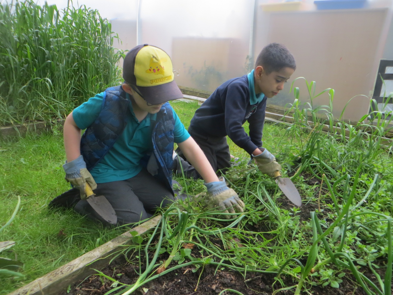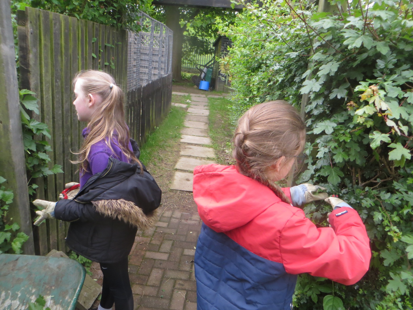 Today in our Wellbeing Wednesday Forest School sessions pupils have been working on our kitchen garden. Children have learnt about plants, their root systems and what we class as ‘weeds.’ We then began to do some ‘weeding’ and bedded up our developing strawberries by putting dry straw underneath them to stop them rotting on the damp soil. Another job we completed was pruning the hedges and supporting our growing raspberries and blackcurrants by attaching them to canes. Finally, children completed their gardening tasks by clearing the weeds from the onion bed in order for them to grow strong and healthy without competing for nutrients.