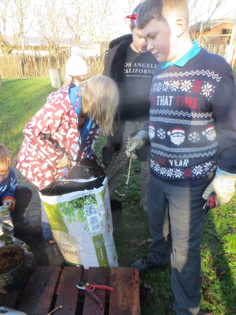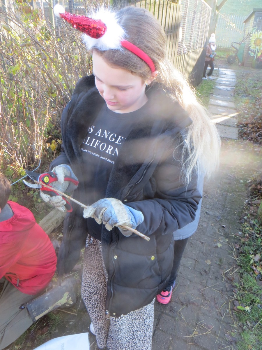 In our Wellbeing Wednesday sessions today thoughts already turned to Spring! As part of our on-going garden project this year to renovate and transform our garden area into an allotment space for growing food to use in Forest School and Food Tech, both groups were tasked with jobs that helped prepare for the longer days in a few months. Children in the first group carried out a site inspection and found a lot of litter and pieces of wood lying around. They quickly got on top of this and worked together to clear the site which made it safer and a more pleasant space to be in. Next, the helped Mr Gamble sift through some homemade compost and move it to a new area. Children had to spot bindweed roots, plastic and any other bits we didn’t want in the compost and removed them. The older pupils learnt how to take hardwood cutting from blackcurrant and redcurrant bushes. Children were given an instruction sheet with step by step instructions on which they had to follow. They used secateurs really well to take cuttings and were amazed that these would root and grow into fruit bearing bushes within a year or two. They potted them up and left them for nature to do the rest. We look forward to seeing them grow in the Spring!