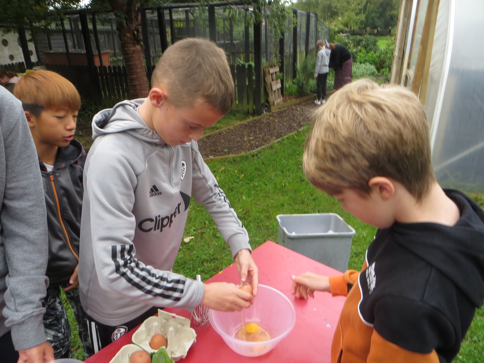 The Year 6 pupils loved their second session of outdoor cooking by creating omelettes. After collecting three chicken eggs per team, pupils explored the herb garden for ingredients. Whilst foraging, children tested the flavours by rubbing the leaves in-between their fingers and taste testing some of the leaves from various herbs. After settling on their desired flavours, children picked from sage, rosemary, oregano, thyme, chives and lemon mint. The eggs were then cracked and emptied into a bowl with the herbs and some added milk and whisked together. The mixtures were then cooked over fire pits carefully before being enjoyed by all. As we ate, we discussed the importance of sourcing environmentally friendly food and began to think about where our food comes from and the carbon footprint it creates. We also worked out our omelettes cost a total of 15p each – a bargain meal in the current climate!