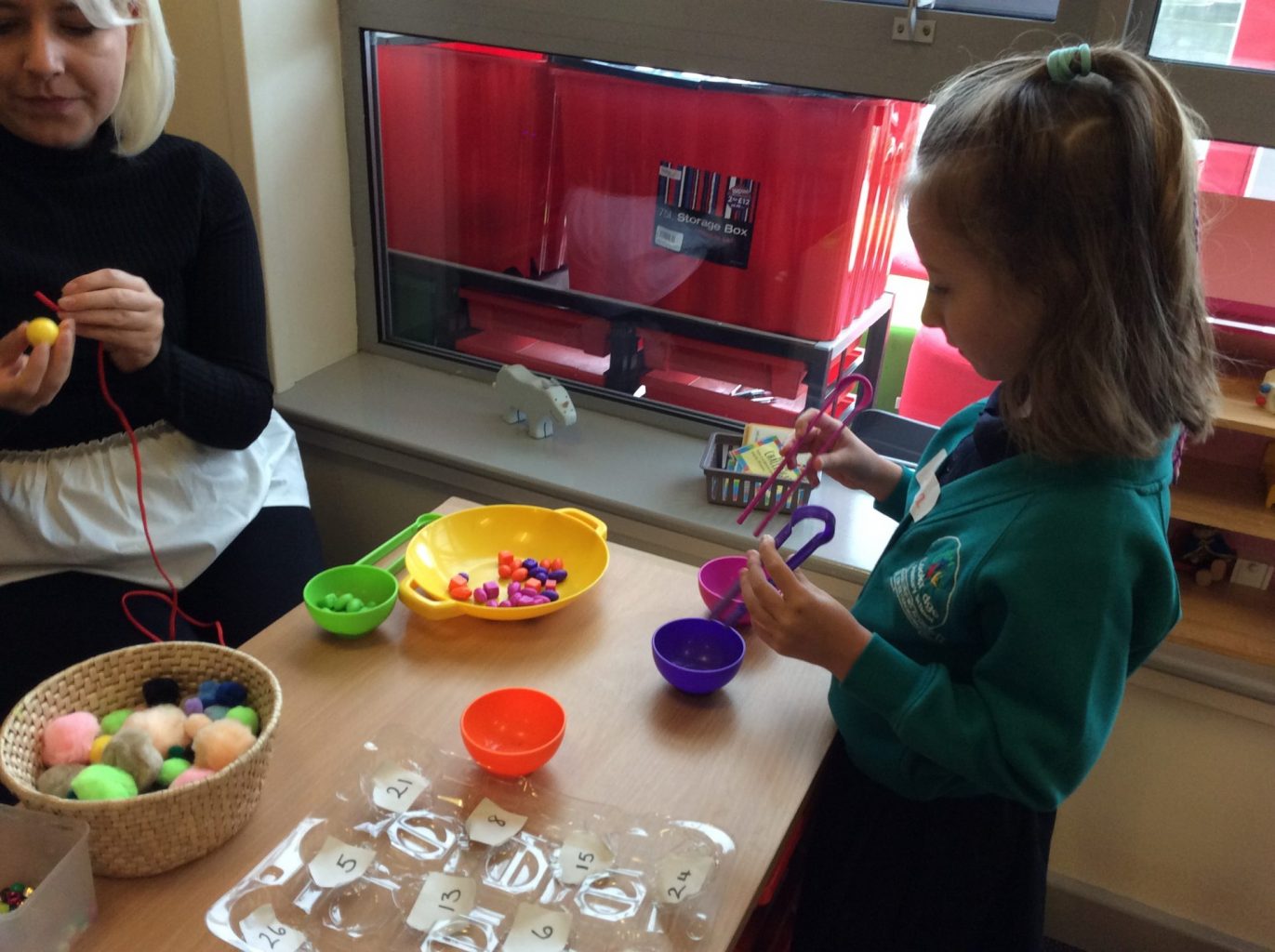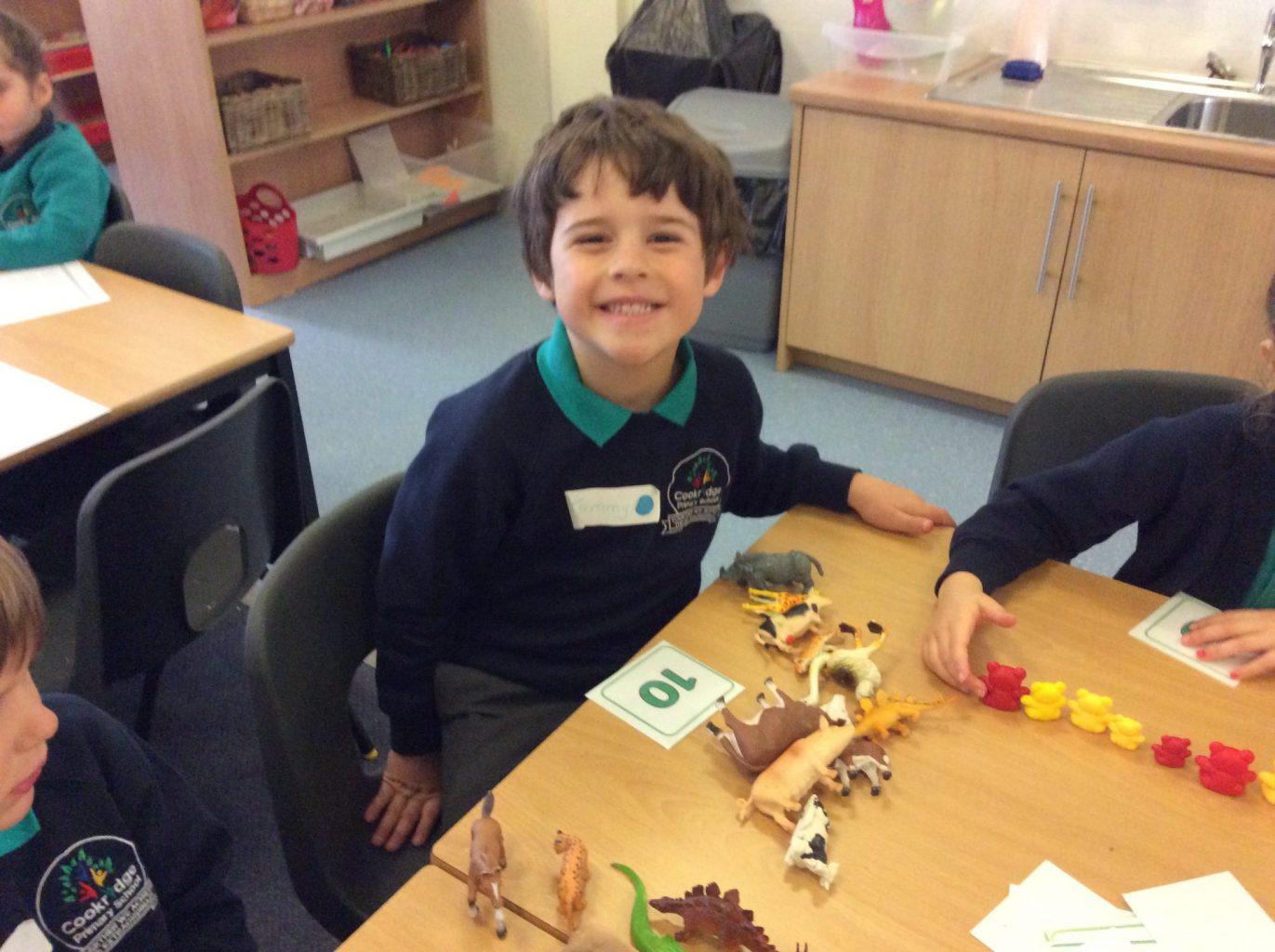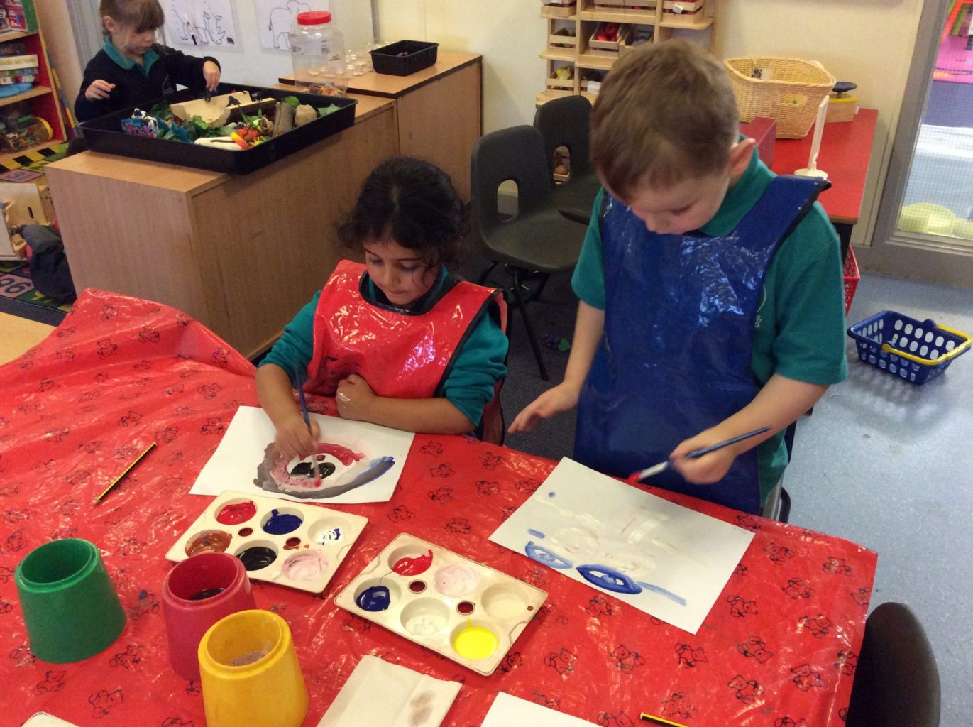 We’ve been extremely busy today! We played ‘get to know you’ games, did lots of counting and sorting activities, read and discussed the book ‘The Colour Monster’, played in the water and sand trays and much, much more!