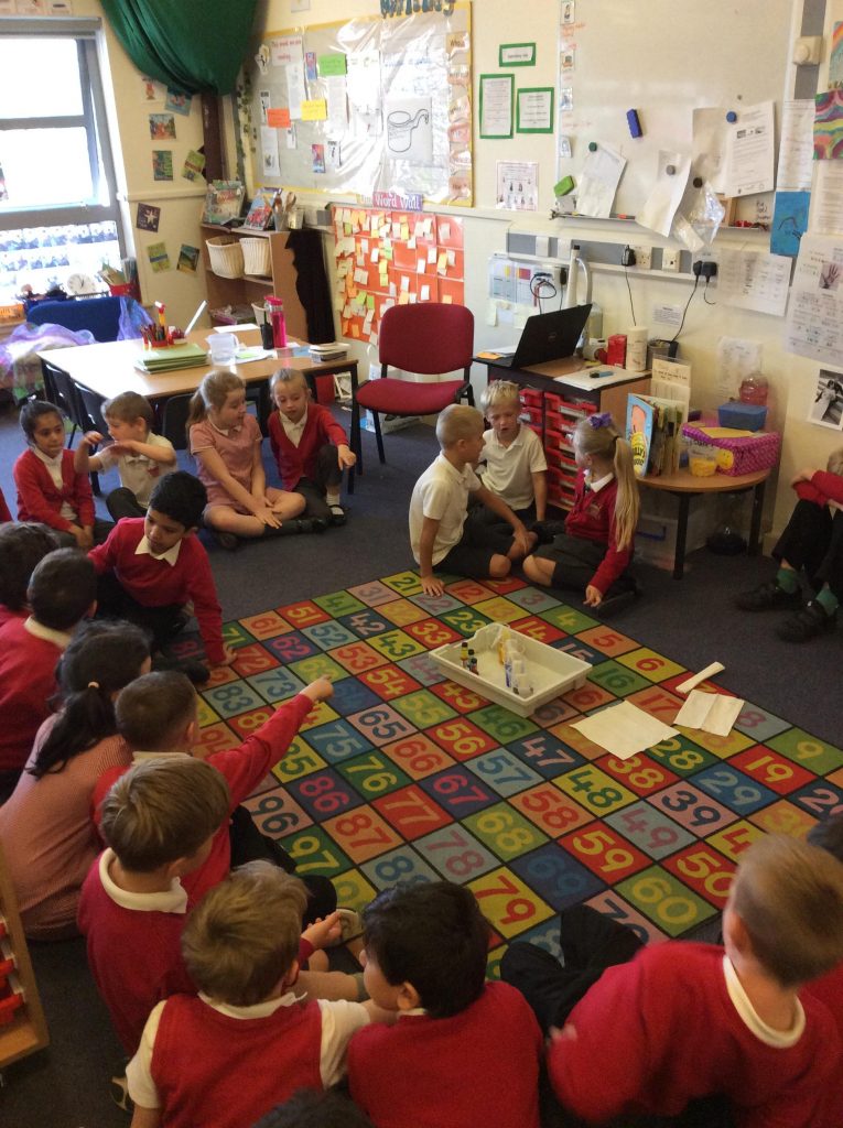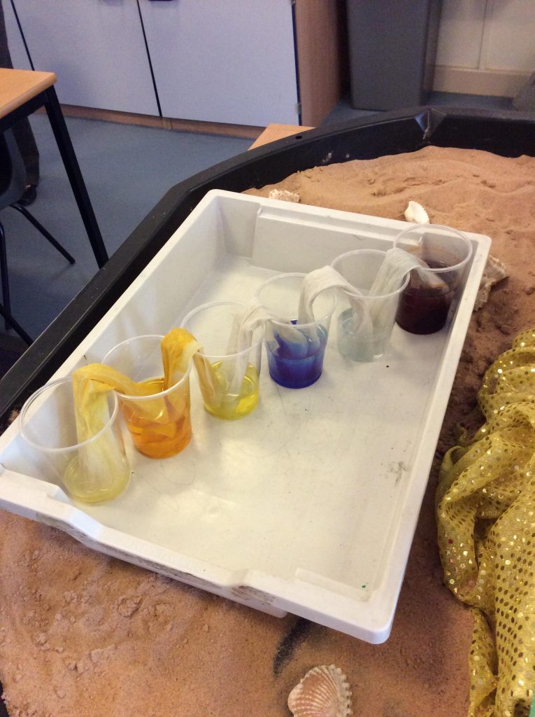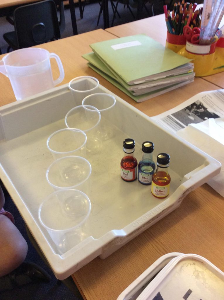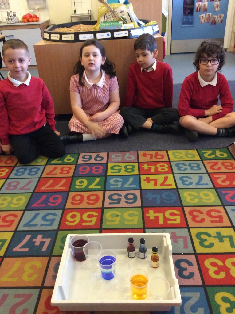As part of our Science cross curricular day, Class 3 wanted to investigate how water travels from the roots to the flower head. We experimented with paper towels as they are ‘absorbent’ to see if they can make water travel from one plastic cup to another. We placed food colouring in 3 of the cups and left 3 of the cups empty. We observed throughout the day to see if the water has travelled from one cup to the other. We were pleased to see that the water did travel through the cups which means that the roots must absorb the water from the soil and help it travel to the flower! The children had some really good discussions from this.